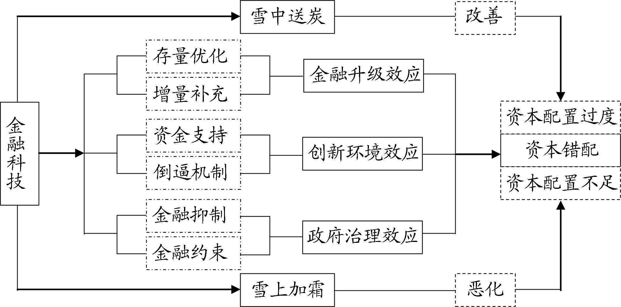 摘要:党中央关于制定“十五五”规划的建议指出,促进各类要素资源高效配置,建立健全城乡统一的建设用地市场、功能完善的资本市场、流动顺畅的劳动力市场、转化高效的技术市场。作为最重要的生产要素之一,我国资本市场存在结构性错配问题,而创新的金融产品和服务是畅通资本流动的有效载体。金融科技依托云计算、大数据、区块链、人工智能等数字技术,将先进手段应用于金融服务全流程,创造有别于传统金融的商业模式、应用和产品,实现金融业务的创新升级。在转变经济发展方式的现实需求下,探究金融科技与资本错配的关系对于优化资源配置、构建新发展格局具有重要意义。尽管已有文献从金融发展视角寻求改善资源配置之道,但鲜有文献直接将金融科技与资本错配纳入同一分析框架展开研究,且因金融科技的技术驱动属性,其作用效果对资本条件提出一定要求。有鉴于此,文章通过“城市+年度+金融科技关键词”检索百度网页,用总搜索结果页面数量度量城市—年份的金融科技水平,基于C-D生产函数测算地区资本错配指数,利用2005—2021年283个地级城市面板数据,运用双向固定效应、工具变量等模型分别探讨在资本配置过度和资本配置不足情况下金融科技对资本错配的影响效应及作用机制。结果发现:资本配置过度时,金融科技能够改善资本配置过度程度,即存在“雪中送炭”的现象,资本配置不足时,金融科技反而恶化资本配置不足程度,即存在“雪上加霜”的现象,经过潜在内生性处理和一系列稳健性检验后该结论仍然成立;异质性分析显示,金融科技对资本错配的影响作用存在基于劳动力配置情况的异质性,主要体现在资本配置过度时,金融科技对劳动力配置不足地区的改善作用更显著;机制分析表明,金融升级效应、创新环境效应和政府治理效应在金融科技影响资本错配的过程中起到调节作用。基于此,文章建议推动金融科技在资本市场的应用,尤其关注“嫌贫爱富”问题,发挥金融科技的普惠服务价值;提升金融科技支持创新能力水平,更好服务科技创新,增强金融科技发展可持续性;斟酌审视政府作用,减少不合理的政府干预,促进金融科技健康发展,从而优化地区资本配置,实现经济高质量发展。