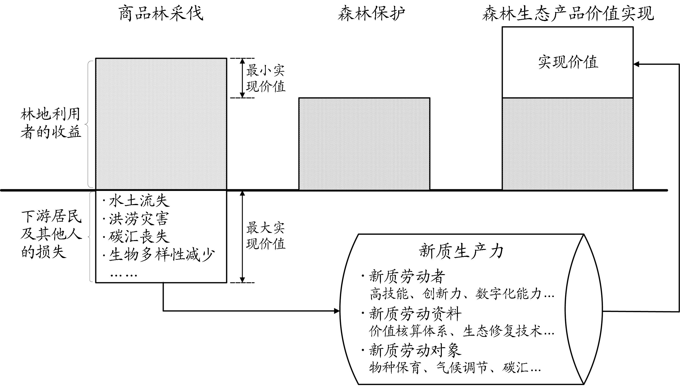 摘要:新质生产力是突破新技术、配置新要素、催生新产业、打造新模式、重塑新动能、创造新价值的新型生产力。林业作为由生态、经济、社会组成的多维复合系统,在助力脱贫攻坚与乡村振兴、促进生态文明建设、应对气候变化等方面发挥了重要作用。然而,由于经营主体、森林权属与资源禀赋等多重约束,林业发展仍面临创新链条阻塞、资源配置失衡、产业升级迟缓等现实瓶颈,亟须新动能驱动转型。发展新质生产力是破解林业高质量发展难题的内在要求,是践行“两山”理念、促进人与自然和谐共生、实现中国式现代化目标的重要动力。文章在总结已有相关研究成果的基础上,从“内核驱动-主体构成-载体形态-路径实现”四维框架解构新质生产力赋能林业现代化的科学内涵,探究其基本逻辑,并提出发展思路。笔者认为,在林业现代化进程中,新质生产力通过科技革命性突破、生产要素创新配置和产业深度转型升级等传导机制,推动林业生产力实现质的跃升。结合我国林业发展特点,并对比传统林业生产力可发现:从驱动维度看,科技创新是新质生产力提升、林业产业结构升级和林业可持续发展的核心引擎;从主体维度看,高素质人才、富含数智特征的新介质和可持续利用的创新资源是林业新质生产力的要素支撑;从载体维度看,林木育种、林业生物技术、生物材料、林产品深加工、生物质能源、林业碳汇等新兴产业是林业新质生产力的产业依托;从路径维度看,绿色低碳发展是培育林业新质生产力的根本遵循。由此可见,新质生产力的形成主要依赖于新质生产要素及其优化组合,其能促使林业生产方式向生物多样性、友好型转变,推动林业发展理念、林业发展模式和林业增长方式发生根本性转变。为进一步发展新质生产力,需强化科技创新,突破生态保护与修复、森林培育与可持续经营、林业资源高效利用、助力乡村全面振兴等关键技术瓶颈;聚焦经济林、木材加工、林业旅游、国家储备林工程、种苗花卉、竹产业、森林康养等重点领域,培育林业新产业、新业态和新模式;优化要素配置,从提升要素供给质量、探索要素确权机制、搭建要素流通市场和强化要素交易监管等方面建设林业数据要素市场;注重人才引领,在国家战略林业人才储备、人才发展体制机制改革和人才教育培养模式等方面健全林业人才培养体系。