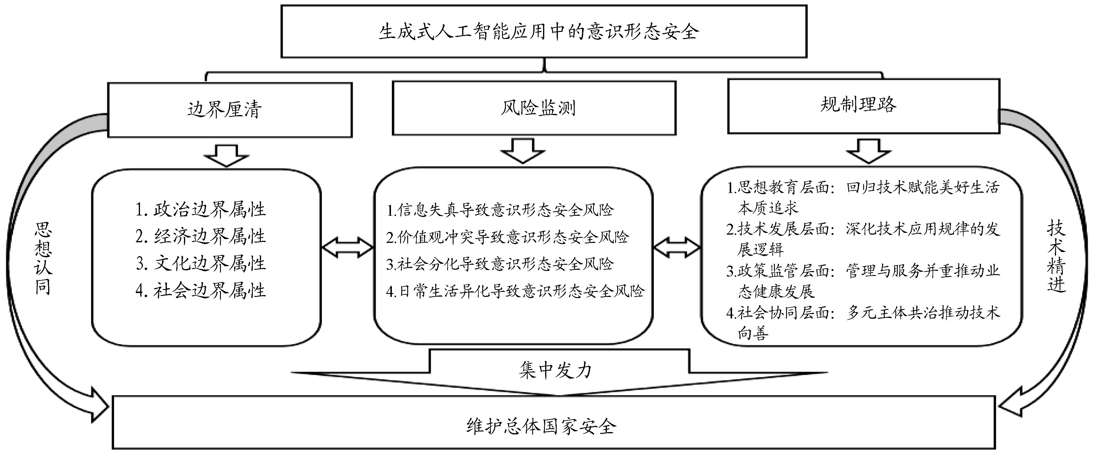 摘要:作为人工智能发展进程中新的技术,生成式人工智能革命引领社会发生了全方位变革。诸如DeepSeek、Manus及ChatGPT、Sora等生成式人工智能的应用已经渗透政治、经济、文化、社会等诸多领域,深度融入数字化生活多元场景运用,悄然改观大众日常应用,而对其意识形态的影响尚无自觉认知。作为科学技术的创新,生成式人工智能运用中存在的意识形态风险是无法回避的现实问题,并且已经成为影响总体国家安全的重要考量因素。正是基于上述逻辑和对生成式人工智能大模型的思考,笔者首先致力于从政治、经济、文化、社会等层面厘清生成式人工智能应用中的意识形态安全边界,明晰意识形态安全红线与底线,在此基础上结合生成式人工智能发展的实际,探寻其意识形态安全风险监测点,直击信息失真、价值观冲突、社会分化、日常生活异化等导致的意识形态安全风险,为更好监督管理和服务生成式人工智能,筑牢其应用进程中的意识形态安全防线提供坚实依据。基于生成式人工智能应用意识形态安全边界考量以及风险点监测,主要从思想教育层面回归技术赋能美好生活本质认知;从技术发展层面注重技术精进筑牢社会安全防线;从政策监管层面兼顾管理服务力促业态健康持续发展;从社会协同层面以多元主体共治格局推动技术向善等四个维度寻求规避意识形态安全风险的有效理路。最终回归生成式人工智能作为技术创新本质共识达成,推动人工智能技术更好赋能新质生产力发展,助力人民美好生活实现,促使成为维护总体国家安全的意识形态新的增量。