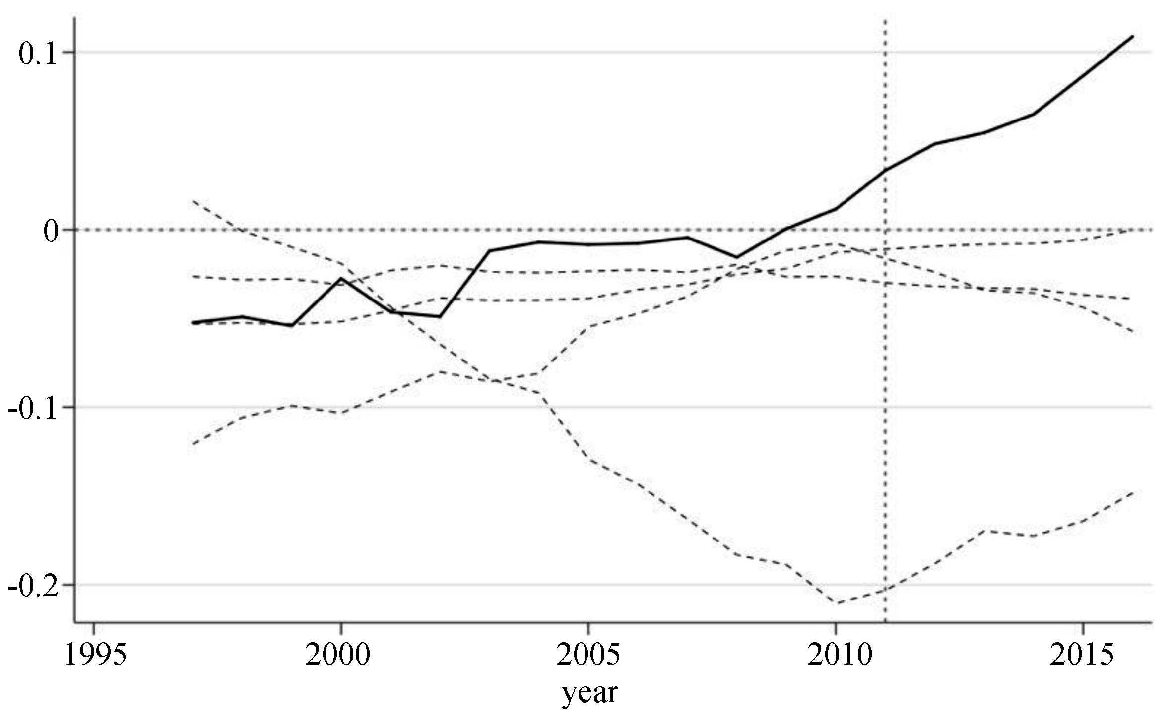 摘要:在行政区划调整的同时,地方政府也通过跨地区的发展规划,在不进行辖区行政区划调整的前提下来达到地区间整合资源的目的。文章所要回答的问题是,这种突破行政边界的区域发展规划能否带动跨地区的市场整合,进而影响区域整体的资源调配和经济表现?文章以2011年国务院正式下发的《成渝经济区区域规划》作为一次准自然实验,将不涉及跨省区域规划的省份作为对照组,利用合成控制法来估计这一跨地区的区域发展规划对川渝两地(大四川地区)经济增长的影响,并结合地级市的面板数据,以及四川、重庆固定资产投资、财政的经验数据和两地经济事务权限配置的变动,检验其中的作用机制,为进一步推进西部大开发形成新格局提供启示。研究发现,《成渝经济区区域规划》促进了包括川、渝两地整体的经济增长,并且对重庆经济增长的促进作用高于四川。机制检验表明,跨省合作能有效将地区竞争产生的溢出效应内部化,通过区域协同、市场整合减轻地区竞争产生的负面效果。文章的实证结论能够应用到中央政府在长三角、京津冀等地区持续推动的跨省经济区建设的分析上,并在一定程度上能够推断,中国改革开放以来的经济增长,既是以省为单位内部竞争的结果,同时也是中央政府利用跨省发展规划来促进区域合作的结果。文章结论对于推进西部开发新格局形成的启示是,有效推进西部地区省份之间的合作,切实形成发展合力,降低竞争性内耗,是塑造西部新发展格局的关键。