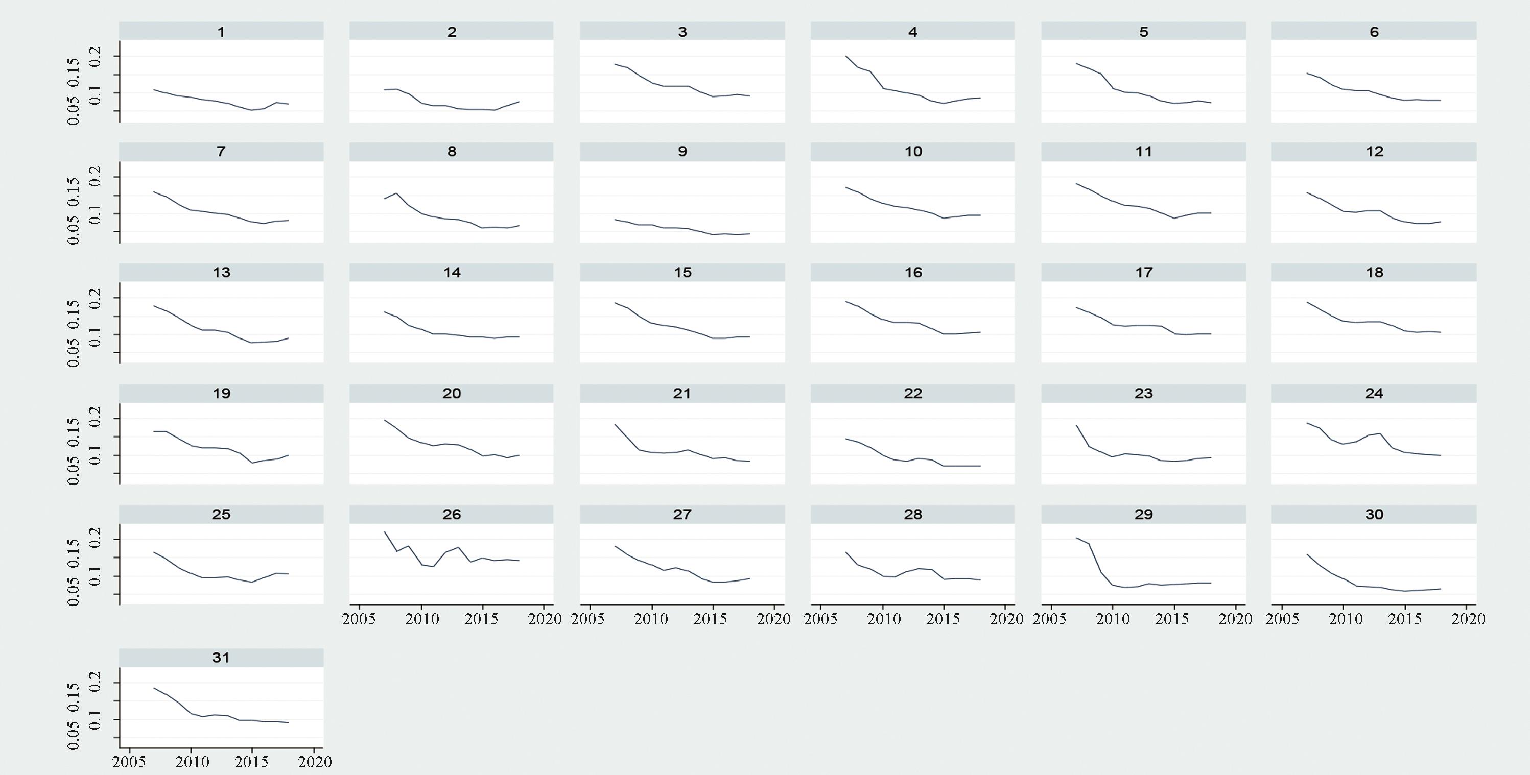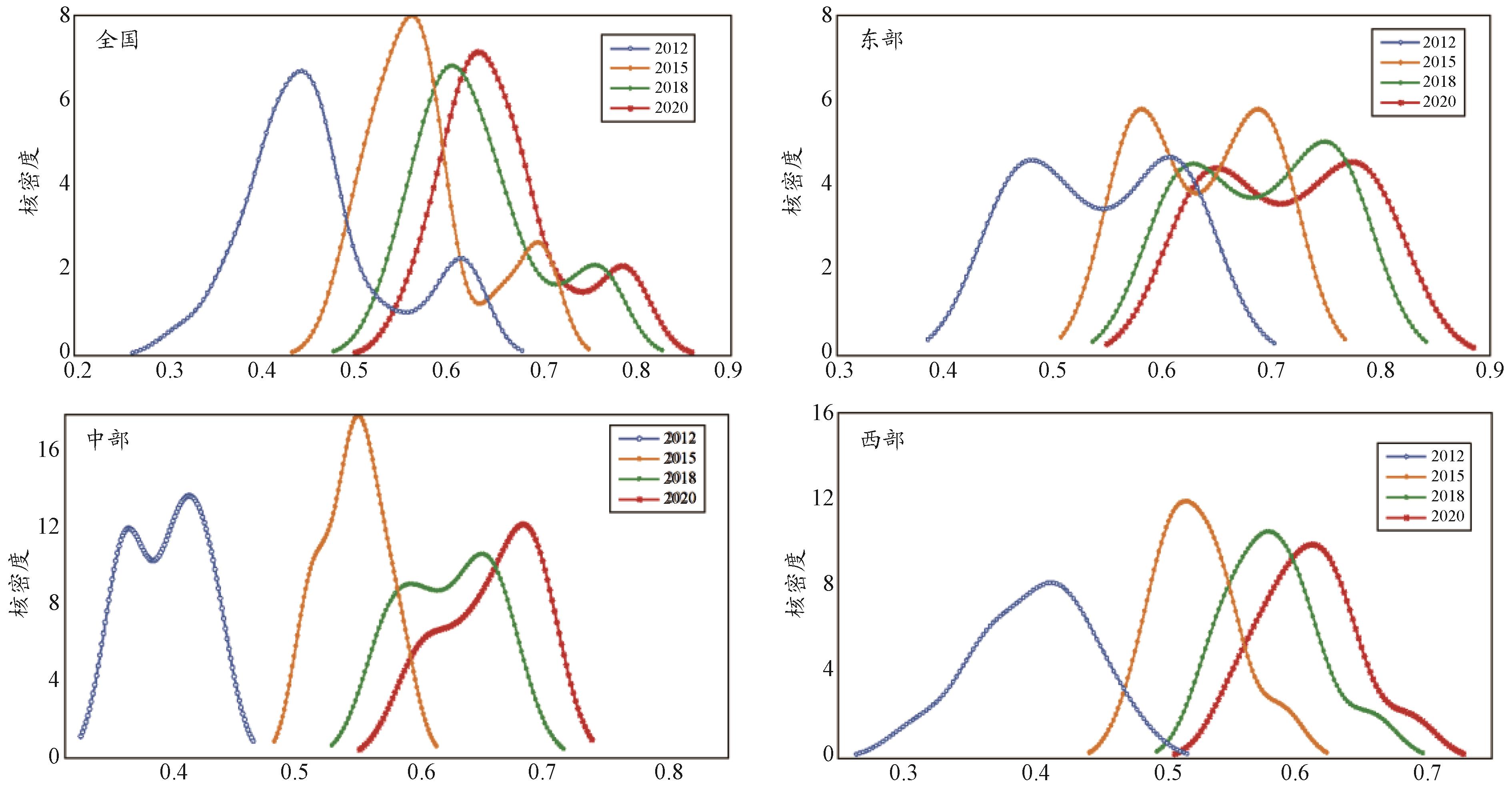 摘要:推动数字经济与乡村全面振兴协同发展是实现高质量发展的重要路径,对于探寻我国中、东、西部地区新发展路径具有重要意义。研究基于2012—2020年省域数据,采用熵值法建立数字经济与乡村全面振兴指标评价体系,通过耦合协调模型测度我国数字经济与乡村全面振兴协同发展水平,利用Dagum基尼系数分解和核密度分析对我国及东中西部地区协同发展的区域性与时序性差异以及演变形态进行分析,采用马尔科夫链模型探讨不同空间滞后条件下我国及东中西部地区数字经济与乡村全面振兴协同发展演进趋势并作出预测。结果表明:首先,全国及各地区数字经济与乡村全面振兴协同发展程度在时序上呈现稳步增长态势;空间上呈现“东高西低”和“相似集聚”的基本格局。其次,从全国尺度看,我国数字经济与乡村全面振兴协同发展水平虽呈现非均衡状态,但总体差异呈现缩小态势,区域间差异是总体差异的主要来源;从区域尺度看,数字经济与乡村全面振兴耦合协调度差异排序依次为东部地区各省份间差异高于西部地区和中部地区。再次,我国数字经济与乡村全面振兴协同发展水平逐步提升,东部地区内部省份协同发展水平差异较大,存在极化现象递减;中部地区整体协同发展水平差距在持续缩小,但与东部地区相比差距仍较大;西部地区数字经济与乡村全面振兴协同发展水平比较均衡,但仍较落后,且多极分化现象呈现增强趋势。最后,我国数字经济与乡村全面振兴协同发展呈现中高水平向高水平转移的趋势;东部地区在良好的协同发展基础上发挥既有优势,在三年后大概率会转移至高水平,反之会抑制其发展;中部地区内部不同省份协同发展水平在未来三年中向高水平收敛,并呈现出明显的“在提升中趋同”的演变特征;而西部地区两系统的协同程度未来三年里随着时间跨度延长不断降低且持续表现出下降趋势。据此,提出如下建议:贯彻落实国家政策,巩固发展成果稳中求进;施行因地制宜方针,打造区域协调发展优势;实施差异化发展战略,构建区域交流学习机制。