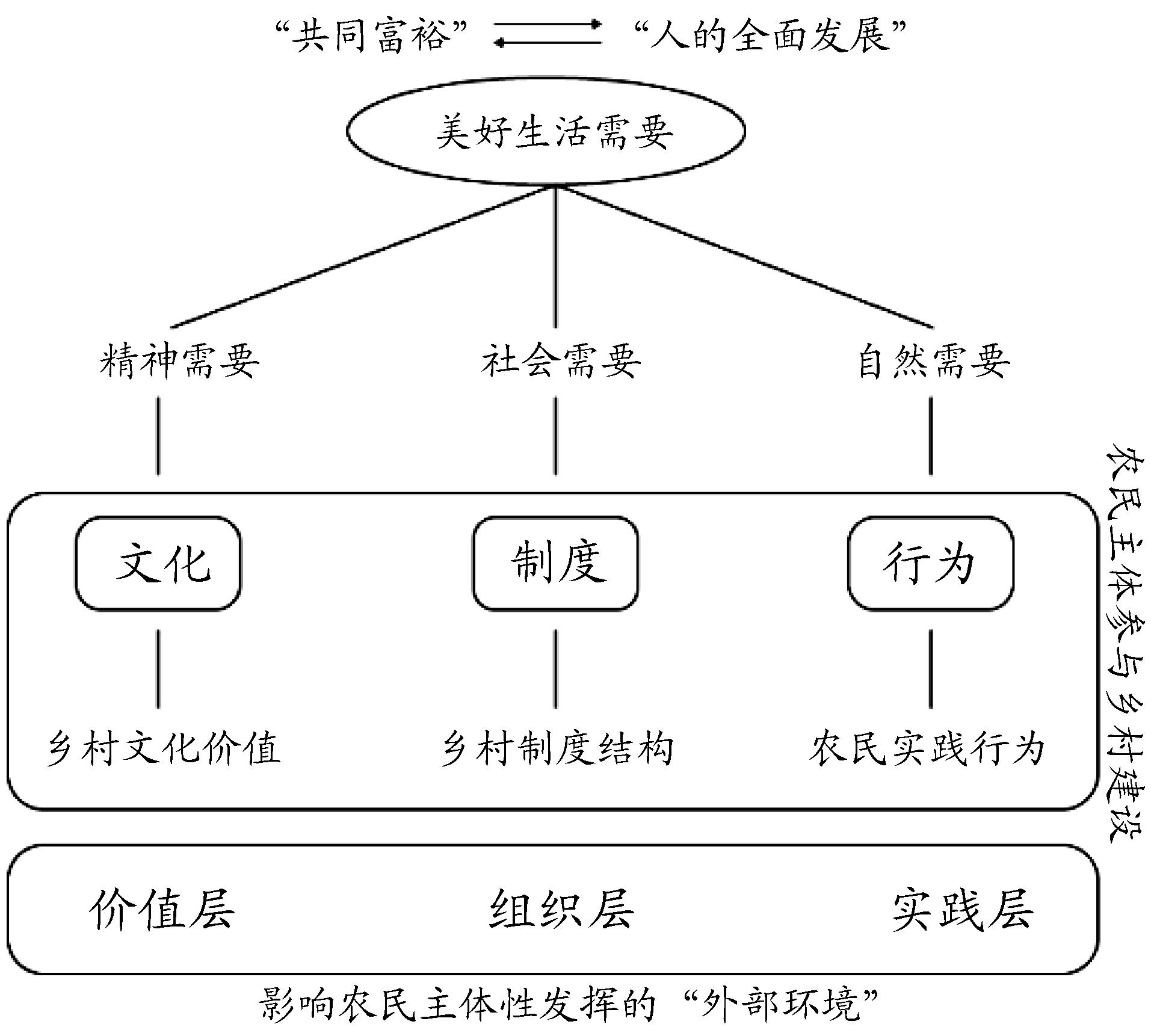 摘要:乡村振兴是实现共同富裕的必由之路,促进农民主体参与乡村建设,充分激发农民主体性,对推进乡村振兴战略实施、实现人民美好生活需要具有重要意义。党的二十届三中全会通过的《中共中央关于进一步全面深化改革、推进中国式现代化的决定》明确提出,要充分发挥农民主体作用和首创精神,2025年中央一号文件亦强调“坚持政府主导、农民主体、社会参与”,为农民主体性参与乡村建设提供了明确政策导向。在马克思主义人的需要理论和人本主义潜能观的融合视角下,农民主体参与乡村建设是实现人民美好生活需要的根本遵循。现有研究在乡村文化、乡村制度以及农民行为等三个方面取得了丰硕成果,通过进一步分析可以发现,文化、制度及行为分别从价值、组织、实践等三个层面影响着乡村建设中农民主体性的发挥,且三者之间具有“文化驱动—制度基础—行为支撑”的内在逻辑。在“文化—制度—行为”的框架下再次观照当下乡村建设实践,发现在乡村全面振兴背景下存在的地文化认同缺失、乡村制度结构冲突、农民行为发展受限等问题仍构成了农民主体参与乡村建设的现实困境。因此,文章在“文化—制度—行为”的框架下,从围绕“公共事件”增强文化认同意识、紧扣“创收需求”创造农民参与路径、推动“全岗参与”发展全面实践能力三个方面对广西Y非遗工坊建设实践进行了案例分析,认为在乡村建设实践中,需要以“共鸣”唤醒文化认同、以“共济”消解制度冲突、以“共通”打破能力屏障,进而激发农民主体性,促进农民主体参与乡村建设。而对于“谁的乡村建设”这一问题需要多维度、多视角的系统审视,乡村文化建设、制度建设以及行为建设是影响农民主体参与乡村建设的共有因素,对三者的综合考量能够有效带动农民主体参与乡村建设,促进农民主体性的发挥,助力农民在乡村振兴战略中实现共同富裕。
