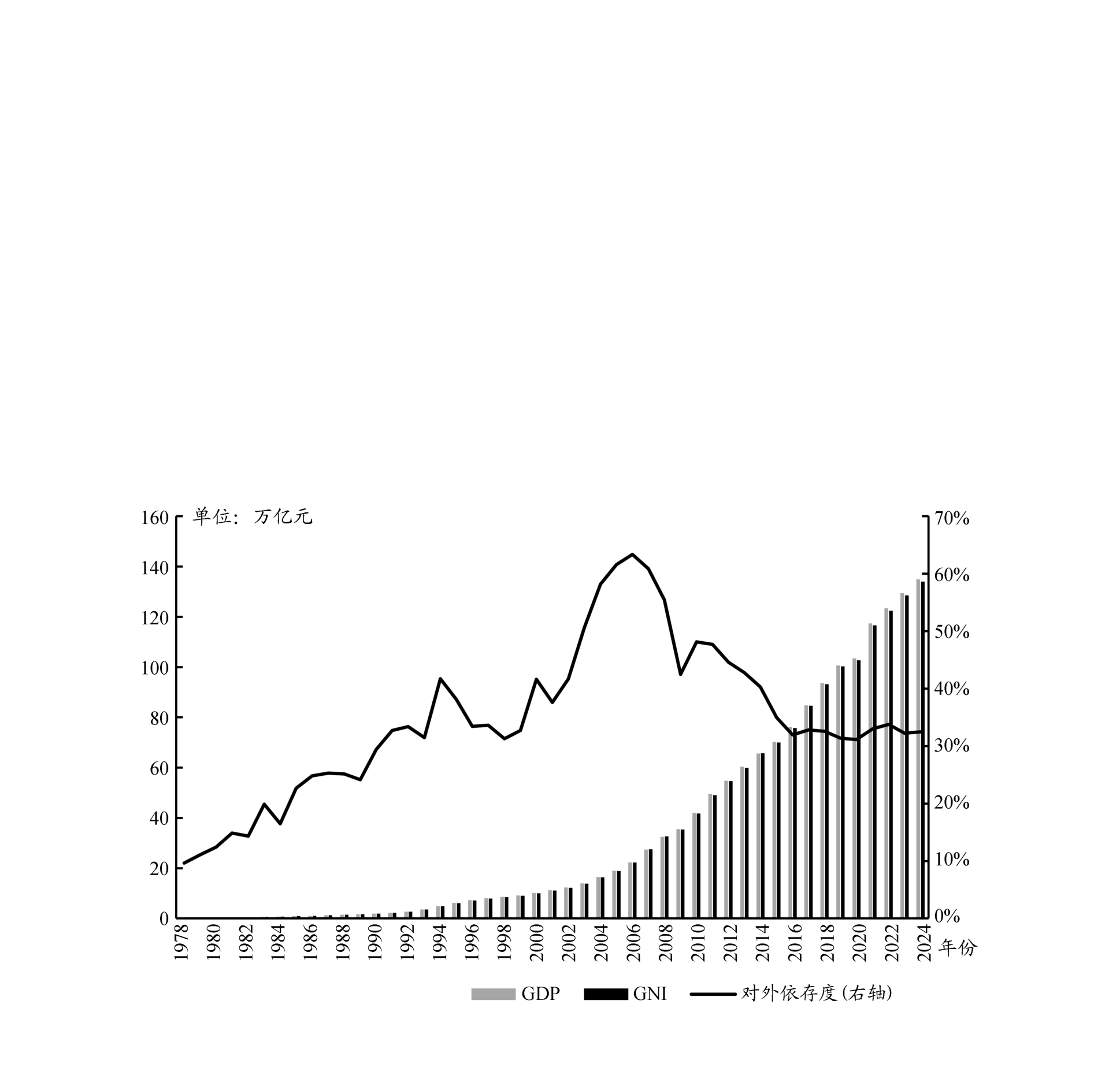 “中国人经济”既是对高水平对外开放战略的回应,也是顺应全球百年未有之大变局、破解传统GDP核算局限的理论凝练与实践创新有机统一。其核心要义在于推动中国经济发展价值导向从规模扩张向质量提升、福祉增进转型,构建“立足国内、辐射全球、产业筑基、政策护航、福祉共享”的经济新形态。该形态以“GDP筑基、GNI导向”为核算体系,实现“中国经济”与“中国人经济”一体两翼协同发展,突破地域边界限制,将研究视角从领土范围内的经济活动转向国民主体的财富创造与福祉提升;以高水平对外开放为理论根基,打破西方资本逻辑主导的“中心—外围”剥削体系,践行互利共赢的全球资源配置理念。在实践支撑层面,通过高端制造升级与消费提质扩容夯实国内实体经济根基,以共建“一带一路”倡议为依托拓展全球投资布局,用全方位海外综合服务体系筑牢跨境发展保障。在政策保障层面,以扩大制度型开放、推进收入分配与社会保障改革、双向投资政策协同发力形成系统支撑。当前,构建“中国人经济”面临核心技术支撑不足、国际规则适配不畅、福祉共享机制待完善等挑战,需以科技创新强化核心竞争力、以规则对接提升全球资源配置能力、以完善分配保障体系实现福祉共享,为促进国内国际双循环、推动高水平对外开放与高质量发展深度融合提供学理支撑,为中国式现代化进程中增进民生福祉提供实践指引。