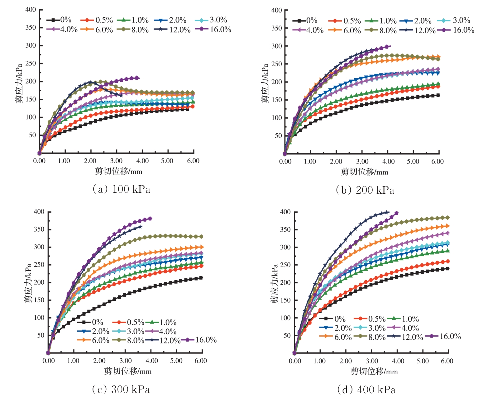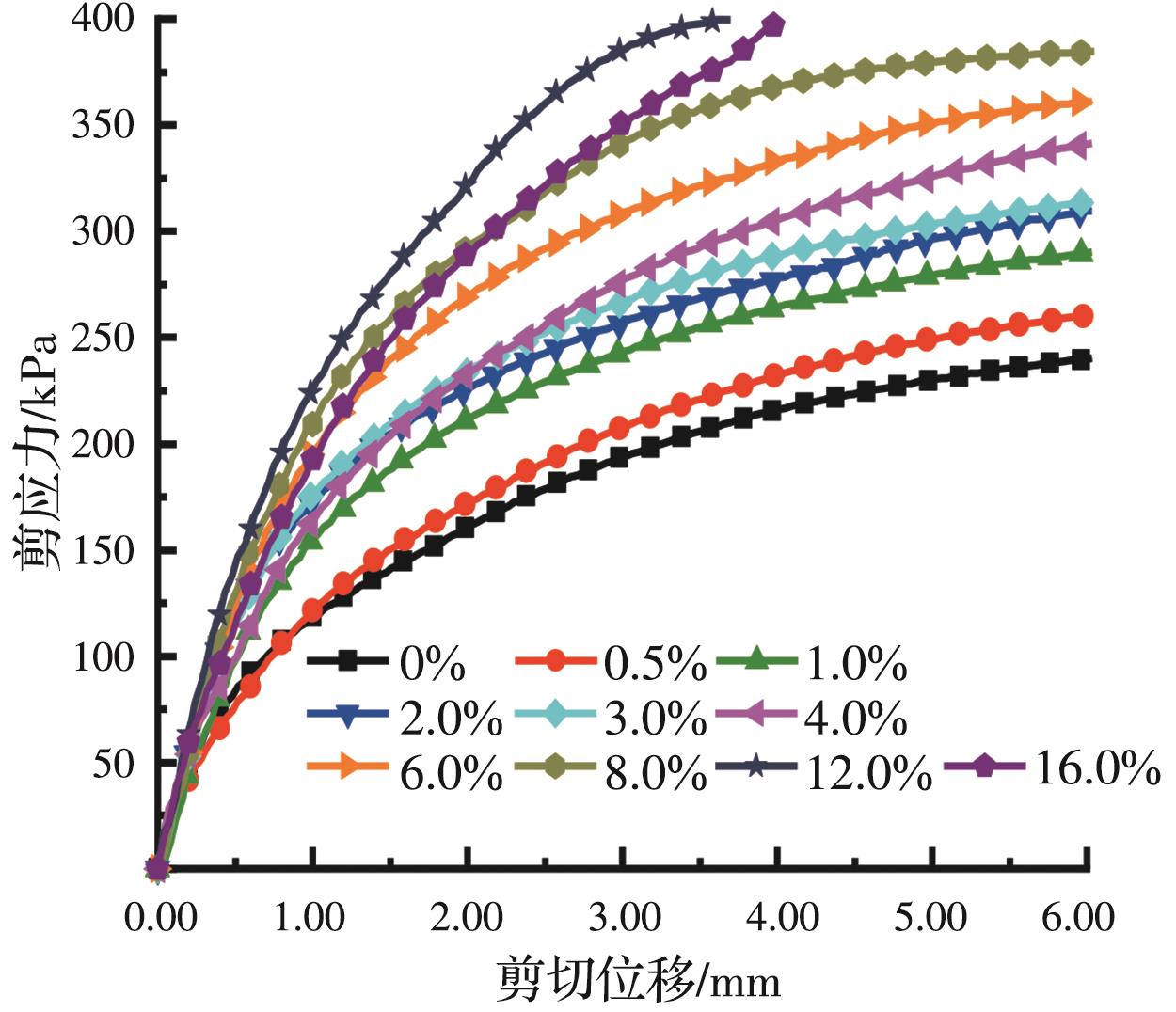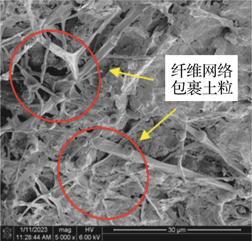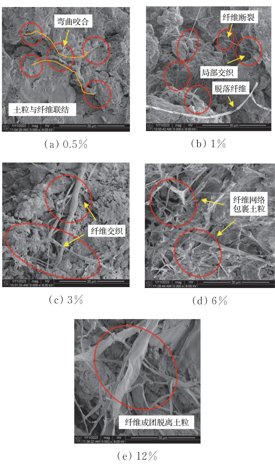 摘要:纤维含量是影响加筋土的重要参数,现有研究中纤维含量的取值范围一般较小,纤维含量较高的加筋土物理力学性能尚不清楚。为了研究较高纤维含量对稻草纤维加筋土的影响,设置10个纤维质量分数,采用直剪试验进行研究,探讨不同纤维含量对加筋土强度特性的影响,并通过扫描电镜(scanning electron microscope,SEM)试验和核磁共振(nuclear magnetic resonance,NMR)测试对纤维加筋土的微观结构特征进行分析。结果表明,加入纤维能有效提高土体的抗剪强度。纤维加筋土的增强机理与纤维含量有关,较低的纤维含量对土体孔隙率影响不大,加筋土以土骨架为基础;当纤维含量较高时,孔隙率明显增大,加筋土的主体结构将由土骨架和纤维骨架组成。