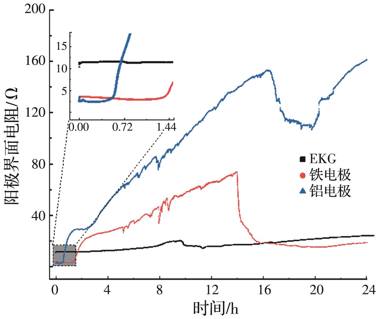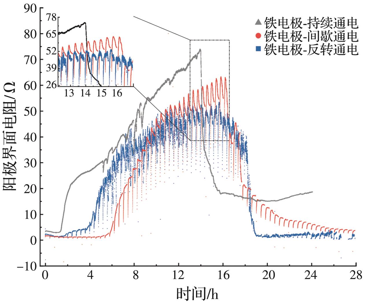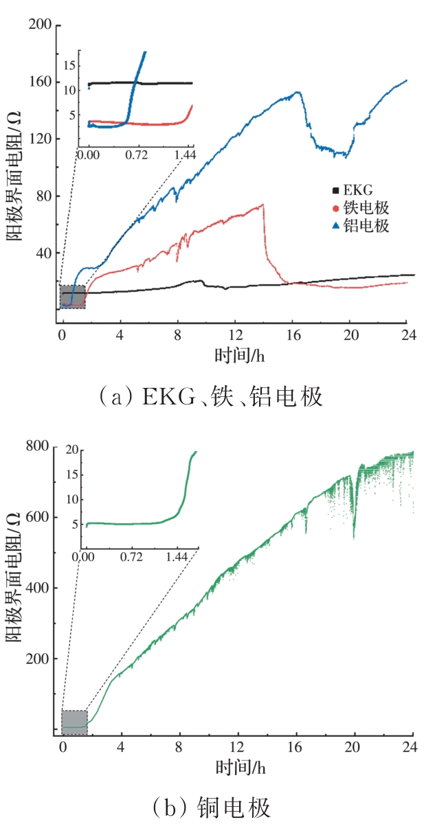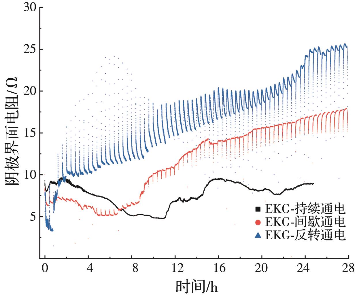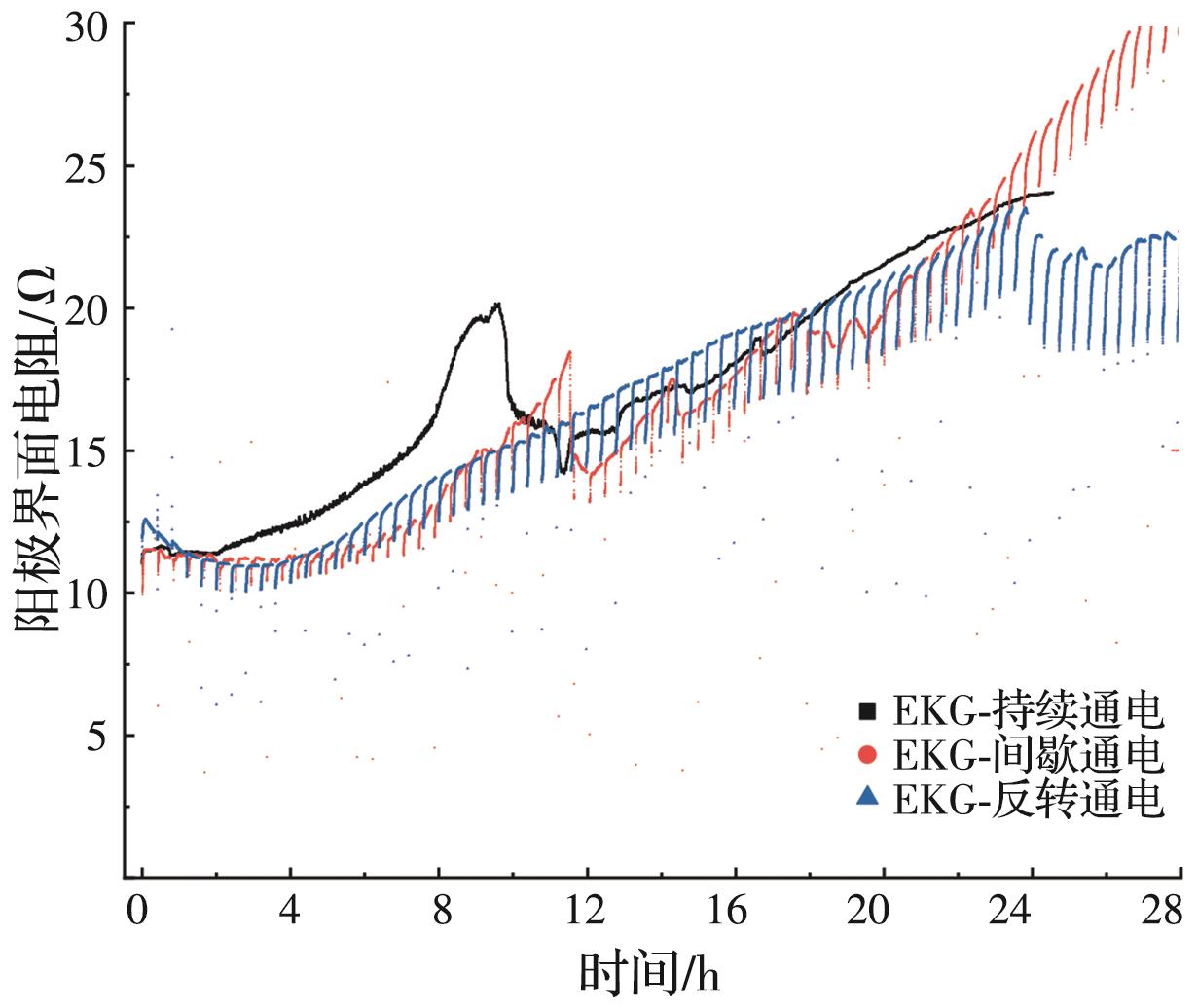 摘要:针对电渗加固软土地基能耗高、黏土-电极界面电势损失大的问题,从电化学反应角度出发,研究电极反应对界面电阻的影响。利用自行研制的一维电渗固结装置,开展电极材料和通电模式两大关键因素的室内试验,研究电动土工合成材料(EKG)、铁、铝和铜4种不同电极在持续通电条件下的黏土-电极界面电阻变化趋势,并研究间歇通电、反转通电两种优化通电策略的电化学作用机理。结果表明:电极反应改变了界面电化学特性,通过影响界面电阻进而影响电渗排水速率;界面电阻增长迅速是导致电渗高能耗的原因之一,阳极界面电阻受电极反应影响明显,长期通电情况下,电动土工合成材料电极阳极界面电阻较小,而在浓差电阻和表面膜阻的共同影响下,金属电极阳极界面电阻较大;采用优化通电模式有利于缓解界面极化现象,抑制界面电阻增长。