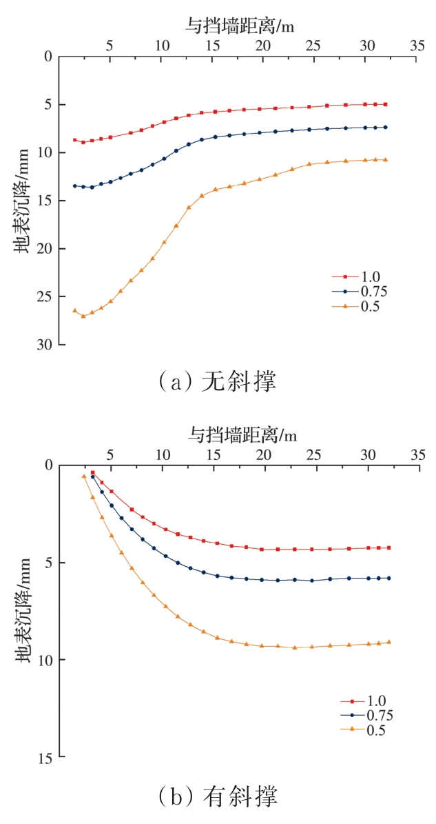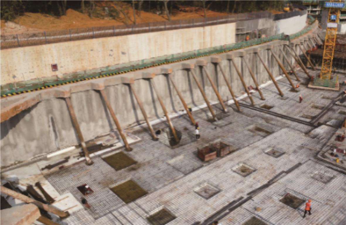 摘要:扩底承载式钢管混凝土斜支撑技术是一种新型基坑开挖支护技术,许多工程案例已经证实了其良好的支护性能,但目前还缺乏对该倾斜支撑功能机理的深入研究。通过有限元数值模拟建立应用扩底承载式斜撑基坑开挖的数值模型,利用监测数据验证模型的合理性。基于此模型探究扩底承载式斜撑在基坑开挖过程中的变形特性,通过分析不同工况时的挡墙变形、基底隆起量和地表沉降量得到土体刚度、土体强度、斜支撑的倾斜角度对扩底承载式斜撑支护性能的影响。结果表明:扩底斜撑对基坑开挖的土体与支护变形具有明显控制效果,能有效减小基坑的基底隆起、挡墙侧移和坑外地表沉降,且在软土地区的适用性更高;扩底斜撑倾斜角度的增加使支撑趋于横向受力,具有更高的承载力,有利于控制基坑开挖过程中土体和挡墙的变形,但会提高工程造价,需要根据具体工程情况以及对土体控制要求选择合适的倾斜角度。