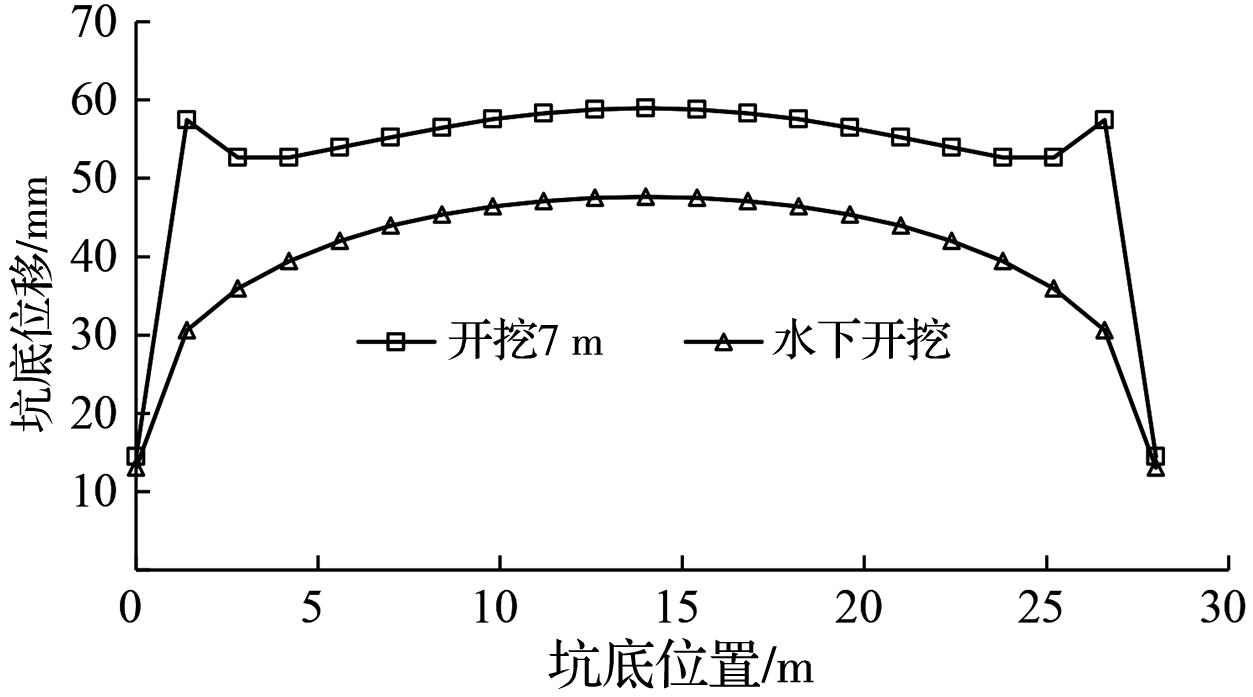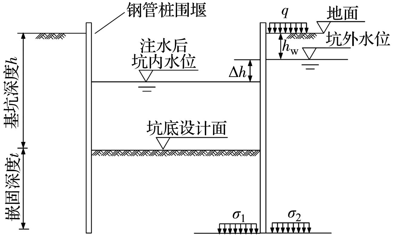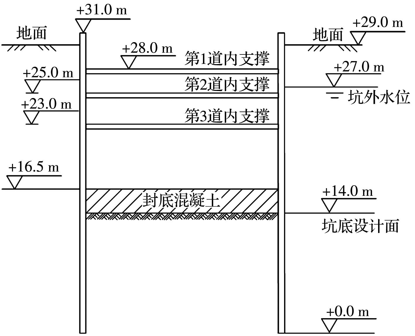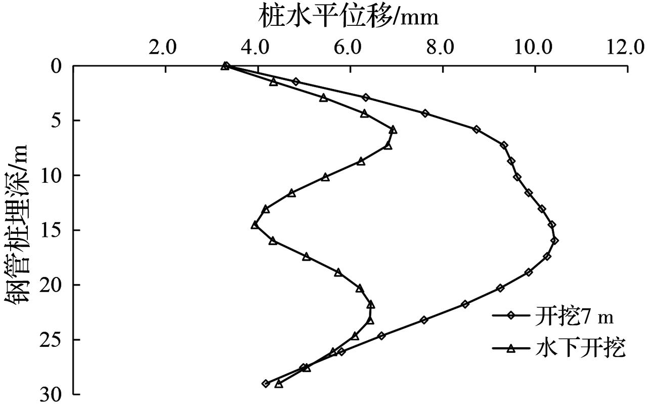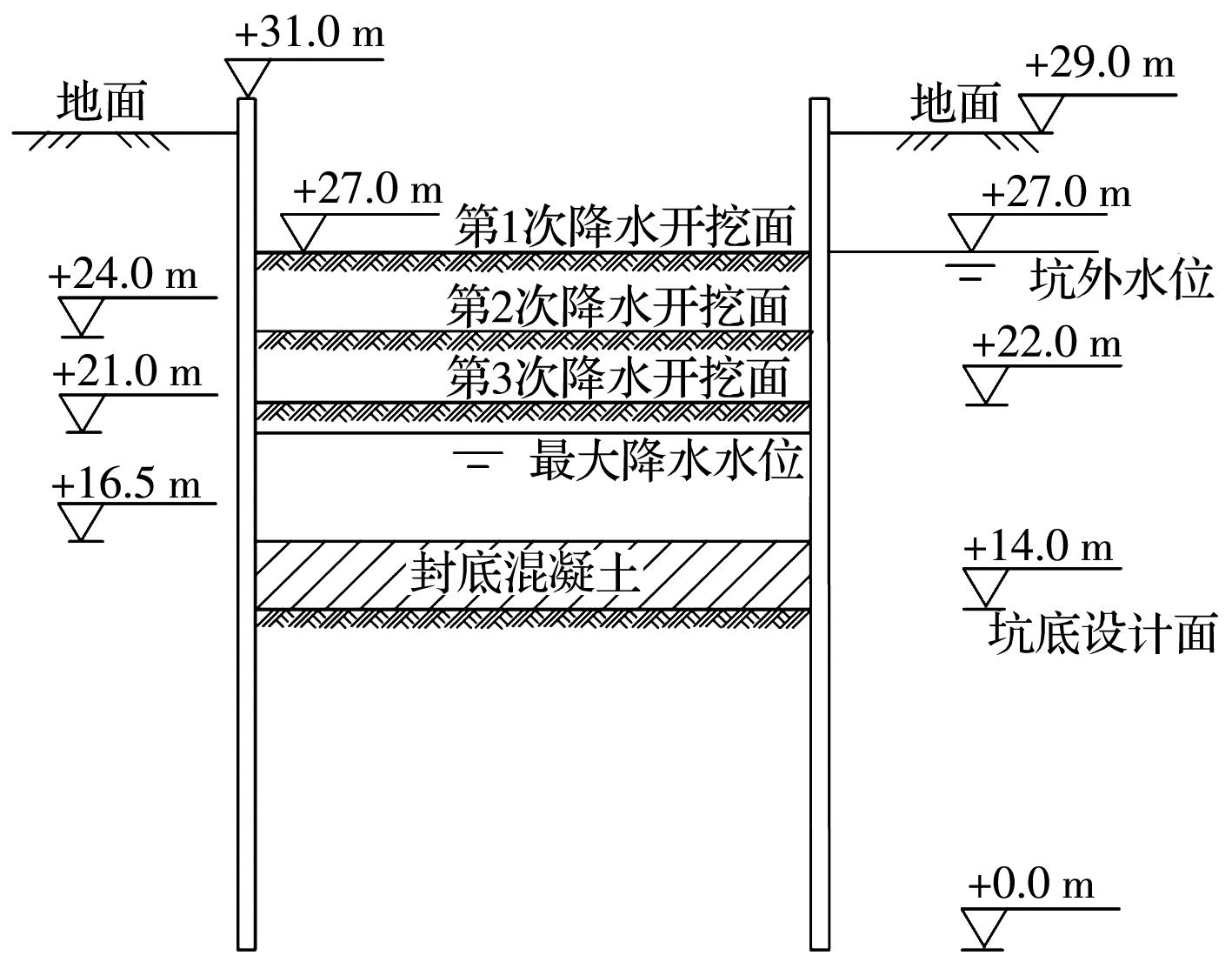 摘要:注水与水下开挖是一种新型基坑开挖方法,用于解决基坑地下水与江河水有稳定联系时传统的坑外降水与坑内排水方法无法实施的问题。提出深基坑注水与水下开挖的设计计算方法,结合钢板桩围堰深基坑工程,制定注水与水下开挖方案,建立数值模型研究深基坑先降水形成旱地工作条件开挖、再注水进行水下开挖、水下浇筑封底混凝土后再降水时所对应的支护结构受力与变形规律,并对注水高度进行优化。结果表明:先降水形成旱地工作条件时最大降水深度取决于坑底土体抗流砂、管涌的稳定性,开挖深度从2 m增加至7 m时,支护结构水平位移增加了53.6%,坑底塑性隆起量的最大值逐渐增大至59.0 mm;再注水进行水下开挖时,增加注水高度能有效减小坑底土体的隆起变形及支护桩的水平位移,临界注水高度为9 m,注水高度超过该临界值后,其抑制坑底和支护桩变形的效果会减弱。封底混凝土厚度取决于其抗浮稳定性和强度,钢板桩嵌固深度取决于水下浇筑混凝土后再降水工况下支护结构的整体稳定性。