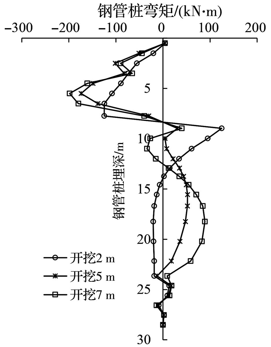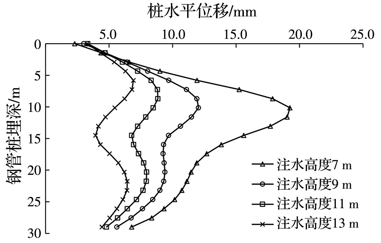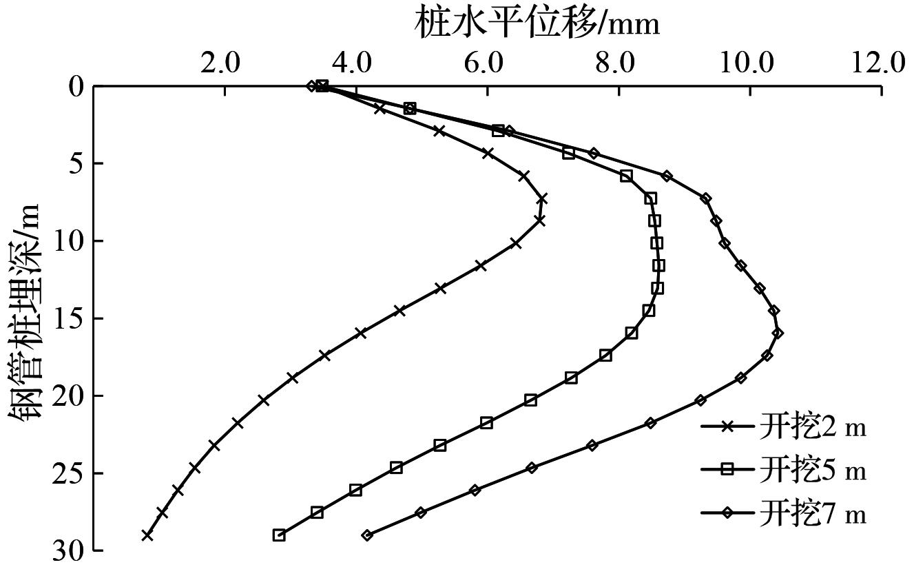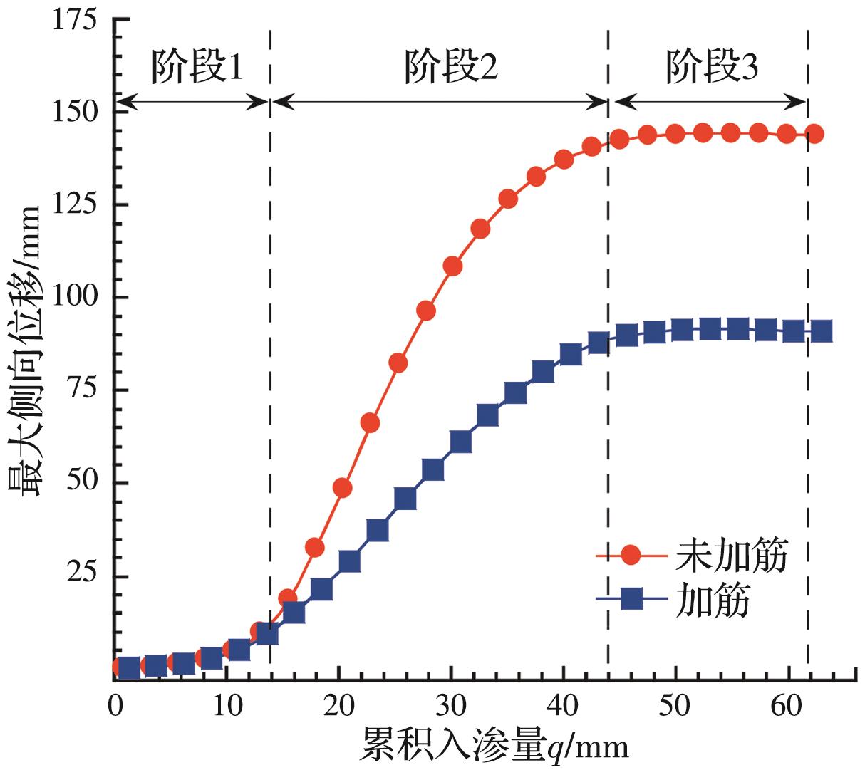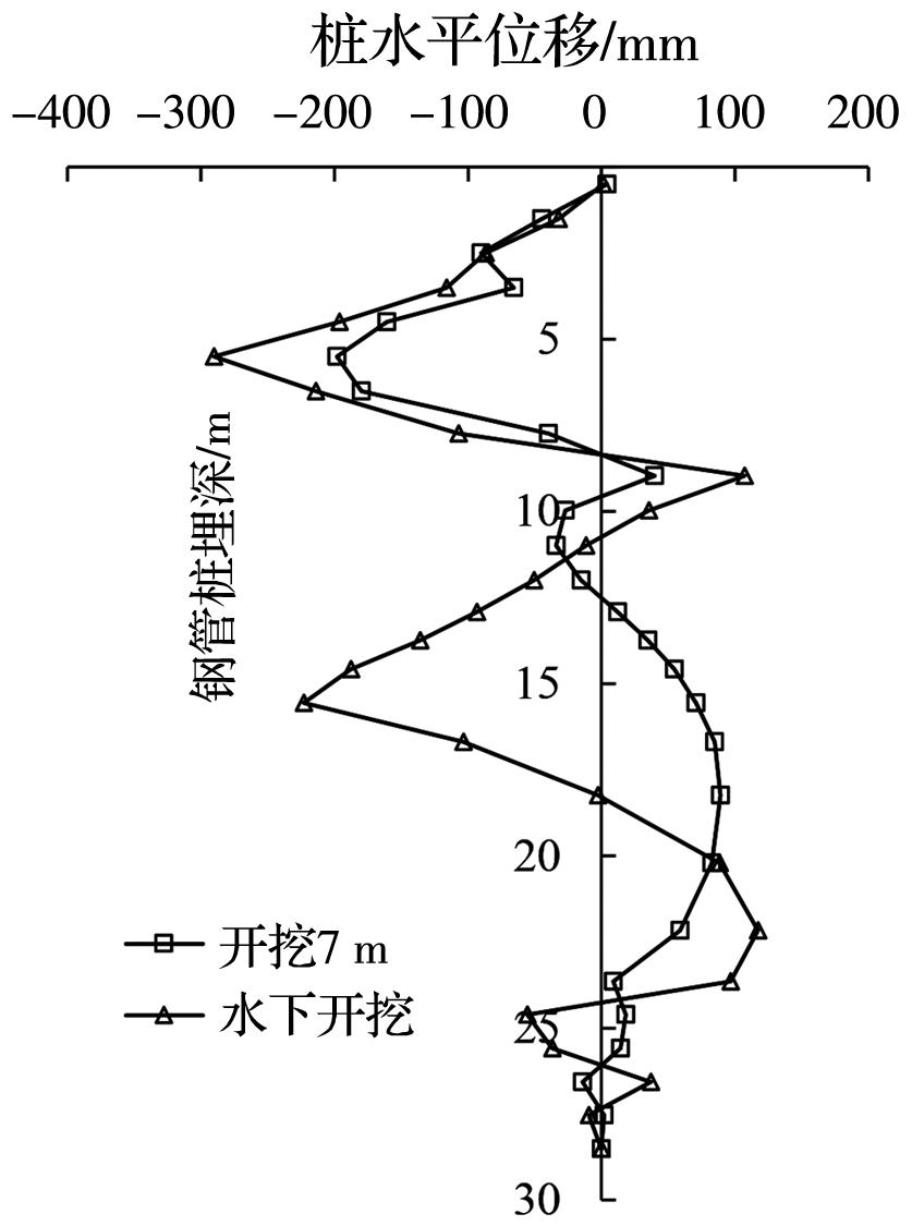 摘要:注水与水下开挖是一种新型基坑开挖方法,用于解决基坑地下水与江河水有稳定联系时传统的坑外降水与坑内排水方法无法实施的问题。提出深基坑注水与水下开挖的设计计算方法,结合钢板桩围堰深基坑工程,制定注水与水下开挖方案,建立数值模型研究深基坑先降水形成旱地工作条件开挖、再注水进行水下开挖、水下浇筑封底混凝土后再降水时所对应的支护结构受力与变形规律,并对注水高度进行优化。结果表明:先降水形成旱地工作条件时最大降水深度取决于坑底土体抗流砂、管涌的稳定性,开挖深度从2 m增加至7 m时,支护结构水平位移增加了53.6%,坑底塑性隆起量的最大值逐渐增大至59.0 mm;再注水进行水下开挖时,增加注水高度能有效减小坑底土体的隆起变形及支护桩的水平位移,临界注水高度为9 m,注水高度超过该临界值后,其抑制坑底和支护桩变形的效果会减弱。封底混凝土厚度取决于其抗浮稳定性和强度,钢板桩嵌固深度取决于水下浇筑混凝土后再降水工况下支护结构的整体稳定性。