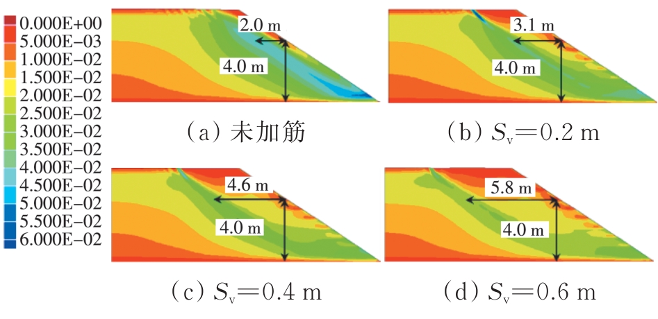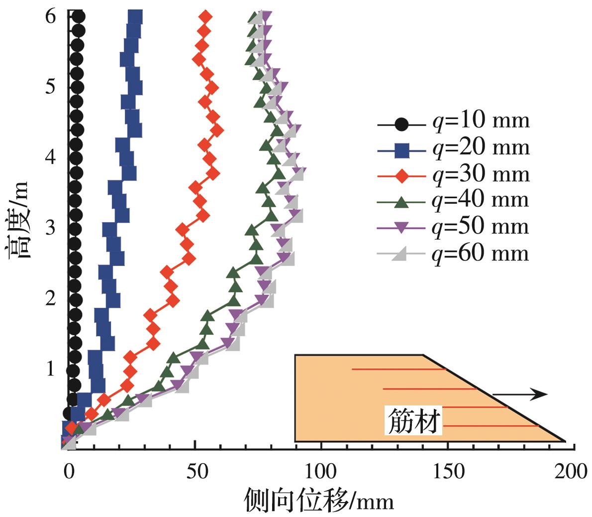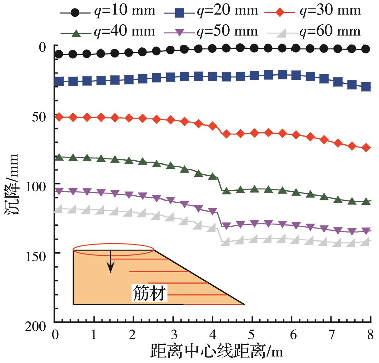 摘要:路堤填土通常处于非饱和状态,降雨引起的雨水入渗会导致非饱和填土发生润湿,因而产生变形,从而导致路堤边坡发生变形。土工合成材料具有较高的抗拉强度,能减小路堤变形,并提高其稳定性。提出考虑非饱和土水-力耦合行为的本构模型,通过二次开发嵌入有限差分程序FLAC,根据加载和湿化路径的三轴试验数据对本构模型进行验证。利用验证的非饱和土本构模型模拟路堤填料,研究非饱和土加筋路堤在降雨条件下的湿化变形行为,并对比研究筋材对路堤湿化变形的影响。结果表明:筋材在未加筋区几乎不产生影响,但能有效减小加筋区土体单元的体积应变和剪应变。筋材对路堤中线附近未加筋区的顶面沉降几乎不产生影响,但能有效减小路肩处的顶面沉降和路堤边坡的侧向位移。筋材越长,对减小路堤的顶面沉降和路堤边坡的侧向位移效果越好,路堤内部的潜在破坏面距坡面越远。