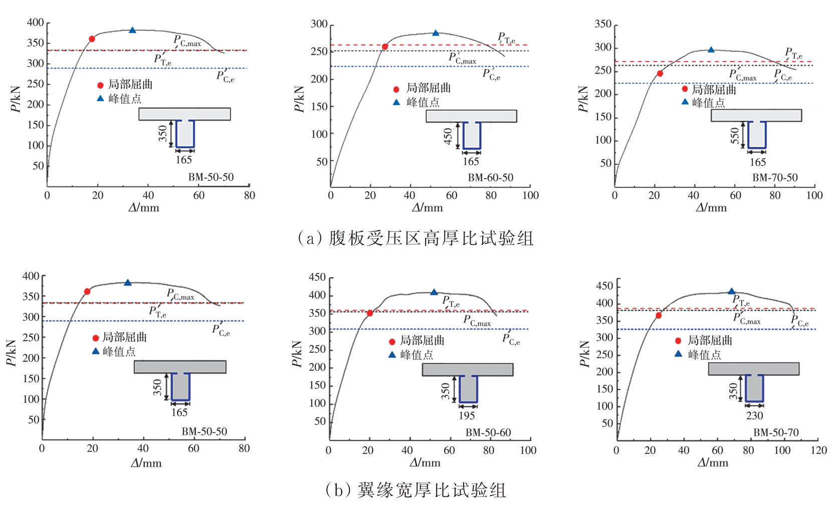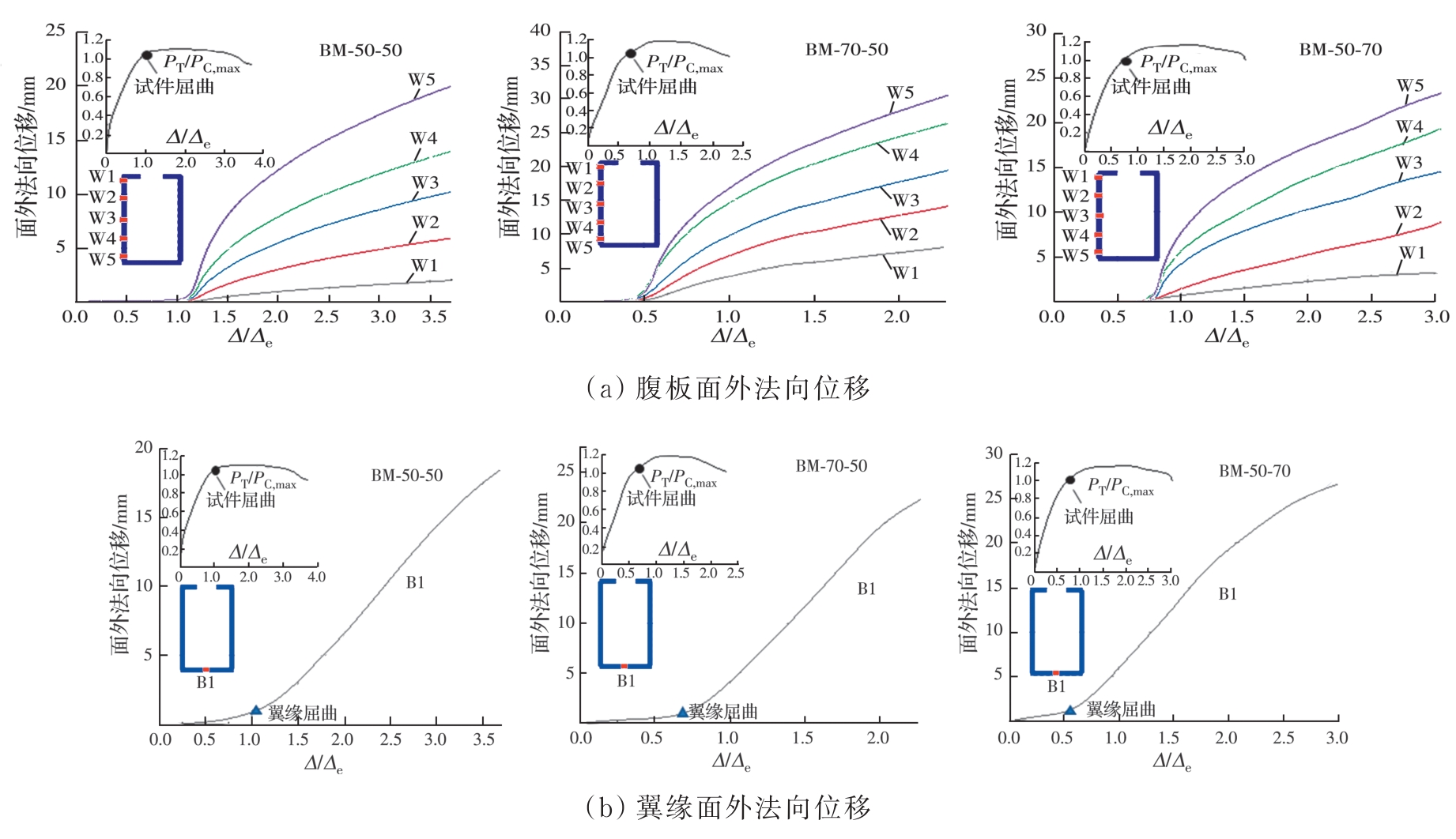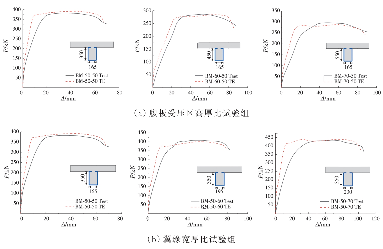 摘要:为研究U形钢-混凝土组合梁(U形钢组合梁)基于截面分类的外包钢板件宽厚比限值,对5根U形钢组合梁试件进行单调静力加载试验,分析不同外包钢腹板受压区高厚比及受压翼缘宽厚比情况下U形钢组合梁的破坏模式、荷载-位移曲线及塑性变形能力。试验结果表明,外包钢板件宽厚比对U形钢组合梁的屈曲变形和塑性变形能力有直接影响,所有试件在达到峰值承载力前均发生了局部屈曲,破坏模式为弯曲塑性破坏。有限元参数分析结果表明,外包钢腹板与受压翼缘之间的非线性行为相互影响,板件的屈曲时刻随着相邻板件宽厚比的增大而提前,增大外包钢板件宽厚比会降低U形钢组合梁的塑性发展程度。基于试验与有限元参数分析结果,提出U形钢组合梁的Ⅱ类截面(Class 2)外包钢板件宽厚比限值建议,并将提出的限值与规范限值进行对比分析,结果表明,该限值更符合U形钢组合梁的真实受力性能,可在一定程度上更加充分地发挥其结构优势。