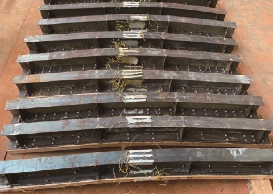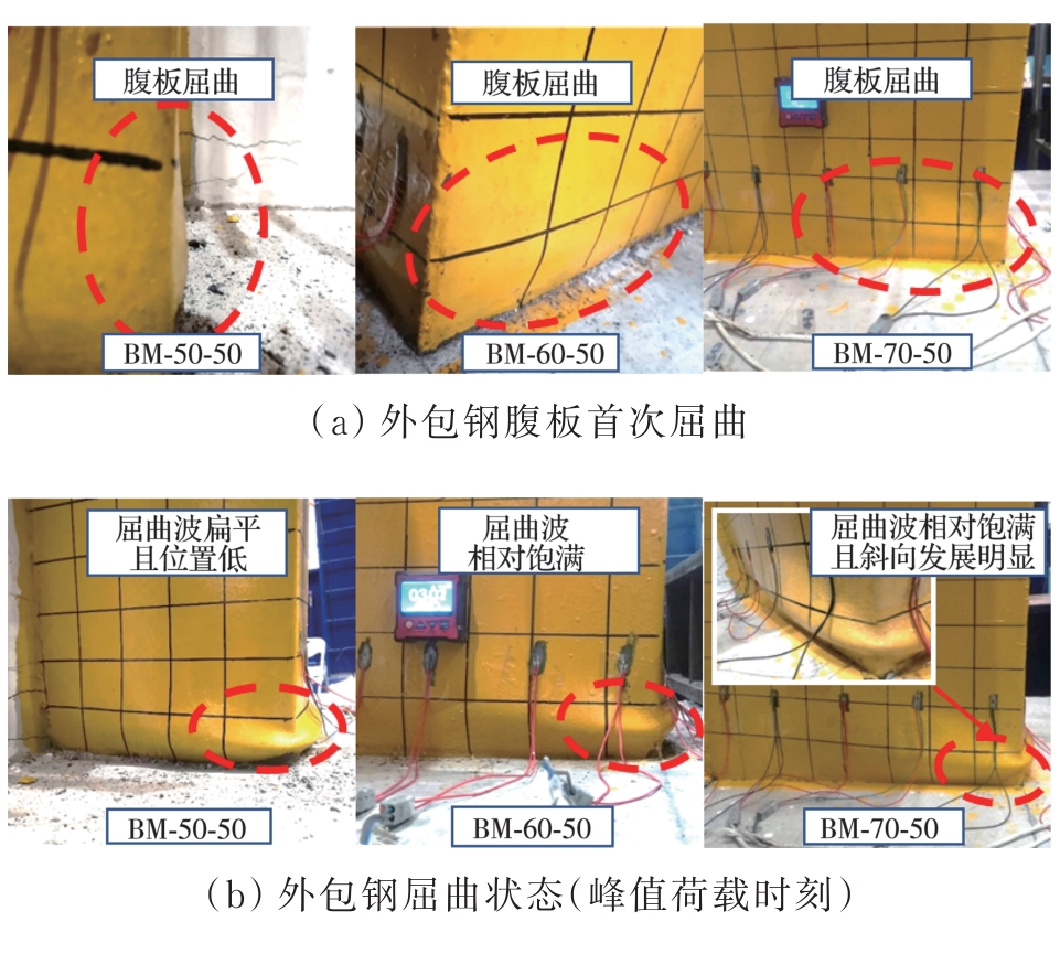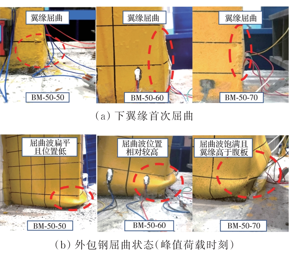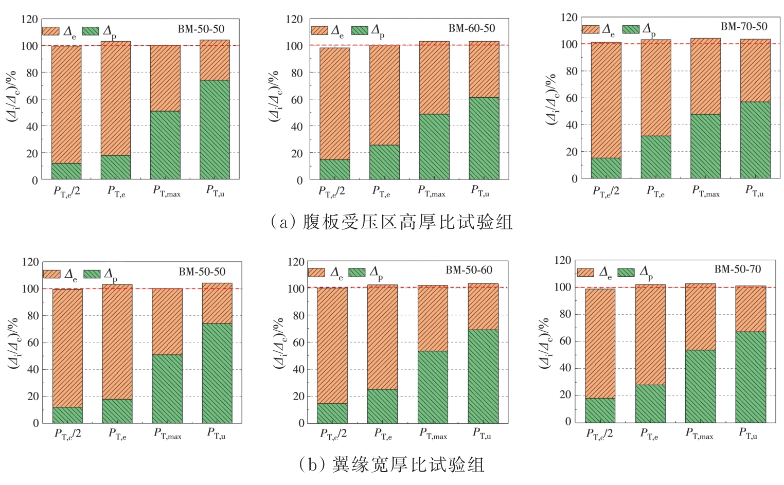 摘要:为研究U形钢-混凝土组合梁(U形钢组合梁)基于截面分类的外包钢板件宽厚比限值,对5根U形钢组合梁试件进行单调静力加载试验,分析不同外包钢腹板受压区高厚比及受压翼缘宽厚比情况下U形钢组合梁的破坏模式、荷载-位移曲线及塑性变形能力。试验结果表明,外包钢板件宽厚比对U形钢组合梁的屈曲变形和塑性变形能力有直接影响,所有试件在达到峰值承载力前均发生了局部屈曲,破坏模式为弯曲塑性破坏。有限元参数分析结果表明,外包钢腹板与受压翼缘之间的非线性行为相互影响,板件的屈曲时刻随着相邻板件宽厚比的增大而提前,增大外包钢板件宽厚比会降低U形钢组合梁的塑性发展程度。基于试验与有限元参数分析结果,提出U形钢组合梁的Ⅱ类截面(Class 2)外包钢板件宽厚比限值建议,并将提出的限值与规范限值进行对比分析,结果表明,该限值更符合U形钢组合梁的真实受力性能,可在一定程度上更加充分地发挥其结构优势。