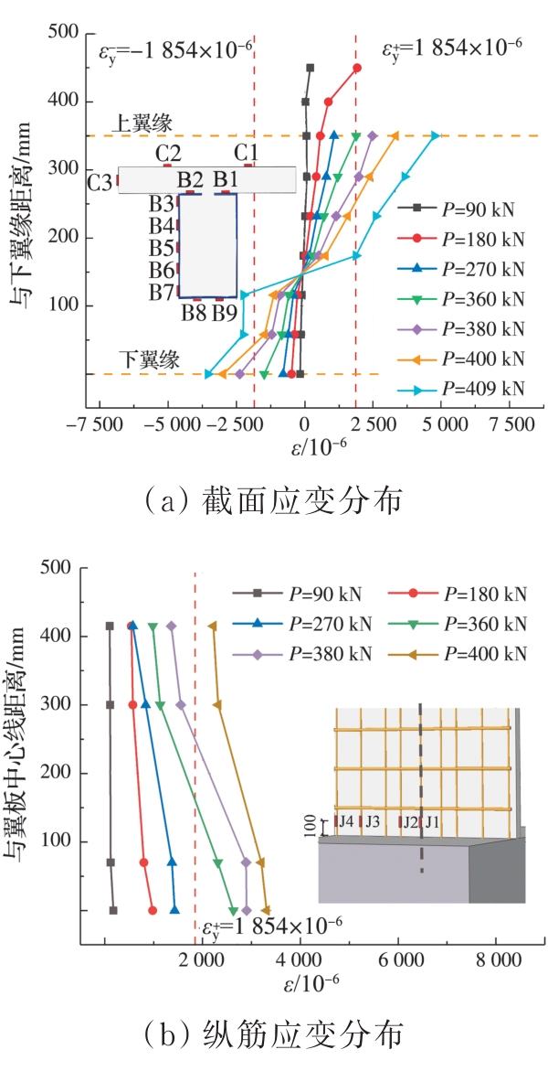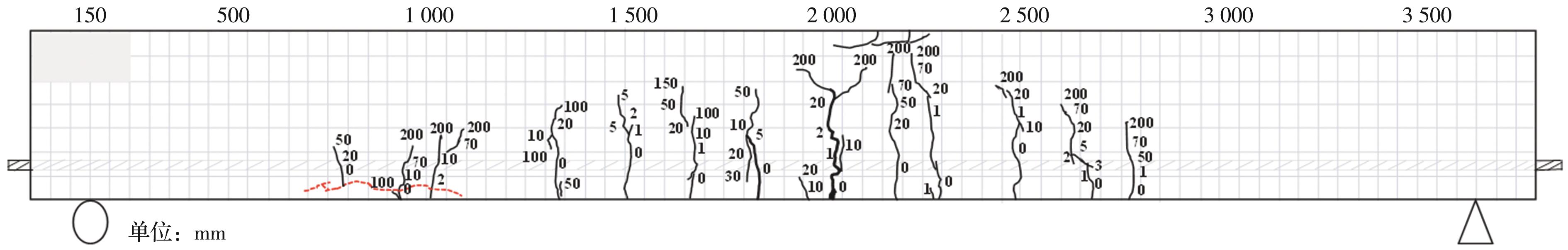 摘要:提出以抗拉强度高、耐腐蚀的超高性能混凝土(UHPC)为腹板和底板,以钢筋混凝土(RC)为顶板的预应力RC-UHPC组合箱梁,并制作1根试件开展抗弯试验。分析试件的裂缝开展规律与破坏模式;采用有限元软件对试验进行模拟,通过对比有限元计算结果与试验数据验证有限元方法的计算精度,在此基础上建立19个有限元分析模型,分析不同参数对开裂弯矩的影响;采用相关规范及既有文献资料对预应力RC-UHPC组合箱梁的开裂弯矩与裂缝宽度进行计算。结果表明:试件加载至约33.3%极限荷载时出现第1条裂缝,之后荷载-挠度曲线逐渐趋于平缓;开裂弯矩受预应力筋张拉系数、预应力筋配筋率、UHPC抗拉强度影响较大。采用基于换算截面的开裂弯矩计算方法与DBJ 43/T 325—2017中的裂缝宽度计算方法,分别计算预应力RC-UHPC组合箱梁的开裂弯矩及裂缝宽度,计算值与试验值、有限元计算值吻合较好。