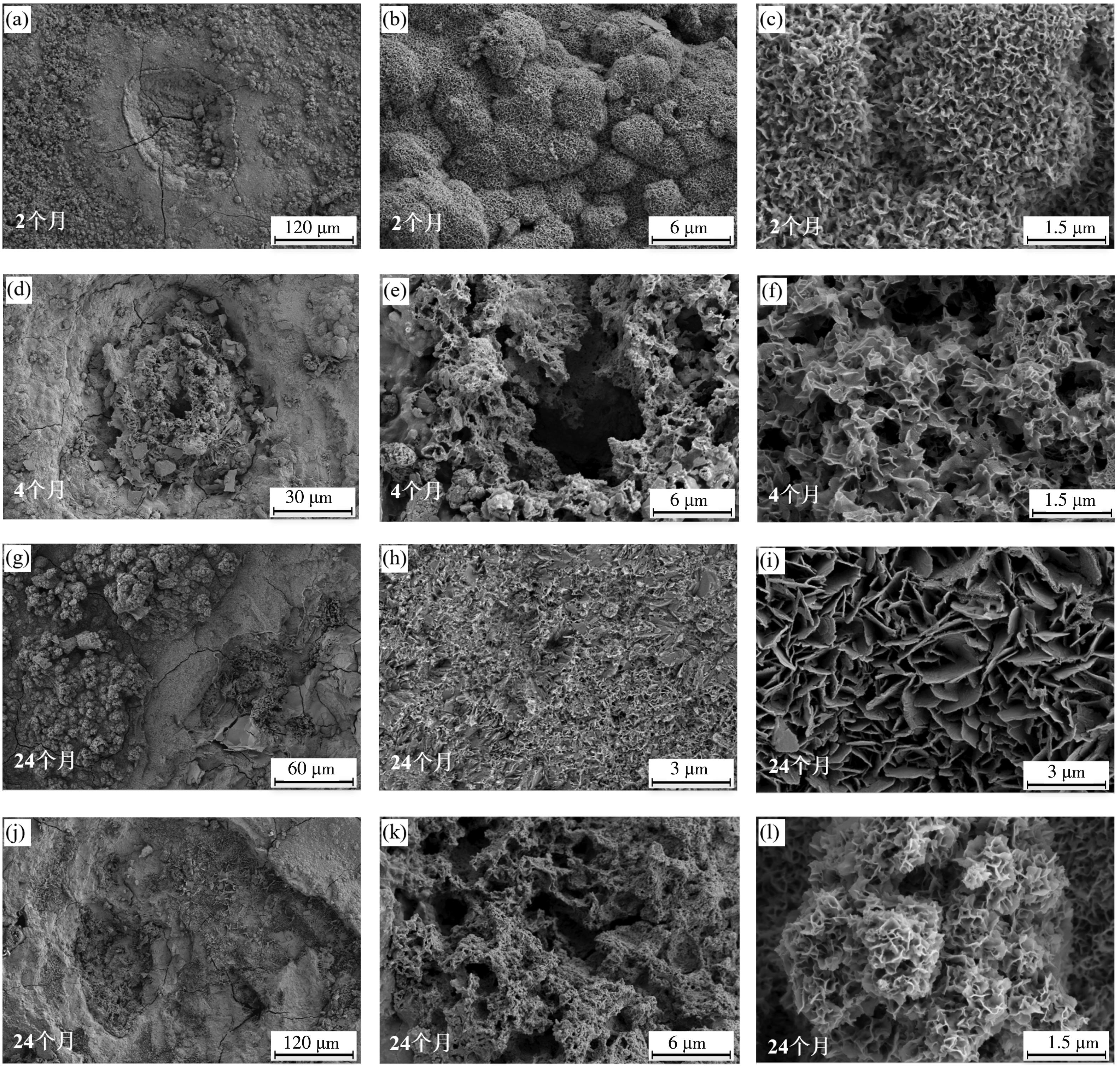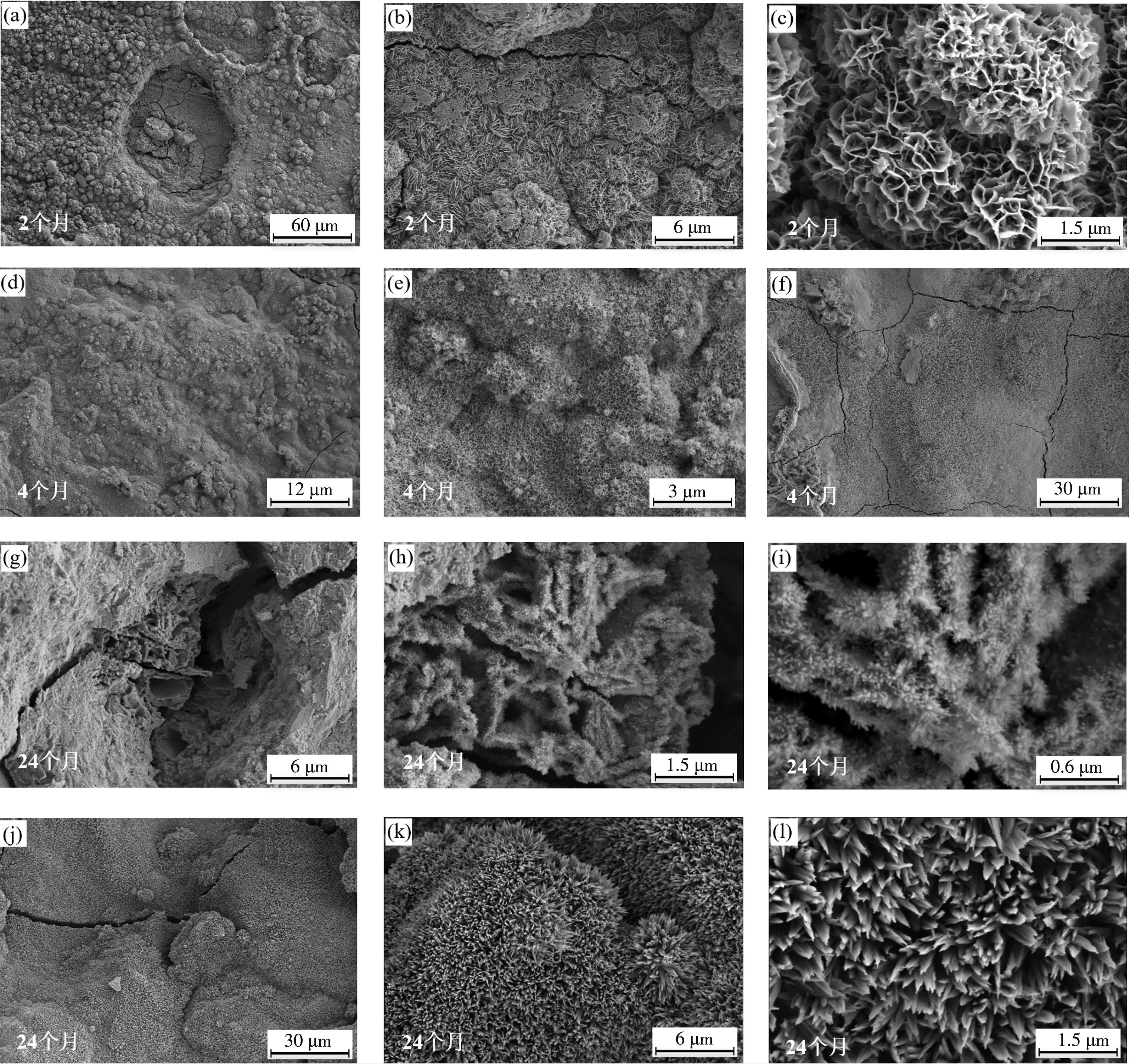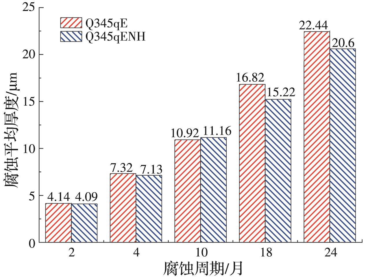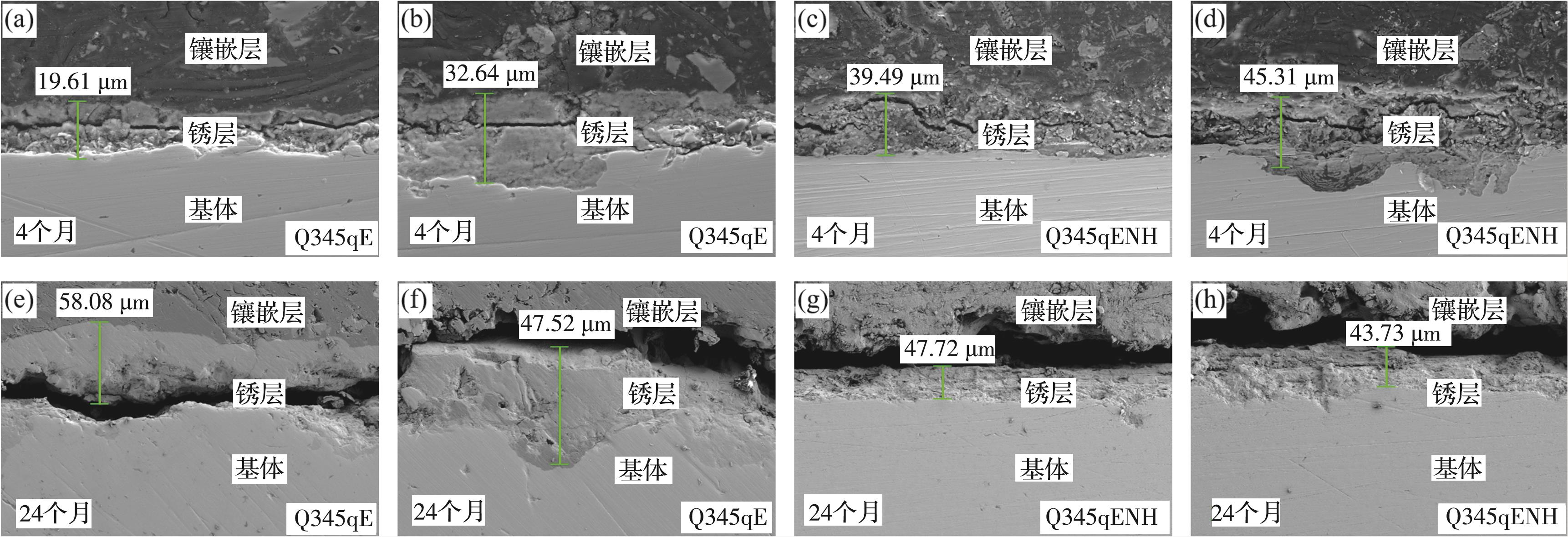 摘要:耐候钢适用于高海拔寒区等严酷环境地区的桥梁建设,但当前耐候钢在高海拔寒区的耐腐蚀机制不明确。为探究高海拔寒区桥梁耐候钢的耐蚀机制,以典型桥梁耐候钢和普通钢为研究对象,针对典型的高海拔寒区环境,开展桥梁钢的原位腐蚀试验,以探究耐候钢在高海拔寒区应用的可行性。首先依据规范设计20个原位腐蚀试样,开展腐蚀周期为2、4、10、18、24个月的原位腐蚀试验;结合腐蚀失重数据、锈层宏观形貌、锈层微观形貌及元素沿锈层的分布规律,对耐候钢在高海拔寒区的耐蚀机制进行分析。结果表明:两种试件在康定大气环境下的腐蚀失厚量在腐蚀周期为10个月前基本一致;在腐蚀周期为24个月时,耐候钢的腐蚀失厚量比普通碳钢低约10%;耐候钢锈蚀产物中形成的针铁矿阻碍了氧气、水分等向锈层内聚集,阻止了其腐蚀;腐蚀过程中,Cr在耐候钢内锈层富集,导致内锈层在后续腐蚀中越发致密,进一步增强了耐腐蚀性能。