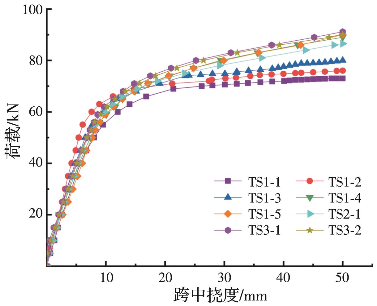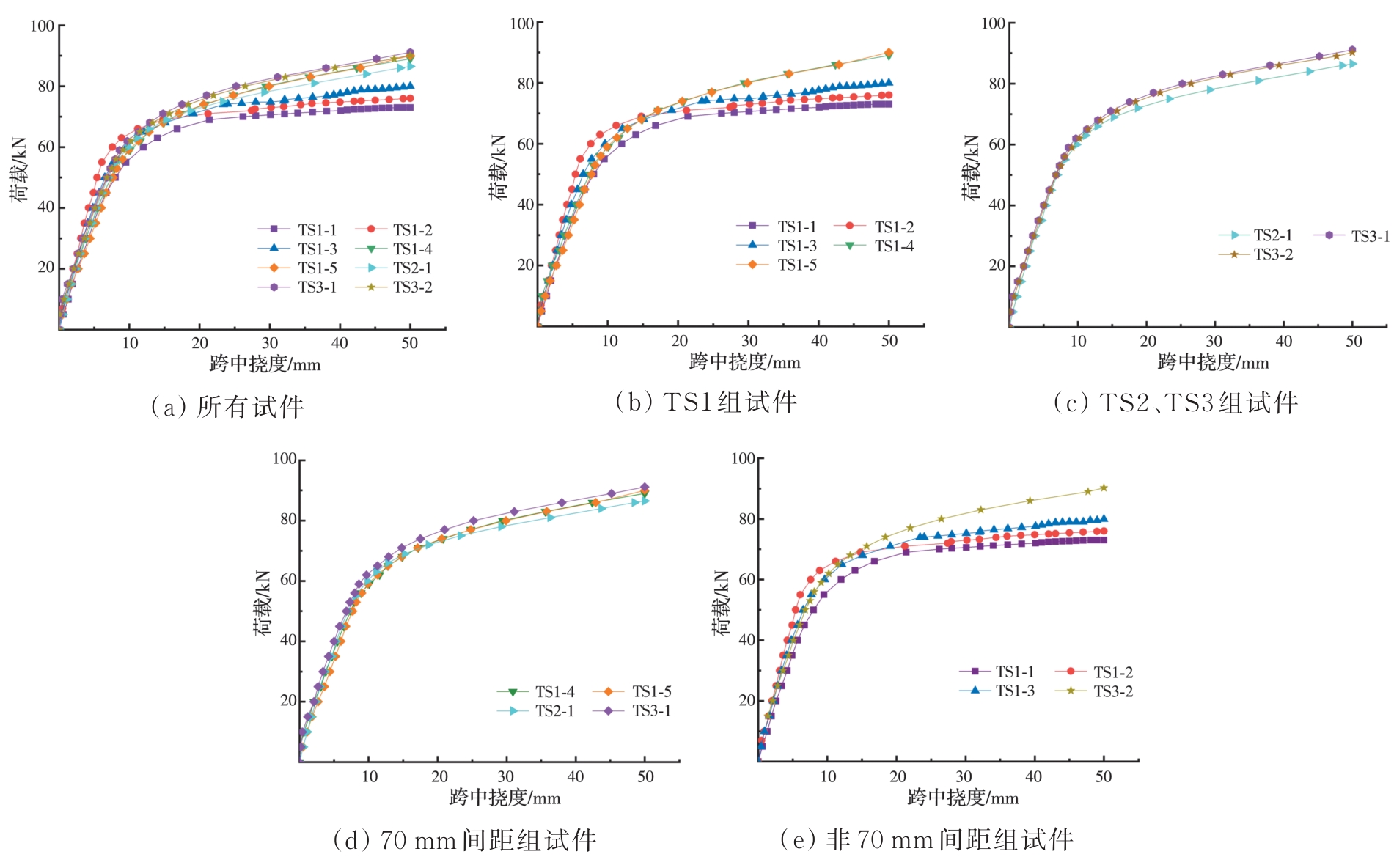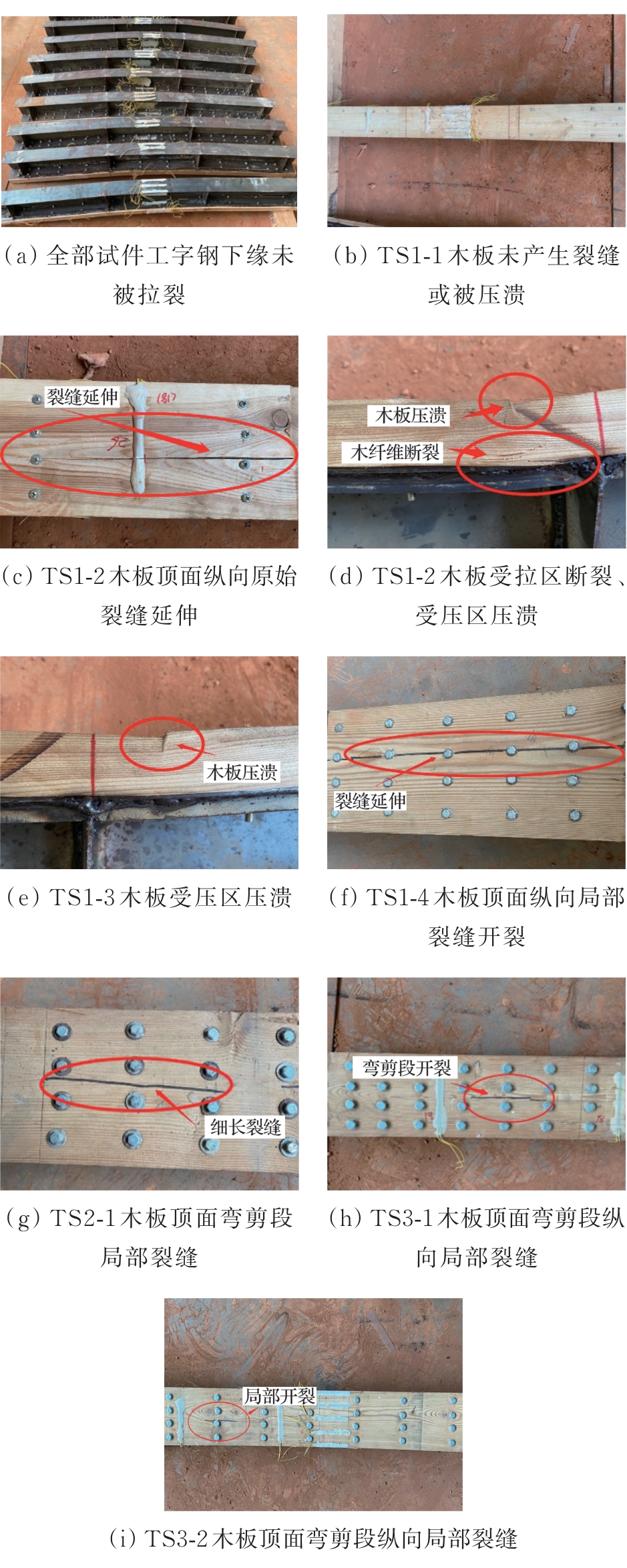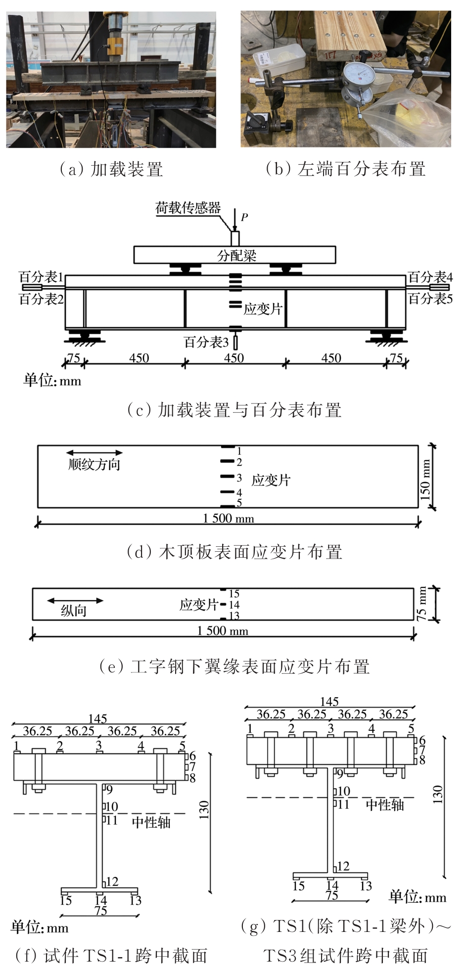 摘要:为推广直径10 mm以内的螺栓紧固件在钢-木组合结构中的应用,研究了螺栓的横向排数、直径和纵向间距对钢-木组合梁弯曲性能的影响。通过设计一种下部为工字钢梁、上部为木板、上下部由螺栓连接的组合梁,对8根试验梁进行三分点弯曲荷载试验,分别观察其破坏模式、跨中挠度变化、跨中截面应变和梁端部钢-木交界面滑移效应,分析不同螺栓参数对钢-木组合梁抗弯力学性能的影响。结果表明,钢-木组合梁的主要破坏模式为:组合梁跨中挠度达到跨度的1/27时,发生变形破坏;组合梁具有较大的抗弯承载力与位移延性系数,各试件钢-木交界面最大相对滑移为2~6 mm;螺栓布置参数中,螺栓纵向间距对组合梁跨中钢-木交界面的应变差影响最大,螺栓直径的影响较小;提出了钢-木组合梁螺栓面积比的概念,即螺栓总面积与木板受压面积的比值,随着螺栓面积比的增加,位移延性系数减小,但试件抗弯承载力明显增长,交界面最大滑移逐步减小。通过合理的螺栓面积比范围能快速计算出螺栓的用量范围,为此类钢-木组合梁的实际应用提供设计参考。