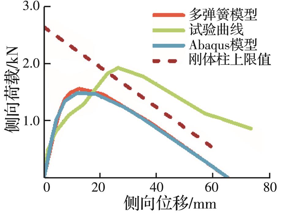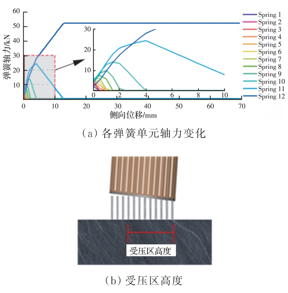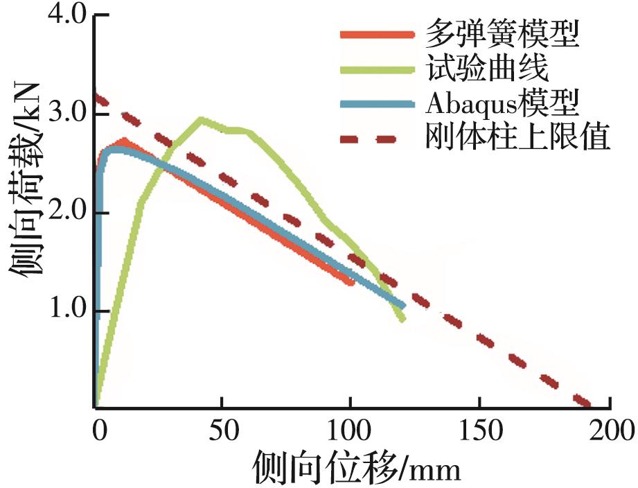 摘要:浮搁是传统木结构中柱脚的典型构造形式,在水平荷载作用下木柱易出现摇摆现象。木柱的摇摆行为表明浮搁柱脚节点具有半刚性特征,对木结构抵抗侧向荷载和维持整体稳定性具有重要作用。提出一种摇摆木柱柱脚节点的建模方法,通过在柱脚布置一排轴向弹簧,以模拟柱底-础石接触界面的受力状态。基于OpenSees平台建立对应数值模型,通过与精细化有限元模型及大量相关文献中的试验数据进行对比,验证该建模方法的有效性。同时,对影响该建模方法的部分因素进行分析,包括柱脚弹簧接触刚度、分布模式、弹簧数量及材料本构。结果表明,该建模方法对接触刚度相对不敏感,建议木柱计算受压深度为木柱半径,以确定各弹簧单元接触刚度;3种分布模式均适用于该建模方法,弹簧单元的数量应不少于10个;对于高轴压比木柱,在建模过程中应采用考虑弹簧单元进入塑性的ElasticPP材料结构。