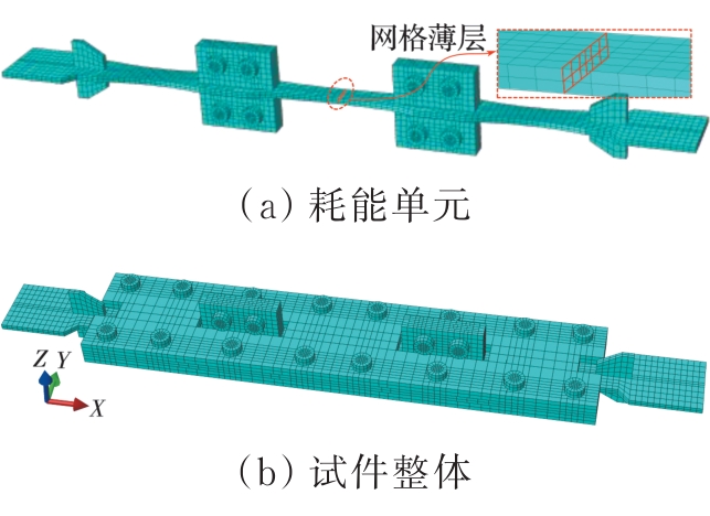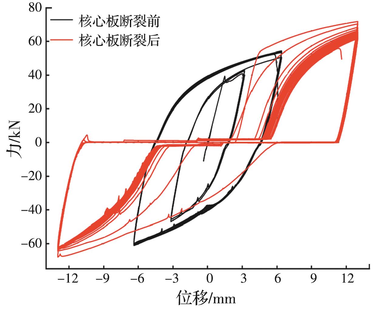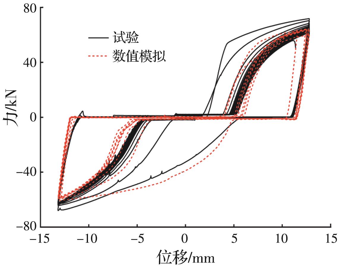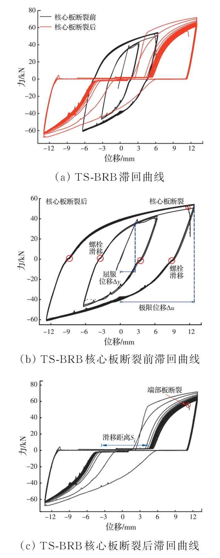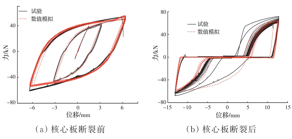 摘要:为提升传统屈曲约束支撑的性能,特别是解决传统阻尼器在主震-余震型地震作用下发生断裂后无法为结构提供抗侧刚度和耗能能力的问题,提出一种新型两阶段屈曲约束支撑(two-stage buckling-restrained brace,TS-BRB)。TS-BRB的耗能单元由3个横截面沿纵向渐变的Q235钢板串联组成,中部的耗能段在地震中首先发挥耗能作用,若该段发生断裂,约束单元中的限位卡槽能够确保端部耗能段继续工作,从而使TS-BRB具备较传统BRB更高的耗能能力。TS-BRB的滑移距离通过调整限位卡槽的长度来限制,从而满足结构减震设计的使用需求。结果表明:该阻尼器的滞回曲线饱满,形状符合理论预期;TS-BRB具有明显的二阶段耗能特性,耗能单元的端部耗能段在中间耗能段断裂后能继续工作,断裂后的附加累计耗能为断裂前的138.41%。TS-BRB解决了传统BRB在断裂后随即失去承载和耗能能力的问题,能为结构提供更大的耗能储备。用ABAQUS建立实体单元数值模型,发现模拟与试验的滞回曲线吻合较好。