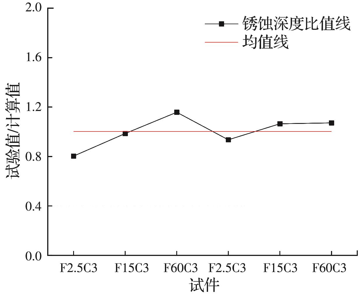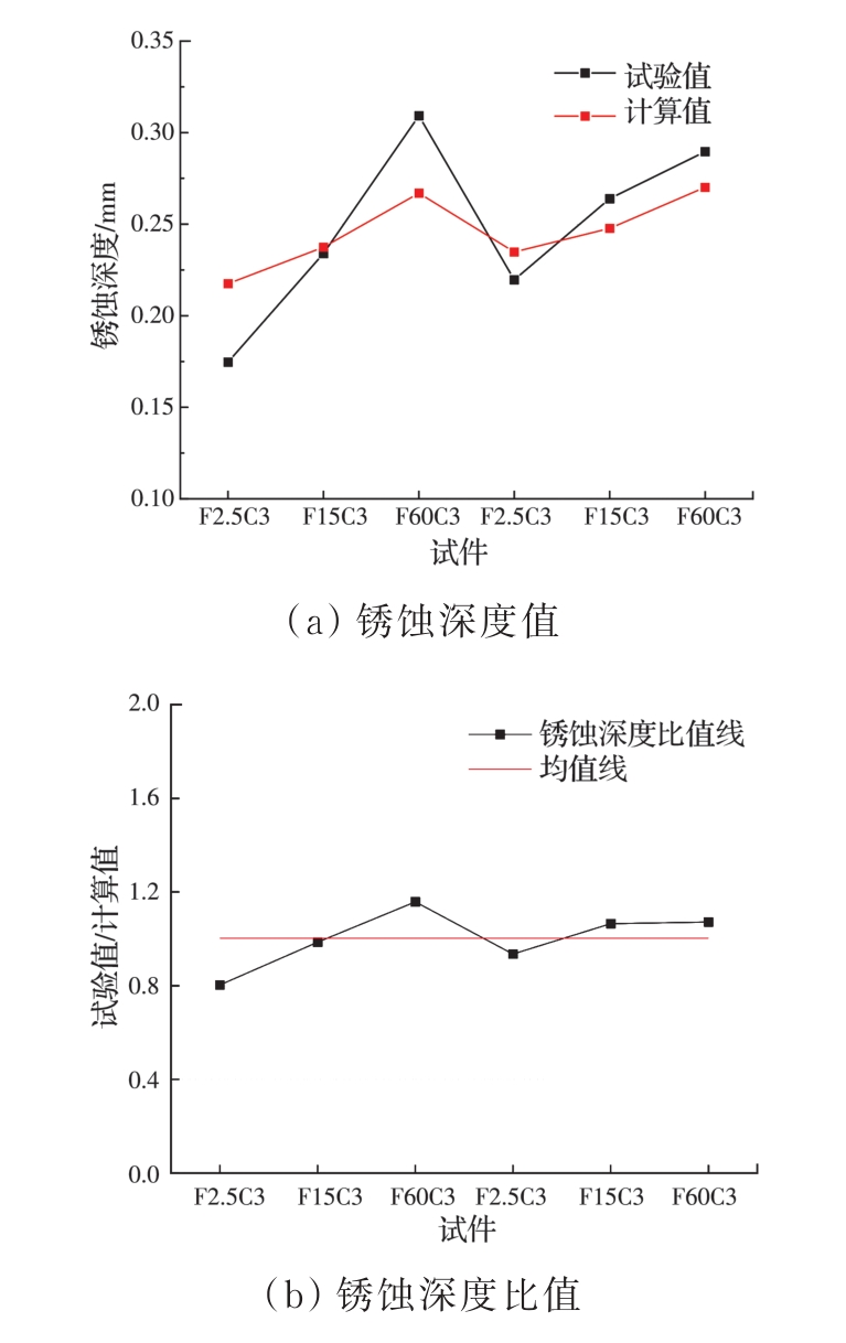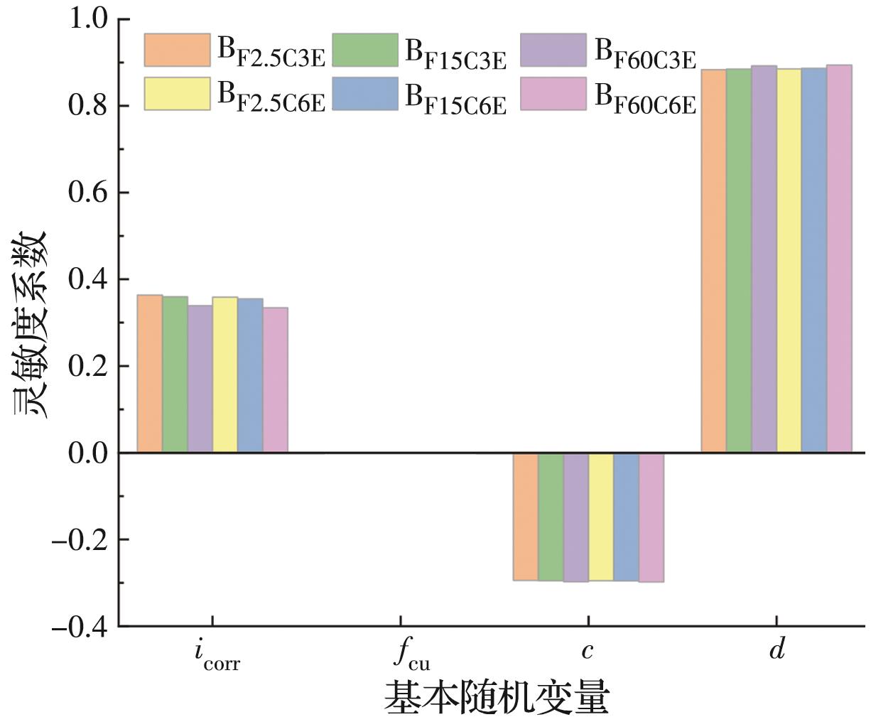 摘要:为了探究损伤混凝土梁的耐久性能退化规律,通过引入疲劳损伤因子和徐变损伤因子,建立含疲劳和徐变损伤混凝土梁保护层锈胀开裂后钢筋锈蚀深度的计算模型,并根据《混凝土结构耐久性设计标准》建立由锈胀裂缝宽度控制的耐久性极限状态方程。运用Monte-Carlo数值模拟方法计算6根混凝土试验梁在裂缝宽度限值范围内的可靠度;采用验算点法计算腐蚀电流密度、混凝土抗压强度、保护层厚度和钢筋直径等4项参数的灵敏度。结果表明:随着锈蚀时间的增加,可靠度从0.9下降到0.1,并且在60%疲劳寿命次数的循环荷载作用后,持荷时间增加3个月对梁的可靠度影响较小;保护层厚度的增加和钢筋直径的减小均能提高梁的可靠度,减缓结构可靠度在钢筋锈蚀前期的下降速度,8 mm的钢筋直径可以作为损伤混凝土梁耐久性设计的参照值;腐蚀电流密度、保护层厚度和钢筋直径3个参数的灵敏度较大,因此,这3个参数是耐久性极限状态可靠度的主要影响因素。