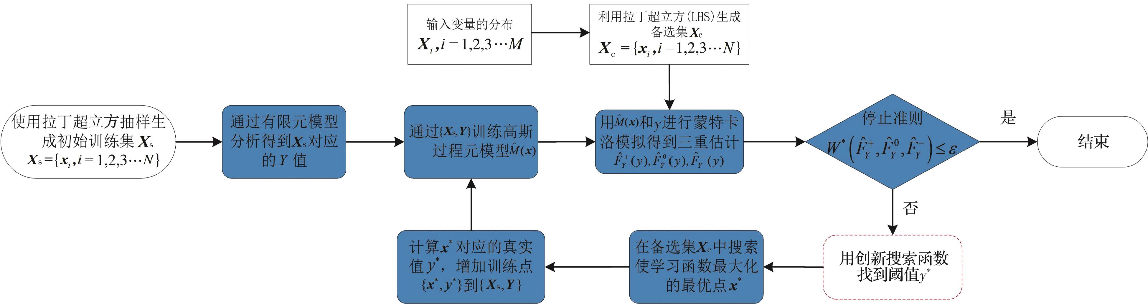 摘要:一些重大关键结构在服役期间会面临极端事件,由于极端事件发生的概率极低而可能被忽视,但如果发生将会导致严重损失。为了准确估计复杂结构的极小失效概率,提出一个能平衡极端事件发生概率计算精度和成本的方法。通过基于高斯代理模型的主动学习策略,构建能将训练点有效集中在单侧尾部的搜索函数,该函数更善于寻找分布函数加权后的误差最大区域,并重新投入新增训练点。为了验证算法的有效性,以结构开裂非线性分析为算例,将算法结果与MCS进行比较,估计的随机变量均值相对误差在10%左右,表明该方法能得到可接受的统计量结果;与AL-GP的结果进行对比,估计的随机变量误差期望降低了20%,表明在尾部的不确定性能更快降低。通过算例证明了算法对尾部的敏感性更高,适用于有潜在尾部风险的分布计算。
