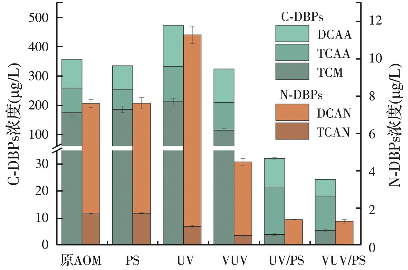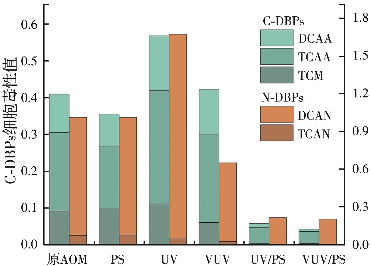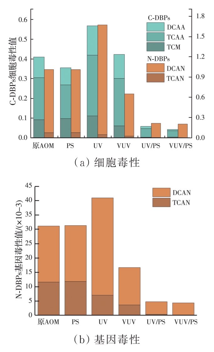 摘要:在饮用水源受蓝藻水华影响期间,藻类代谢会产生大量藻类有机物(AOM),AOM易与氯消毒剂反应生成消毒副产物(DBPs),对供水水质和饮用水安全构成威胁。以紫外(UV)、真空紫外(VUV)、过硫酸盐(PS)和紫外/过硫酸盐(UV/PS)等工艺为对照组,探究真空紫外/过硫酸盐(VUV/PS)工艺去除AOM和减少DBPs生成的效能与机理。结果表明,VUV/PS工艺去除AOM的效能优于对照工艺,DOC和UV254的去除率分别达74.7%、70.7%,荧光有机物的去除率也超过82.2%。此外,AOM的去除效果随PS投加量的增加和溶液初始pH值的降低而增强。自由基探针实验进一步证实,VUV/PS工艺中的主要活性氧化物种(ROS)为羟基自由基和硫酸根自由基,测得二者的稳态浓度分别为4.78×10-13、1.51×10-11 mol/L。VUV/PS工艺通过VUV光解与ROS的氧化作用共同实现了AOM的高效去除,且VUV有效促进了ROS的生成与转化。在后续氯消毒过程中,经过VUV/PS处理的AOM所生成的DBPs总量及其理论毒性显著下降。VUV/PS工艺在富含AOM的水源水处理中有广阔的应用前景。
