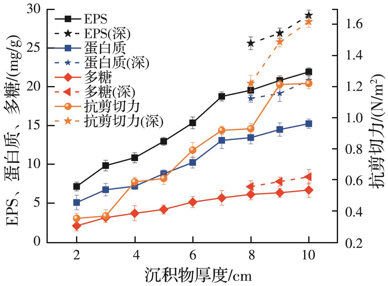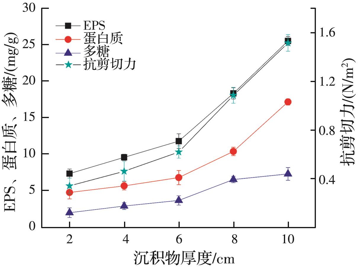 摘要:城市排水系统中沉积物的大量存在会导致管道堵塞和雨天溢流污染。超声波作为一种清洁的物理处理方法可能破坏沉积物的稳定性,从而在旱季去除沉积物,以维护下水道功能。为探寻超声技术用于实际清淤的可行性和最佳处理工况,设计正交实验探究超声清淤效果以及5个关键因素对超声清淤的影响。结果表明,超声处理后管道淤积大大改善,处理后沉积物的抗剪切力降低至对照组的26.4%~91.5%,管道沉积物中具有黏附作用的胞外聚合物(EPS)大量分解。相关性分析表明,EPS破坏是沉积物抗冲刷性能降低的重要原因。5个关键因素对超声清淤的影响程度排序为:超声电功率>探头距泥面距离>作用时间>沉积物厚度>超声频率。超声清淤的最优工况为:功率220 W、频率50 kHz、处理时间200 s、距离泥面3 cm。探究了清淤效果随沉积物厚度的变化情况,发现超声清淤对厚度不大于7 cm的沉积物有良好作用效果,超出该范围后明显衰减,并在此基础上进一步探究了超声作用后沉积物沿深度方向的性质变化情况。