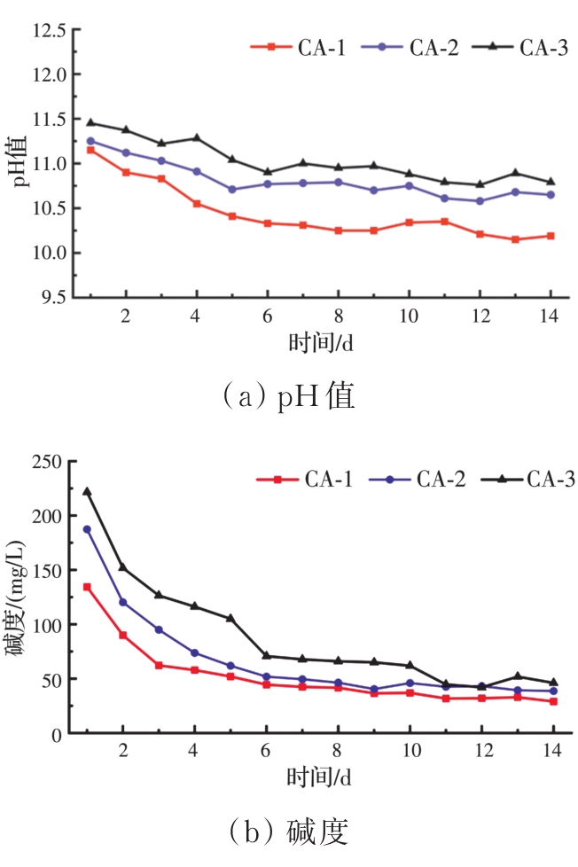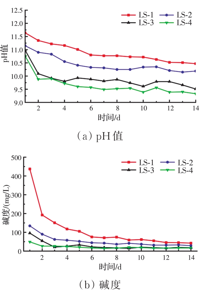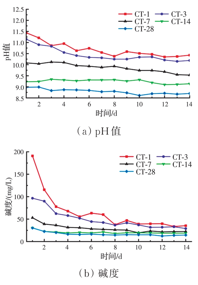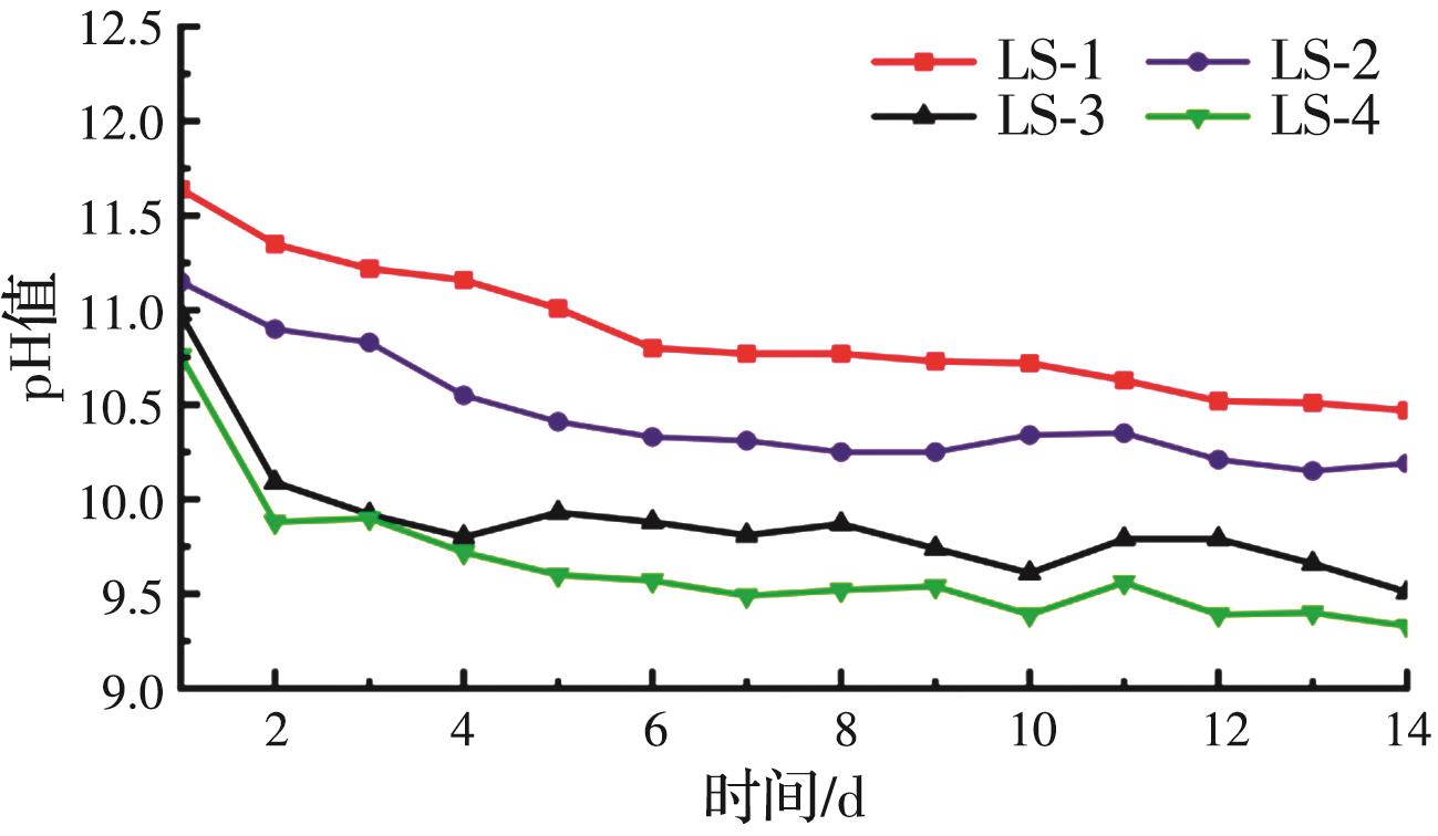 摘要:排水清污分流是减少隧道施工污水排放的重要措施。隧道喷射混凝土在未稳定前的浸出物质会影响排水水质,研究其稳定过程中浸出物对水质的影响规律对实现清污分流的精准实施具有重要意义。通过静态及动态试验对混凝土浸出物组分及浸出规律进行系统研究,静态试验结果表明:与新浇筑混凝土接触后,水体中碱性物质的大量释放导致水质pH值迅速上升,是影响水质的重要污染因子;动态试验结果表明:混凝土养护时间、水固比(L/S)、混凝土与水体的接触面积等均对接触水样的水质有影响。混凝土养护时间小于3 d时,其内部的Ca(OH)2晶体未被C-S-H凝胶固化,容易持续析出,导致接触水样pH值超标;随着养护时间的增加,碱性物质的浸出率大幅降低,当养护时间达28 d时,浸出液的pH值降至9以下,可以满足污水综合排放要求。L/S较低时,浸出物质对水样的pH值和碱度影响较大,当L/S超过40∶1时,浸出物质对水样水质影响不显著。与水样的接触面积越大,混凝土中的碱性物质更易溶解析出,对水质的pH值和碱度影响更为显著。