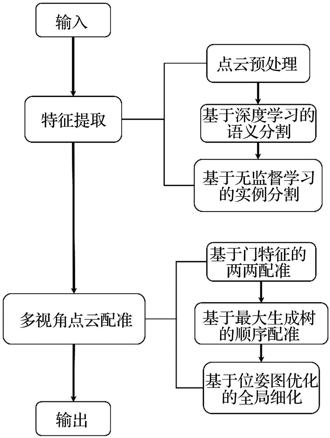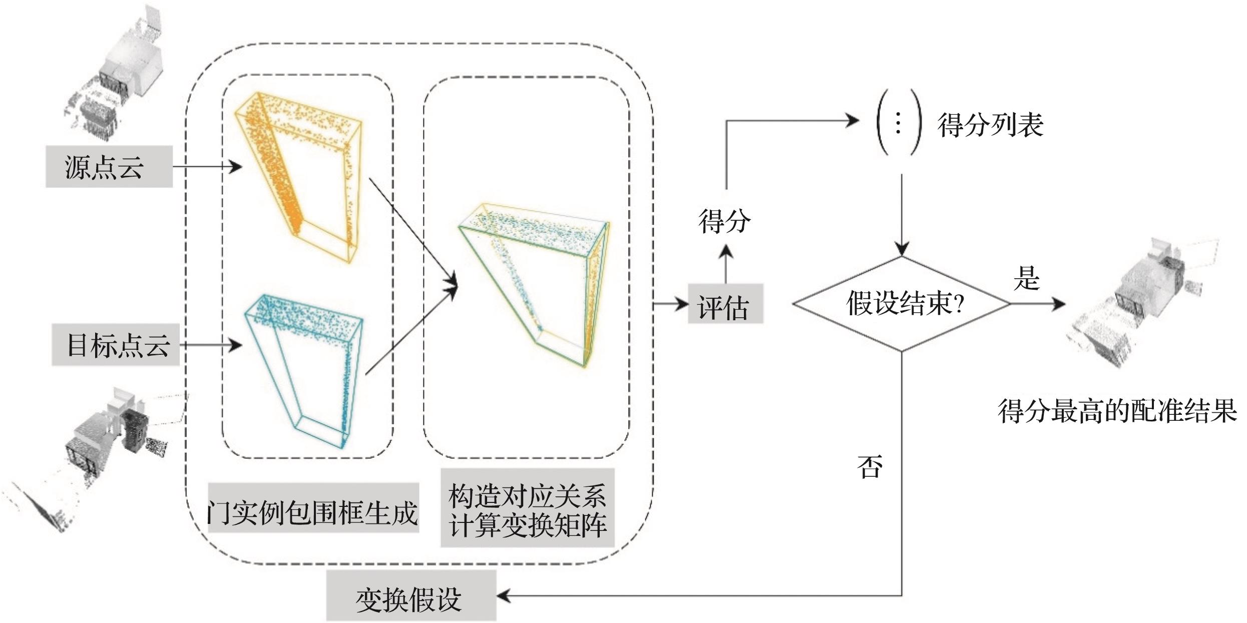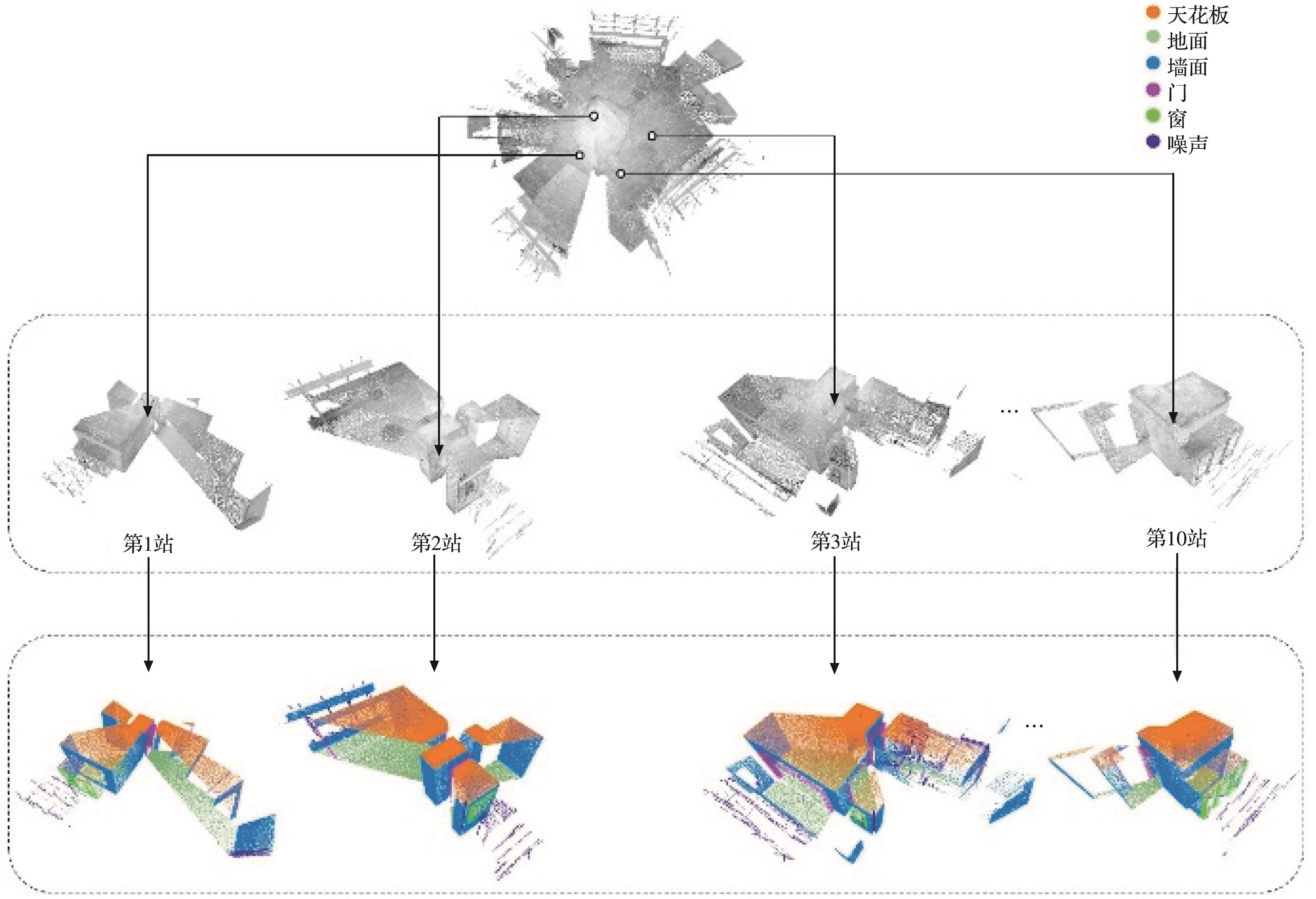 摘要:尺寸质量检测是成品房屋交付前的必要步骤,但传统人工检测方法耗时费力。随着利用陆地激光扫描仪进行自动化尺寸质量检测得到更多关注,室内多视角点云自动化配准变得更加重要。在室内布置标靶的效率偏低,且成品房屋室内有大量重复结构,不适合仅依赖自然几何基元或俯视图进行无标靶配准,提出一种基于深度学习的室内多视角点云自动化配准方法:利用PointAF神经网络对扫描点云数据进行语义分割,再进行实例分割,得到不同结构的点云实例;利用门实例进行两两配准,计算变换参数,通过基于重叠置信度和冲突约束的评价函数去除错误匹配,并使用基于生成树的顺序配准方法完成多视角配准。在验证和对比实验中,利用2套成品房屋共21站扫描点云数据,验证了所提方法的有效性和精度。