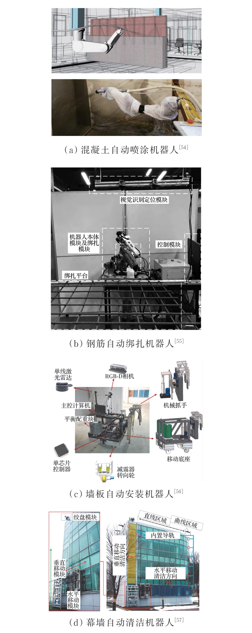 摘要:建筑业高度依赖人工操作,是典型的劳动密集型产业,但建筑业正面临着日益严重的安全管理压力和劳动力短缺问题。建筑机器人的使用能有效缓解这些问题,避免从业人员直接参与危险繁重的施工作业,提高施工现场的自动化与管理水平。然而,现阶段建筑机器人的自主化水平有限,自动化的建造方式难以覆盖建筑业生产活动的每一种工艺,这决定了未来的智能建造将长期高度依赖人机协作的生产模式。梳理建筑机器人技术基础和研究前沿,回顾新一代智能建筑机器人发展历程,结合施工场景特点,总结出4类典型人机协作模式:操作员控制模式强调人工主导的实时交互、指挥员执行模式通过远程指令实现高风险任务自动化、协作员互助模式结合机器高效性与人工灵活性、人体增强模式通过外骨骼机器人提升工人作业能力。指出当前建筑机器人仍面临环境适应性不足、通信稳定性差、跨平台协同困难等挑战,并对未来应重点关注的研究方向提出建议。