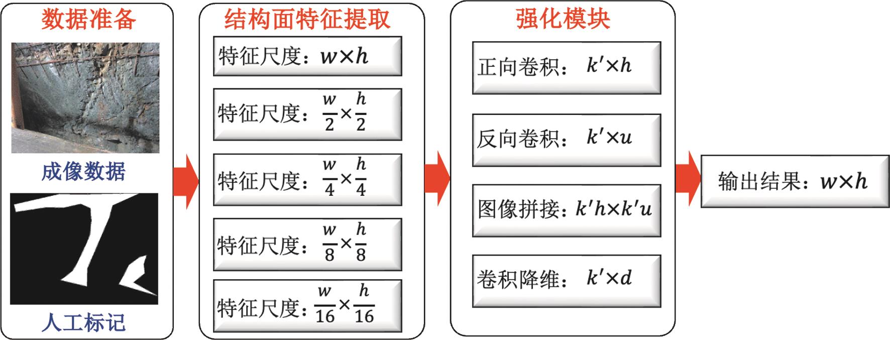 摘要:围岩结构面是影响全断面岩石隧道掘进机(TBM)的掘进效率与安全性的关键地质因素之一,探索快速、准确、环境适应性强的TBM隧道围岩结构面识别方法具有重要意义。提出一种基于多目视觉摄像与图像识别技术的围岩结构面识别方法。采用双目相机,通过固定机位拍摄大面积裸露围岩的彩色与深度图像,根据双目相机位置与拍摄角度等参数,修正深度图像,以克服图像畸变问题;采用精细边界刻画(CED)方法对围岩结构面精细识别。该方法在传统卷积神经网络基础上增设了图像数据的正向传播与反向细化双路径,在反向细化路径中不断强化对图像局部边界的捕捉,捕捉图像中结构面与常规围岩像素的差异,进而刻画围岩结构面边界。依托青岛地铁6号线TBM施工隧道,采集427组现场围岩的彩色与深度图像,通过对比模型识别以及结构面的实际形态,进一步验证方法的准确性。