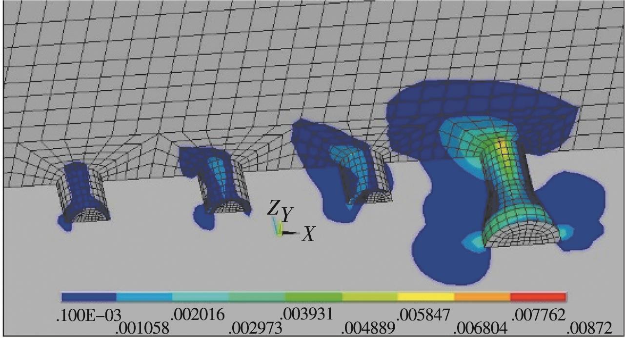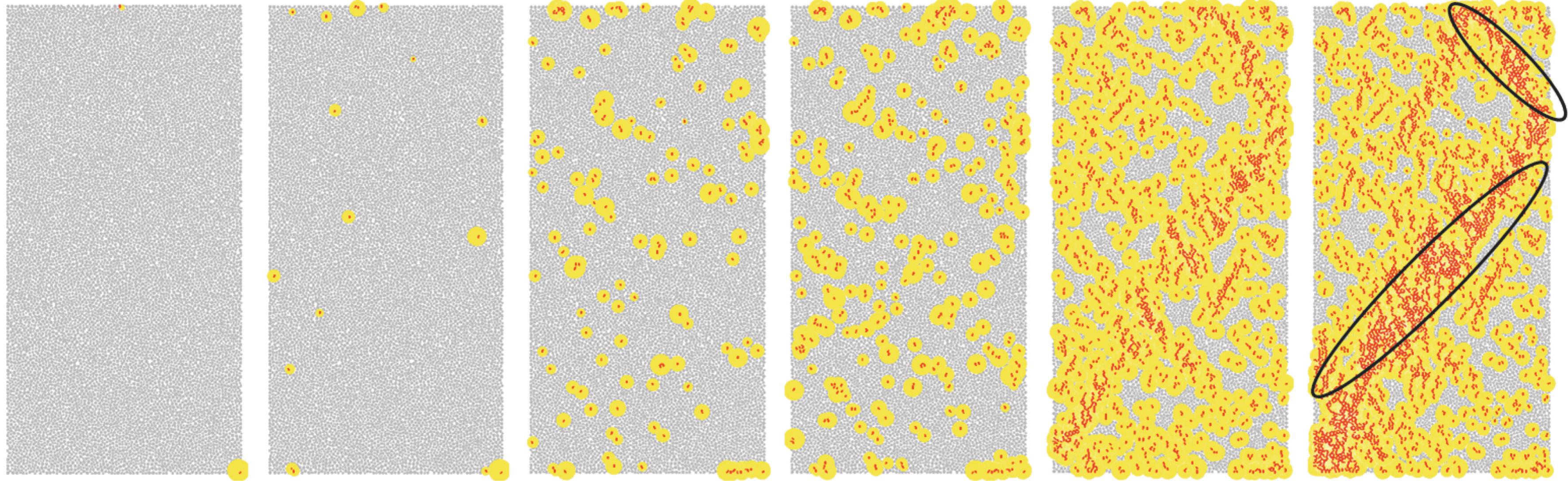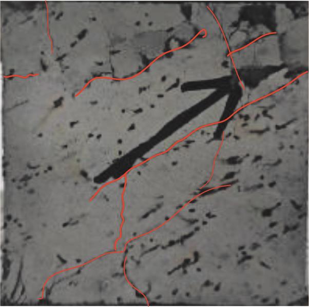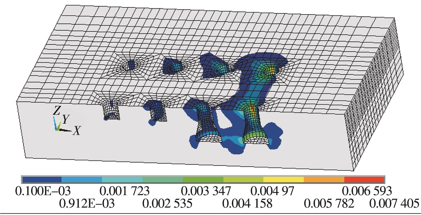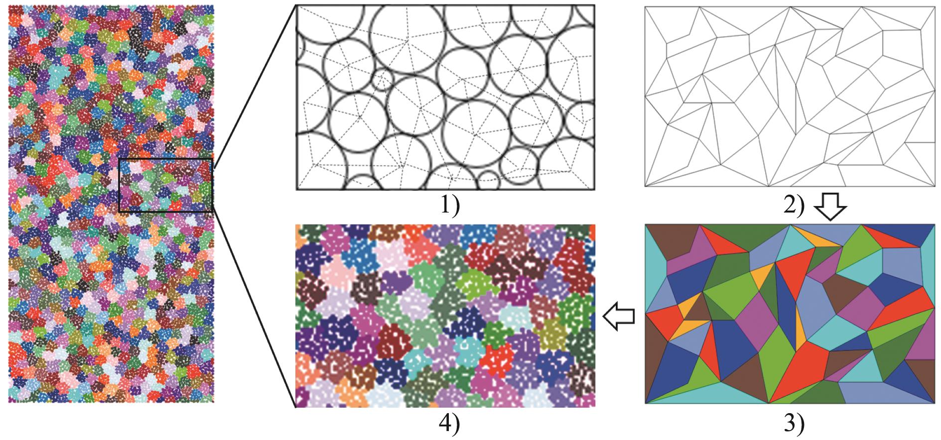 摘要:为了揭示三轴压缩下砂岩的细观破裂规律,以砂岩室内三轴压缩试验为基础,结合非均质晶质模型(grain-based model, GBM)和矩张量理论模拟砂岩内部裂纹衍生、声发射事件及破裂强度发展特征,推导砂岩内微裂纹衍生过程、声发射响应特征规律,从细观尺度上综合分析裂纹以及声发射事件的时空演化过程。结果表明:在三轴压缩下,砂岩起裂阶段微裂纹在试样内部随机分布,位移场呈水平层状分布;随着载荷的增加,微裂纹增多,并逐渐贯通成两条宏观裂纹,位移场偏移且非均质性明显;裂纹在孕育期发展缓慢,当达到发展期时,裂纹以极高的非线性速率增长,其发展顺序为晶间拉伸裂纹、晶间剪切裂纹、晶内拉伸裂纹、晶内剪切裂纹;试样内部拉伸裂纹占比达83.2%,以拉伸破坏为主;试样声发射事件数与裂纹条数呈负指数关系,单次声发射事件产生一条微裂纹次数占比为75.60%,声发射事件数、微裂纹数与破裂强度近似呈正态分布。