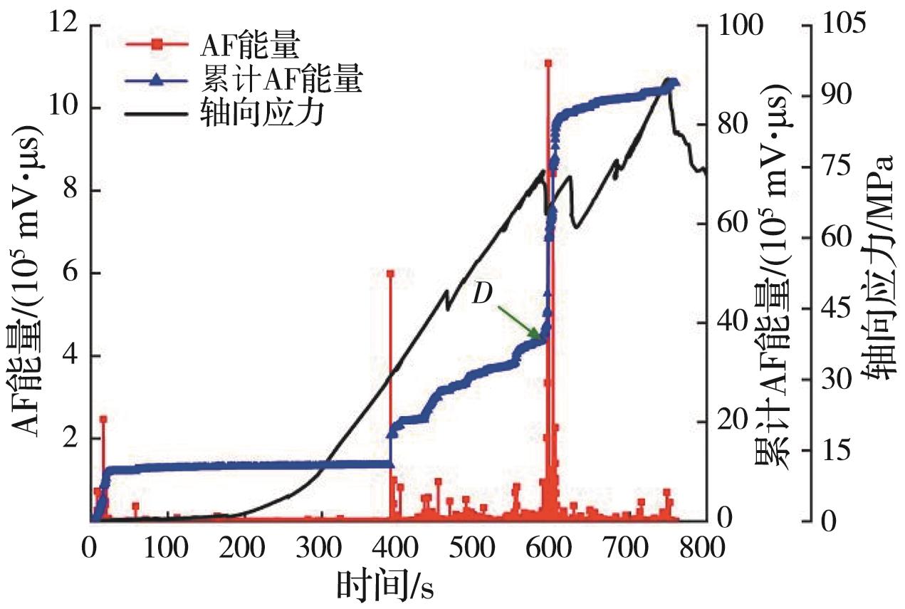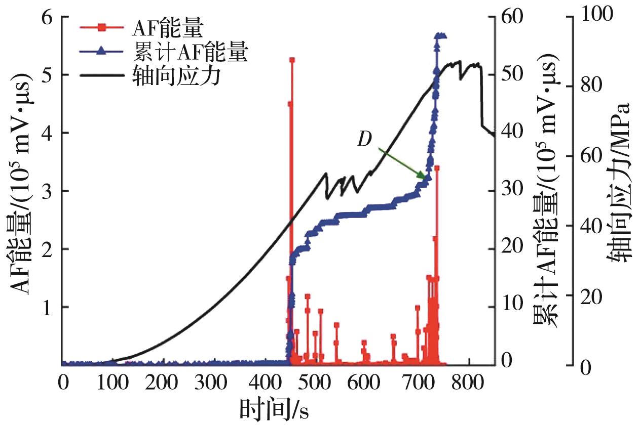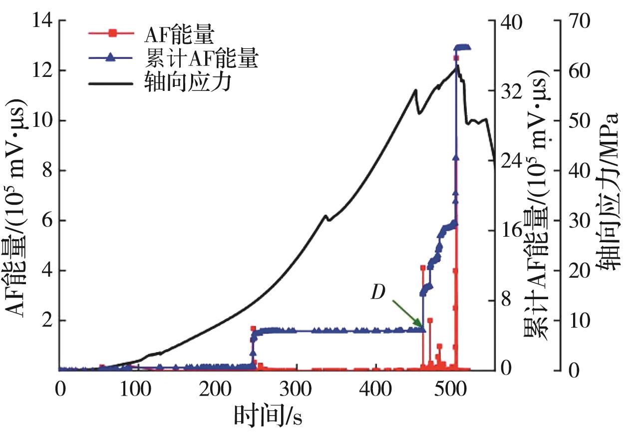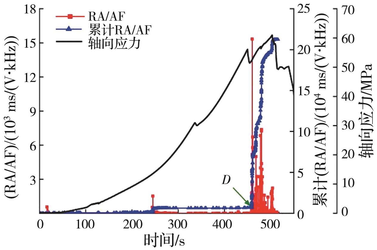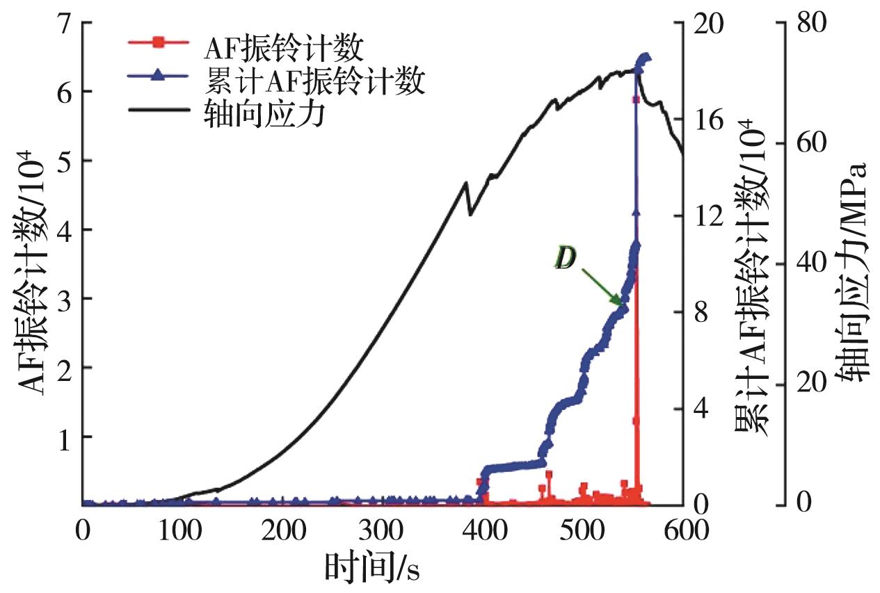 摘要:岩石的裂隙孔洞等缺陷极易引发其局部破坏,对施工安全与运营维护产生不利影响。利用岩石力学测试系统对不同岩桥长度的双圆孔洞凝灰岩进行单轴压缩试验,配合声发射(acoustic emission,简称AE)监测系统对试验全过程进行声发射监测,进行岩石变形破坏过程的声发射特征研究。基于声发射能量、振铃计数、上升时间与幅值的比值(RA)/振铃计数与持续时间的比值(AF)、b值等特征参数,分析不同岩桥长度对岩石破坏的影响,并对其损伤演化特征的前兆信息进行探索。结果表明:声发射参数随时间呈阶段性变化,岩石失稳破坏前有明显异常响应特征;随着岩桥长度的增加,AE能量由群震型向孤震型转变,AE振铃计数经历了平静期、活跃期和突增区,AE RA/AF值对局部细小裂纹扩展较敏感,AE b值随时间经历了上升期、波动期及下降期,总体呈减小趋势;声发射各参数均存在岩石破坏前兆,将AE累计能量、AE累计振铃计数、AE累计RA/AF值的突增点和AE b值的最低点作为“临界破坏前兆点”D,预警时效序列为:AE累计RA/AF值>AE累计振铃计数>AE累计能量>AE b值。