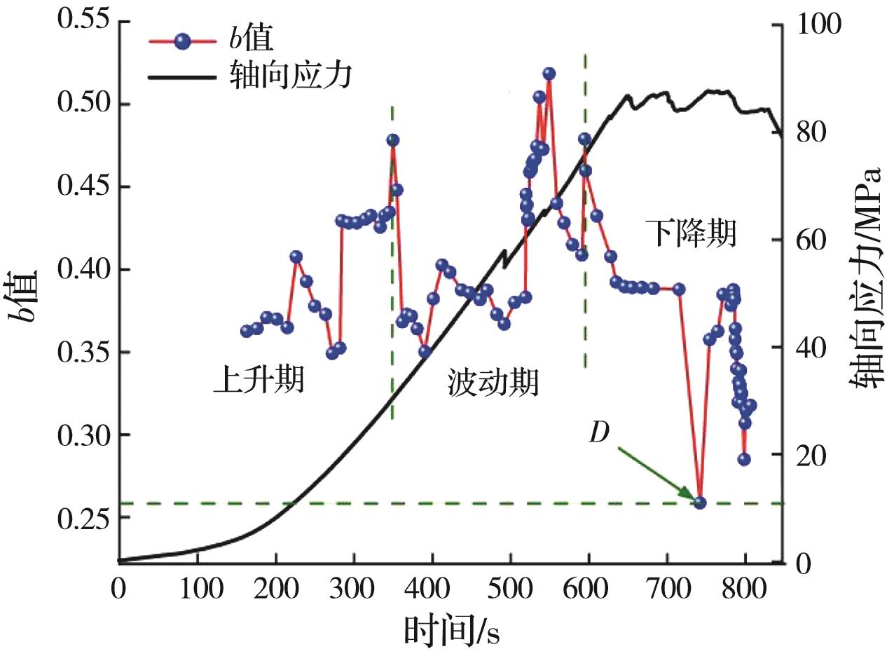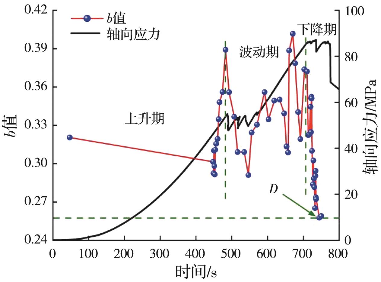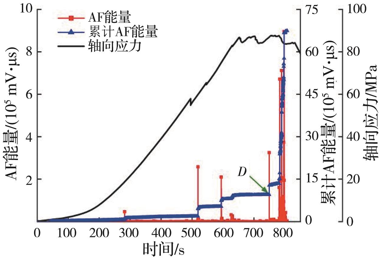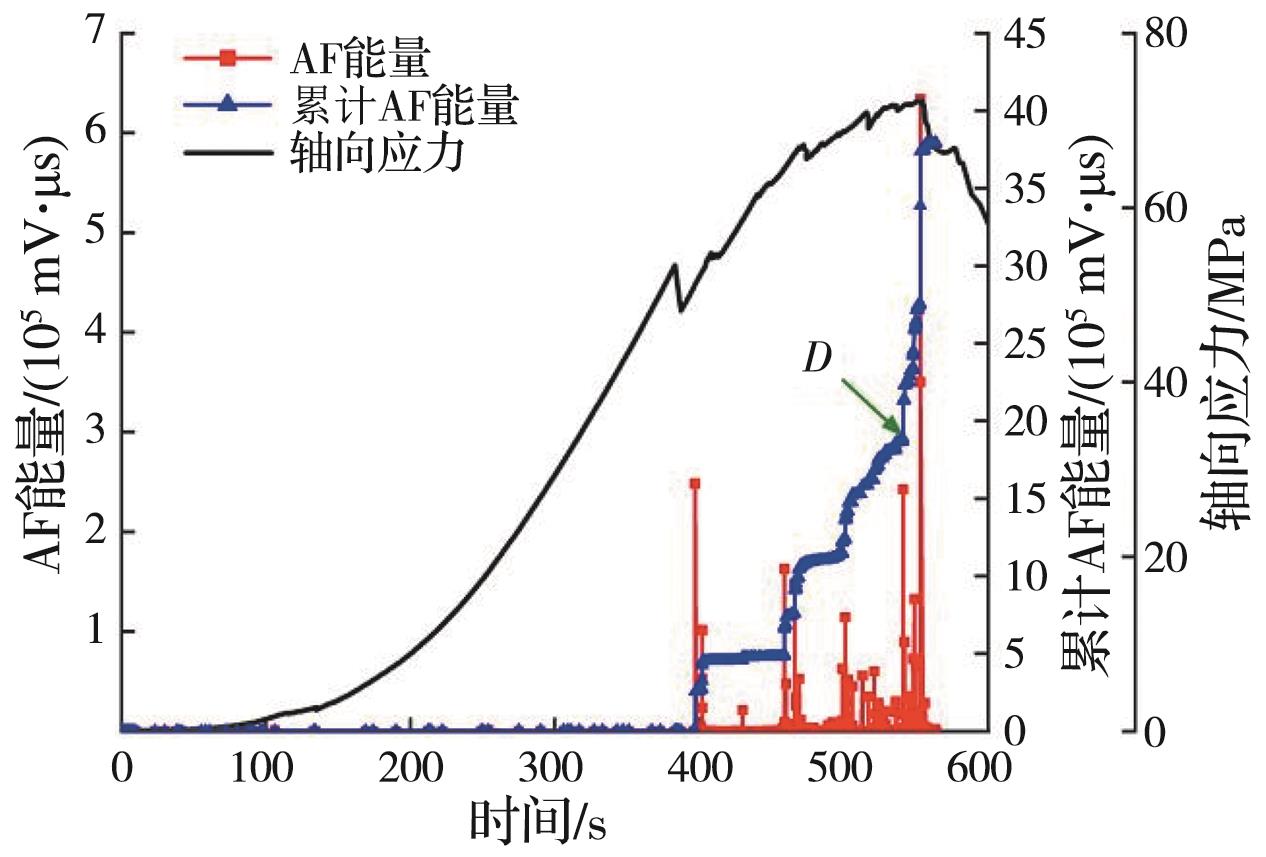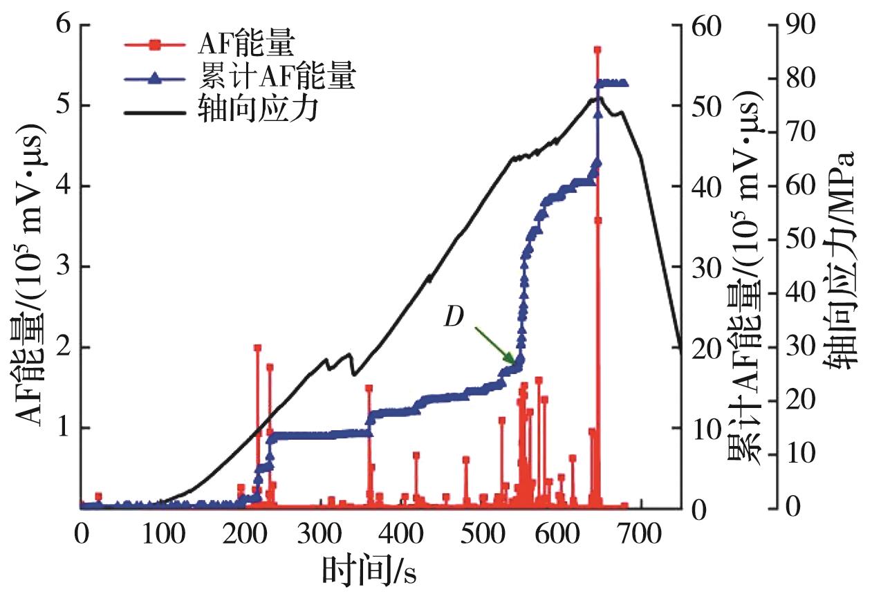 摘要:岩石的裂隙孔洞等缺陷极易引发其局部破坏,对施工安全与运营维护产生不利影响。利用岩石力学测试系统对不同岩桥长度的双圆孔洞凝灰岩进行单轴压缩试验,配合声发射(acoustic emission,简称AE)监测系统对试验全过程进行声发射监测,进行岩石变形破坏过程的声发射特征研究。基于声发射能量、振铃计数、上升时间与幅值的比值(RA)/振铃计数与持续时间的比值(AF)、b值等特征参数,分析不同岩桥长度对岩石破坏的影响,并对其损伤演化特征的前兆信息进行探索。结果表明:声发射参数随时间呈阶段性变化,岩石失稳破坏前有明显异常响应特征;随着岩桥长度的增加,AE能量由群震型向孤震型转变,AE振铃计数经历了平静期、活跃期和突增区,AE RA/AF值对局部细小裂纹扩展较敏感,AE b值随时间经历了上升期、波动期及下降期,总体呈减小趋势;声发射各参数均存在岩石破坏前兆,将AE累计能量、AE累计振铃计数、AE累计RA/AF值的突增点和AE b值的最低点作为“临界破坏前兆点”D,预警时效序列为:AE累计RA/AF值>AE累计振铃计数>AE累计能量>AE b值。