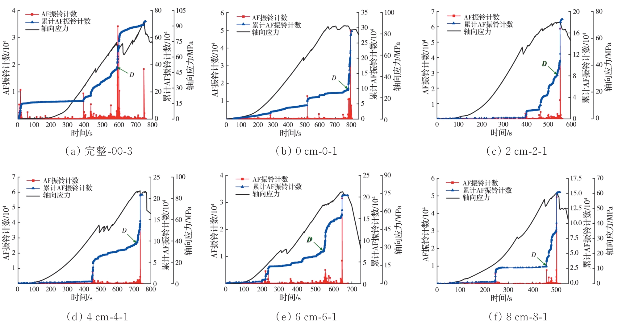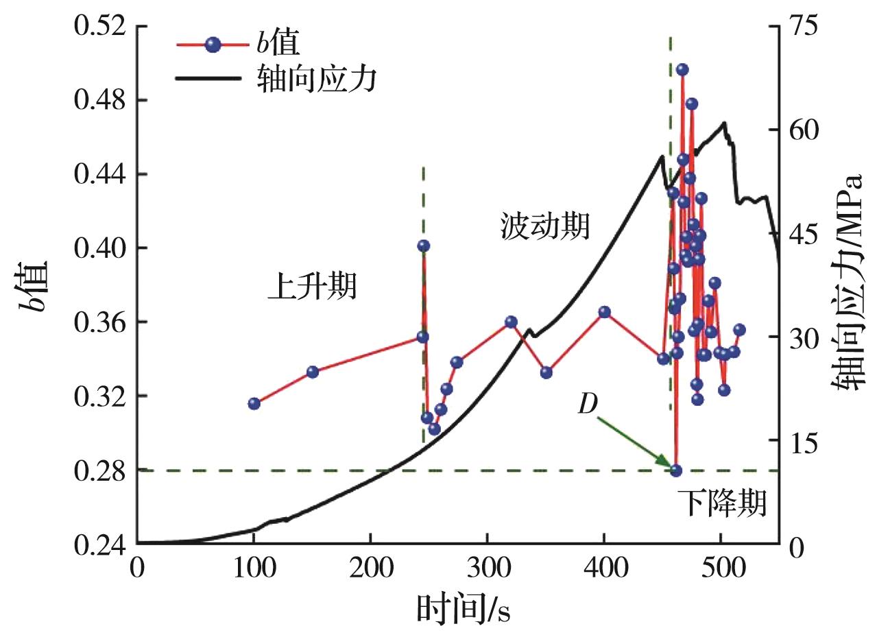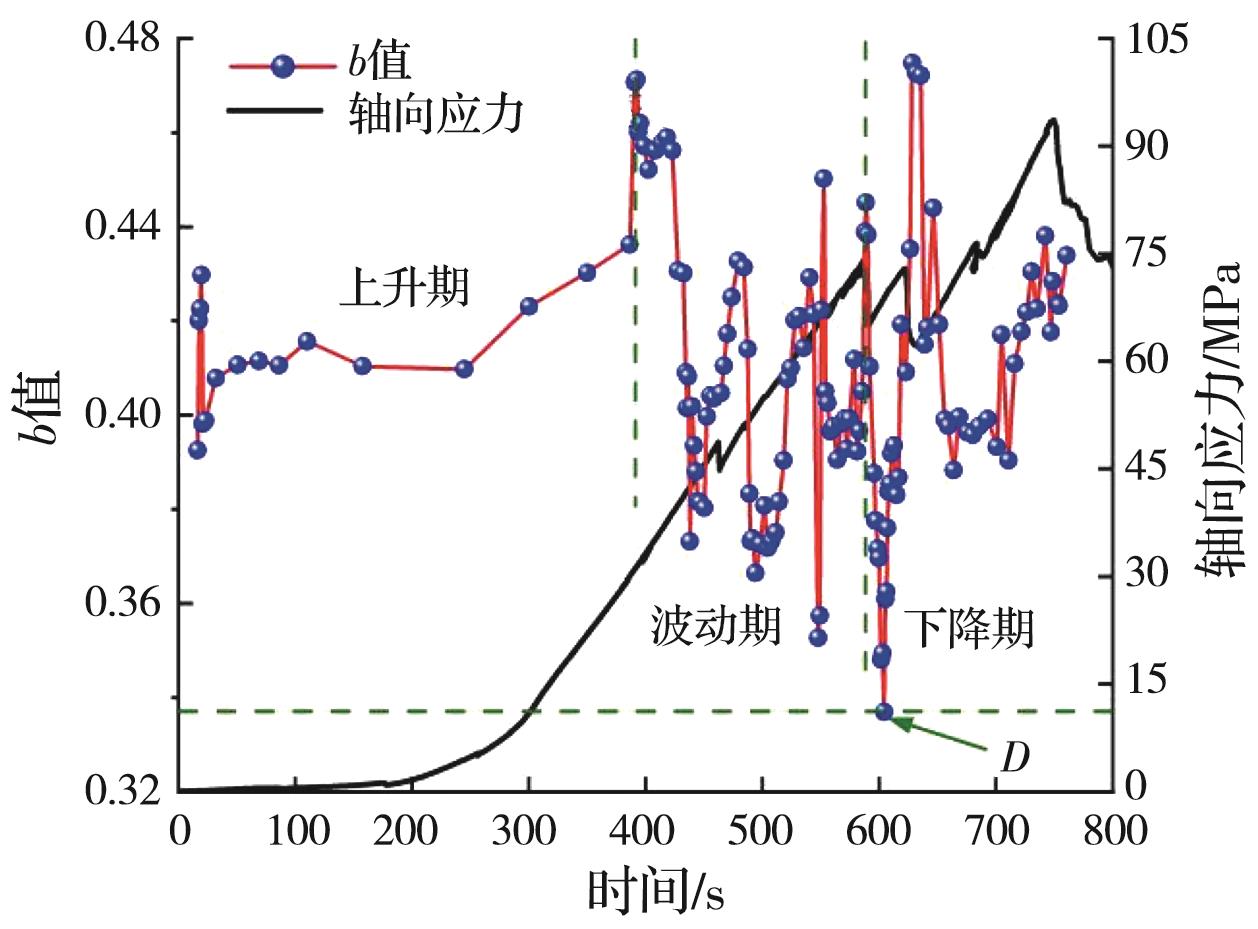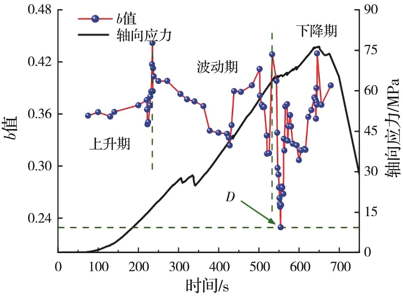 摘要:岩石的裂隙孔洞等缺陷极易引发其局部破坏,对施工安全与运营维护产生不利影响。利用岩石力学测试系统对不同岩桥长度的双圆孔洞凝灰岩进行单轴压缩试验,配合声发射(acoustic emission,简称AE)监测系统对试验全过程进行声发射监测,进行岩石变形破坏过程的声发射特征研究。基于声发射能量、振铃计数、上升时间与幅值的比值(RA)/振铃计数与持续时间的比值(AF)、b值等特征参数,分析不同岩桥长度对岩石破坏的影响,并对其损伤演化特征的前兆信息进行探索。结果表明:声发射参数随时间呈阶段性变化,岩石失稳破坏前有明显异常响应特征;随着岩桥长度的增加,AE能量由群震型向孤震型转变,AE振铃计数经历了平静期、活跃期和突增区,AE RA/AF值对局部细小裂纹扩展较敏感,AE b值随时间经历了上升期、波动期及下降期,总体呈减小趋势;声发射各参数均存在岩石破坏前兆,将AE累计能量、AE累计振铃计数、AE累计RA/AF值的突增点和AE b值的最低点作为“临界破坏前兆点”D,预警时效序列为:AE累计RA/AF值>AE累计振铃计数>AE累计能量>AE b值。