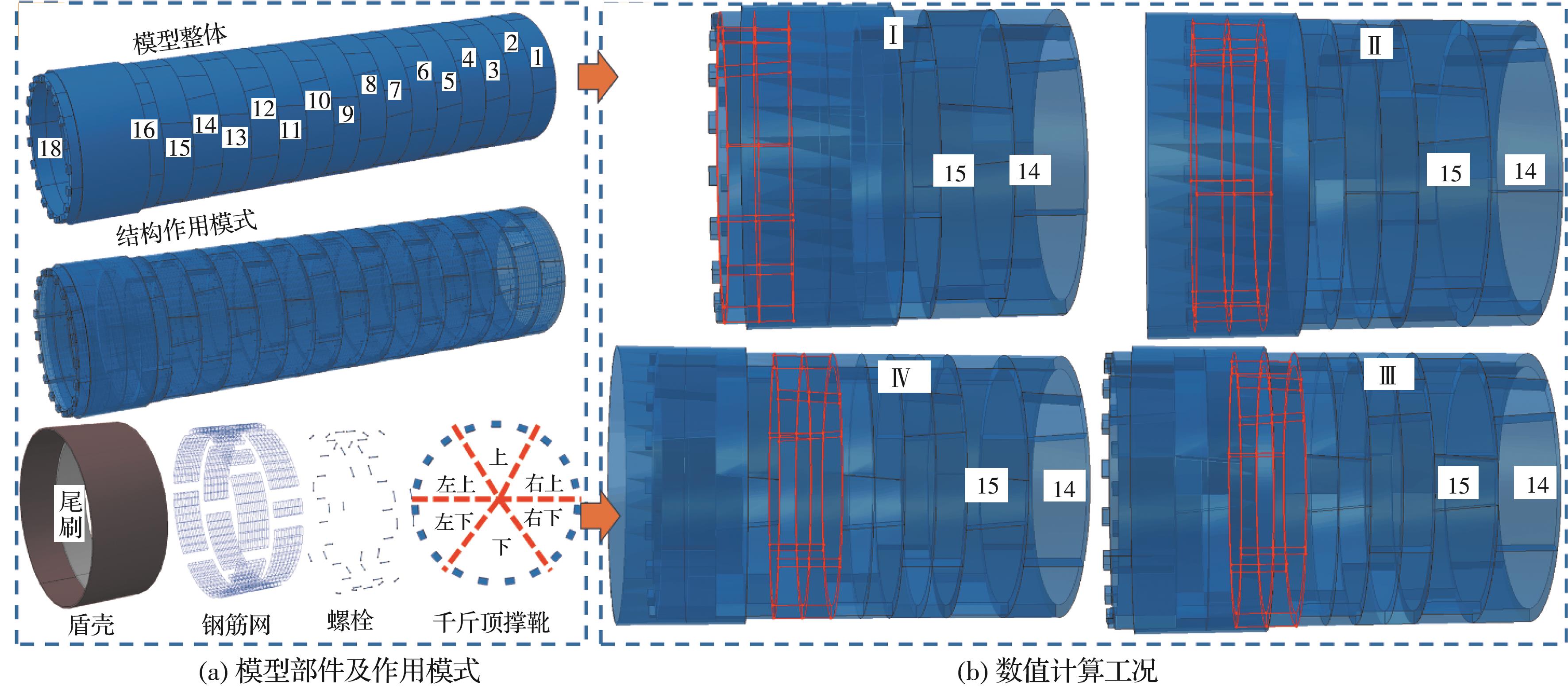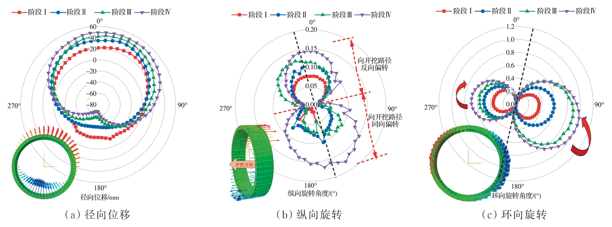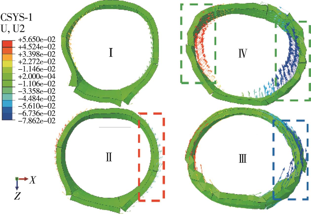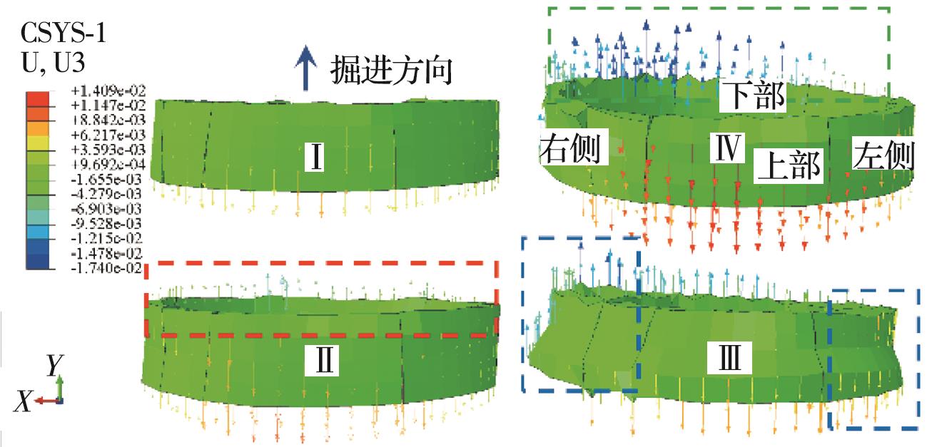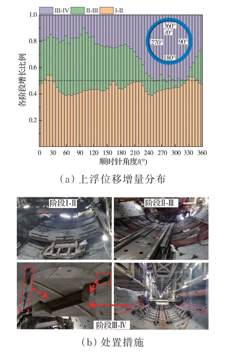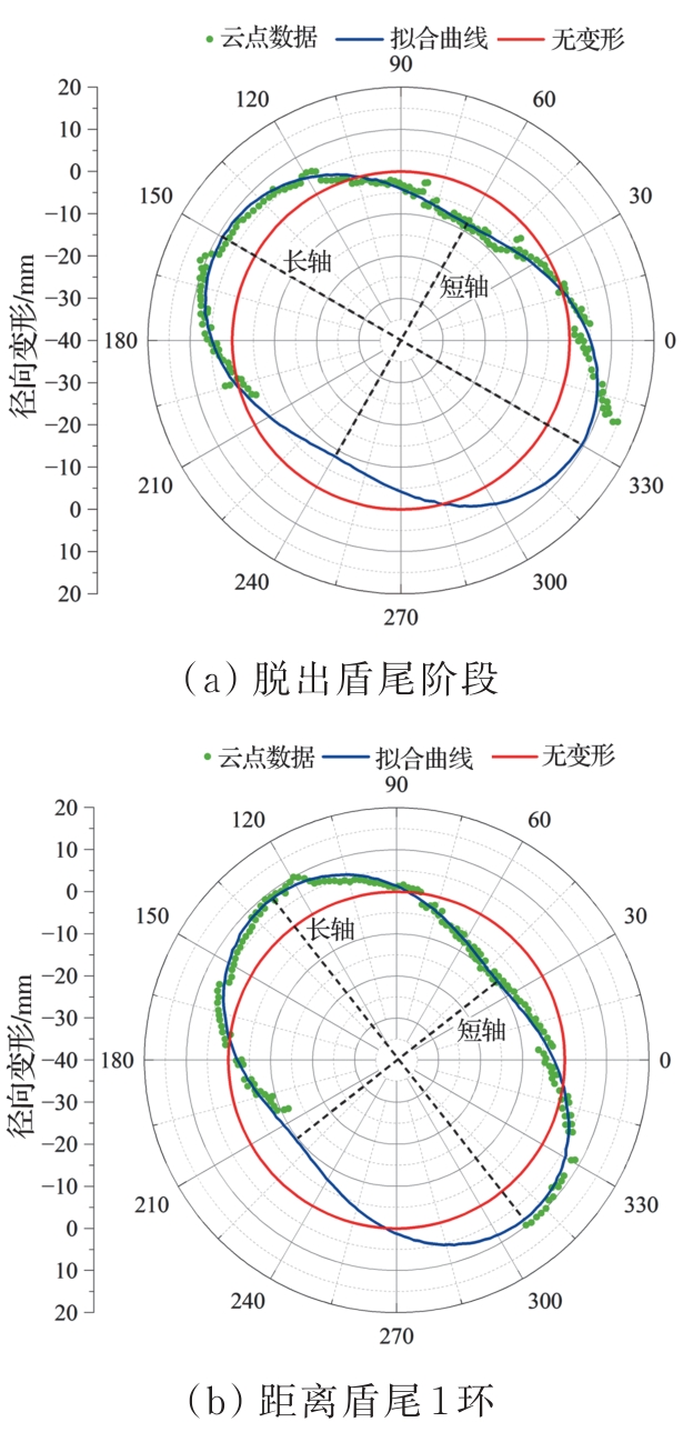 摘要:复合地层盾构掘进过程中,盾构机常会由于空间姿态偏移而与管片发生复杂相互作用,使得管片各部位发生多维变形响应,管片上浮位移和错台超限。为探明施工过程中管片结构响应及其衍生机制,建立多源荷载耦合作用三维数值计算模型,计算分析管片空间变形分布及其过程演化特性,通过现场三维激光雷达测试揭示管片变形演化模式,并对数值计算结果进行校验。结果表明,施工过程中管片“斜鸭蛋”状长轴变形增量的64%发生在完全脱出盾尾前,管片各部位纵向旋转角均值增量的50%发生在管片完全脱出盾尾后,而环向旋转角增量的44%发生在逐渐脱出盾尾阶段。管片环向位移持续发展主要由盾壳环向旋转引起,在管片完全脱出盾尾后,其径向位移发展及形状改变主要受其自身环向位移改变的影响,其纵向位移的进一步发展主要受盾壳纵向偏转的影响。三维激光雷达点云测量能精确地定量评估施工过程中管片长轴和短轴变形及长轴夹角的变化。