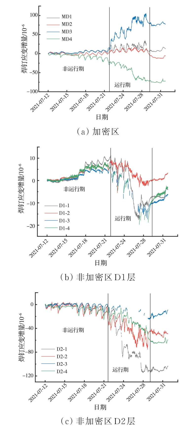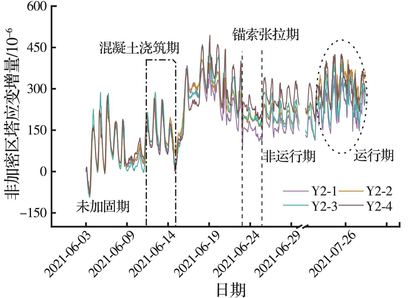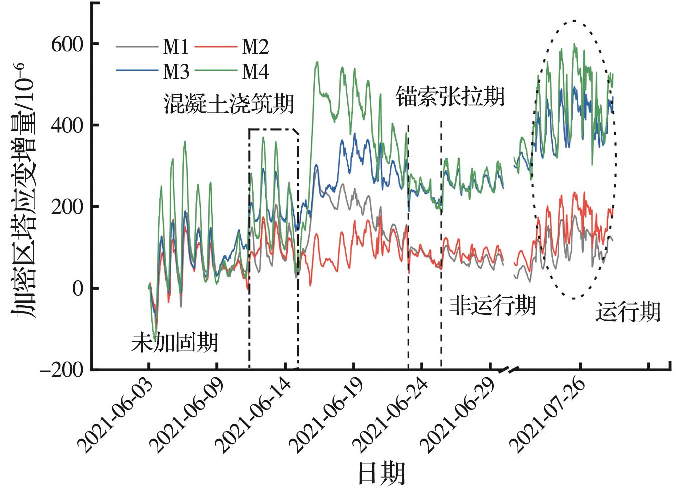 摘要:针对风机运行期间所受荷载的复杂性,依托威海某风电机组基础加固项目,提出一种系统监测方法,结合现场环境,评估加固基础的性能提升效果。从施工阶段到运行阶段,采集加固基础的塔筒应变、焊钉应变及锚索轴力等数据,研究风机加固基础在不同工况下的受力响应,并开展相关性分析,探讨基础加固后的性能提升效果及荷载传递机理。结果表明:加固区中各构件受力响应具有趋势相似性与幅值差异性,受力改善效果明显且均具有较大的安全度;该加固方法利用外包混凝土和焊接焊钉改变了结构受力边界,增加了底层塔筒的约束刚度,使上部传递荷载重新分配,实现剪力的分担与传递,保证塔筒与混凝土共同变形。基于此加固方案提出的系统监测评估方法可以有效、及时地掌握加固系统各构件的受力状态,保证后续风电机组运行安全。该加固方案改善了基础、岩石锚杆及法兰的受力状态,基础整体受力性能得到保证。