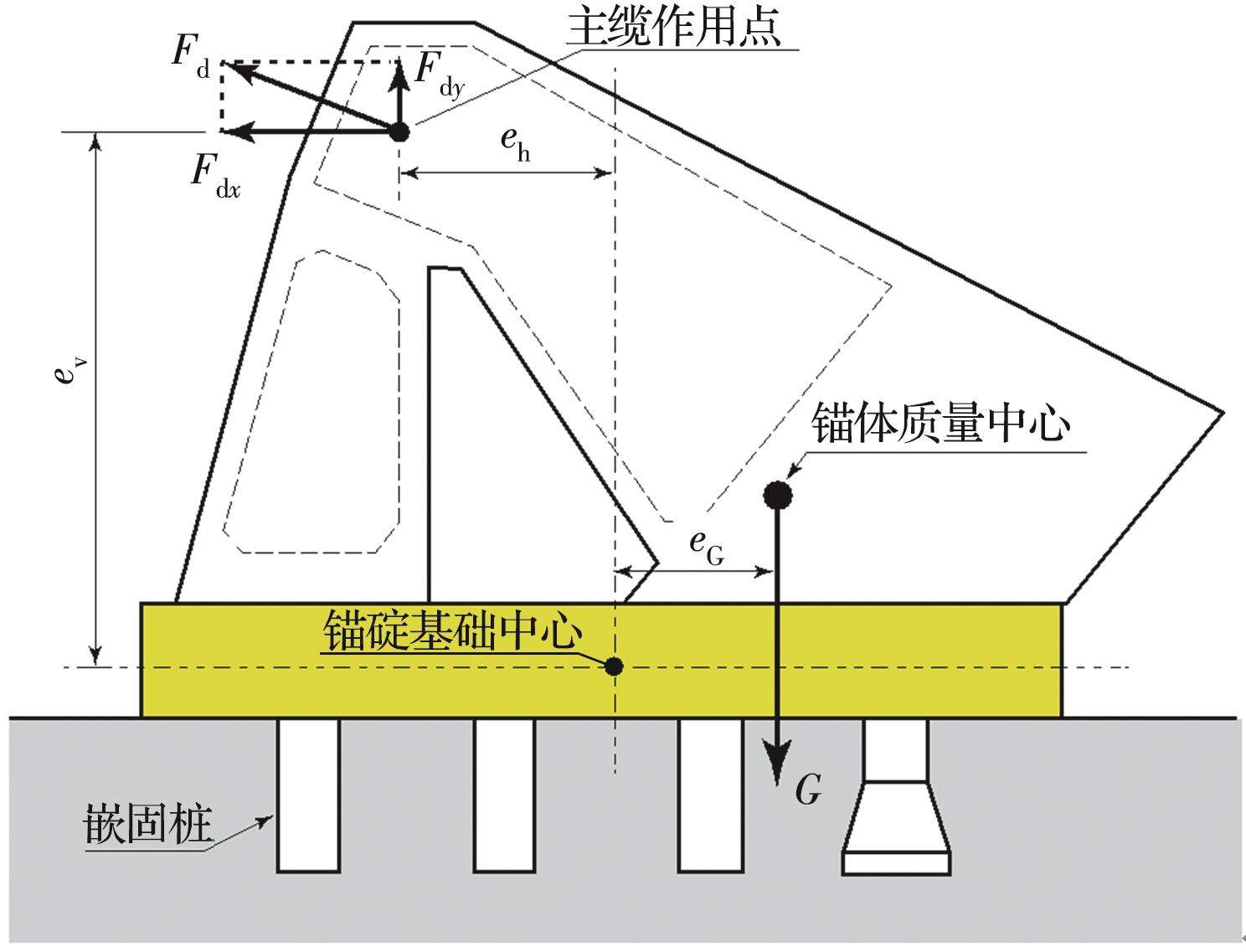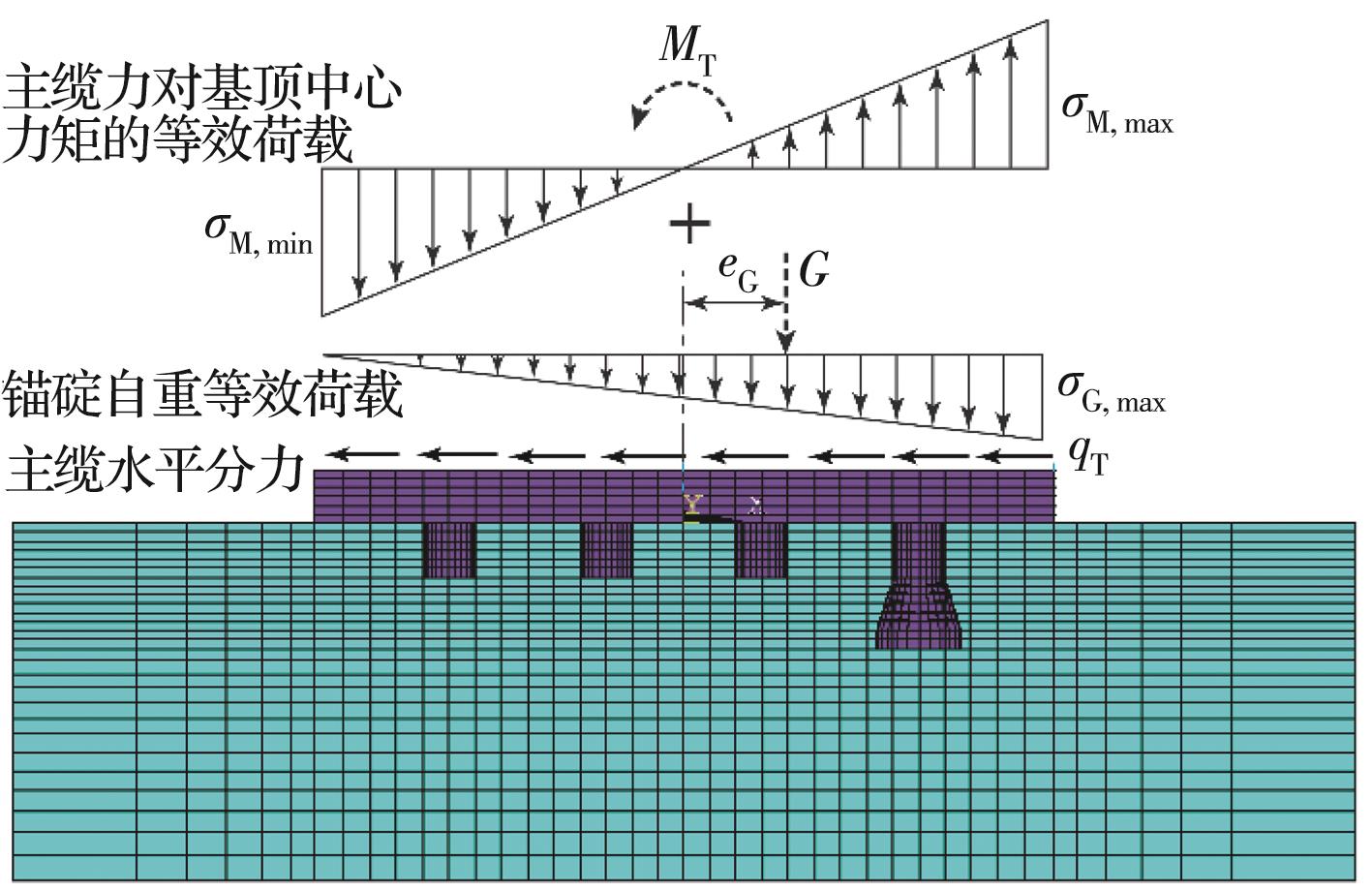 摘要:大直径嵌桩式重力锚利用嵌固桩的侧向承载作用来增加抗滑力,能减小重力锚体积,降低基坑开挖量和对原状地基的扰动,提高锚碇抵抗地质灾害的能力。然而,锚碇基底摩擦力和嵌固桩侧向承载力的联合抗滑机制尚不清楚,且缺乏可供设计使用的实用方法。针对中风化石英砂岩地基上的大直径嵌桩式重力锚碇,运用三维实体弹塑性数值分析手段,采用岩石力学中考虑高孔隙砂岩体积压缩屈服的帽盖模型及库伦接触-摩擦单元,分析4根不同桩长的大直径嵌固桩侧向承载力以及单桩和群桩重力锚基底摩阻力与嵌固桩的耦合效应,揭示重力锚嵌固桩侧向基岩反力分布形态和摩阻力随主缆拉力的演化规律,考察嵌固桩长度以及平面布置形式对该类重力锚抗滑稳定性的影响。结果表明:重力锚嵌固桩可承担锚碇总抗滑力的70%~80%,极限荷载下锚碇基底实际摩阻力只达到最大摩阻力的2/3;嵌桩式重力锚的抗滑稳定性系数能达到悬索桥规范要求,而锚碇位移能控制在跨度的1/10 000之内;嵌桩式重力锚的失稳主要由锚碇后部扩底式嵌固桩周围基岩局部屈服破坏引起;与传统重力锚相比,大直径嵌桩式重力锚可以减小锚碇自重达20%以上。