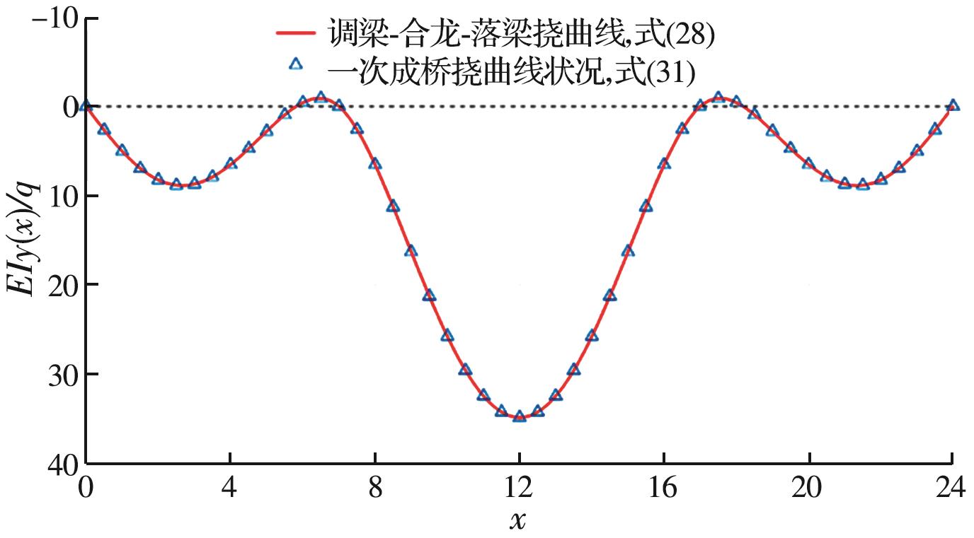 摘要:支座强迫位移法是一种在钢主梁桥合龙施工中使用的控制方法,可以大范围调整桥梁合龙口的位置和转角,然而对于该方法在结构体系转换前后对桥梁线形和内力的影响,目前尚未有详尽的理论研究。针对这一问题,以均布荷载下悬臂施工的三跨连续梁桥为研究对象,基于欧拉梁挠曲微分方程,采用积分法分别求解支座强迫位移法分步合龙成桥和一次成桥两种状况下三跨连续梁桥的挠曲线闭合解。结果表明,两种状况下得到的梁挠曲函数完全相同,证明在弹性状态下采用强迫位移法合龙的梁式桥梁可以实现理想的一次成桥效果。同时,结合某三跨连续钢桁梁桥合龙的工程实例,对比应用支座强迫位移法合龙前后实测的桥梁线形数据和施工过程有限元计算结果发现,二者吻合良好,验证了支座强迫位移法的实桥合龙控制效果和工程应用价值。