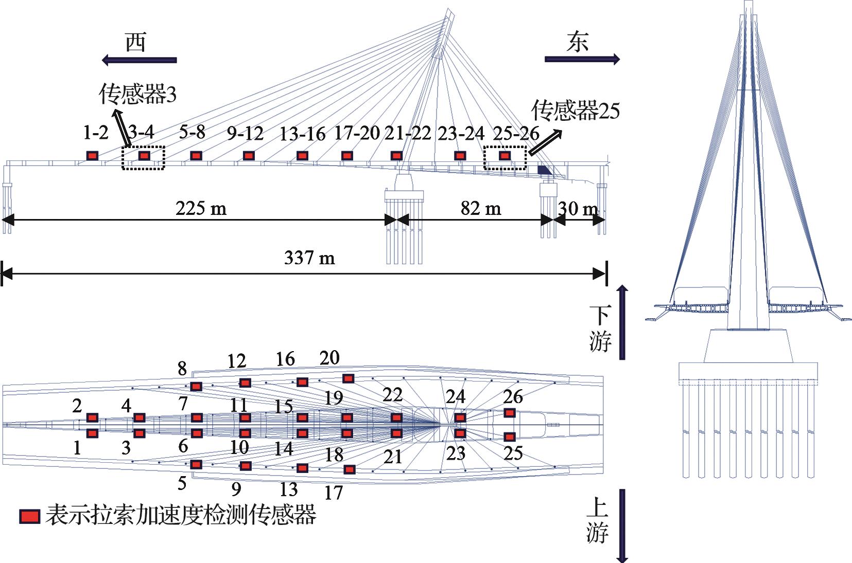 摘要:桥梁拉索动力响应监测数据中存在大量低质量数据,现有的监测数据检测研究集中于时域波形异常的明显异常数据,然而监测数据中还存在时域波形正常但频域特征混乱的数据,这类数据无法准确地反映桥梁拉索动力特性。针对该问题,将现有的异常数据检测拓展为数据质量评价,同时对明显异常数据和频域混乱数据进行检测。采用卷积神经网络(CNN)和数据频域特征建立桥梁拉索动力响应监测数据质量评价方法,实施流程包括:采用快速傅里叶变换(FFT)将时域数据序列转化为功率谱密度函数(PSDF),利用格拉姆角场(GAF)方法对PSDF序列进行可视化,进而搭建CNN模型,对监测数据质量进行自动化评价。以某斜拉桥的拉索加速度监测数据为例开展应用研究,结果表明,与时域序列检测方法相比,PSDF序列检测方法能够更好地区分正常与频域混乱数据,评价准确率更高;利用两个传感器监测数据建立的CNN模型对所有26个传感器监测数据质量评价准确率均在94%以上;此外,将该评价模型应用于另一座类似桥梁的监测数据质量评价中,准确率也达到95%。