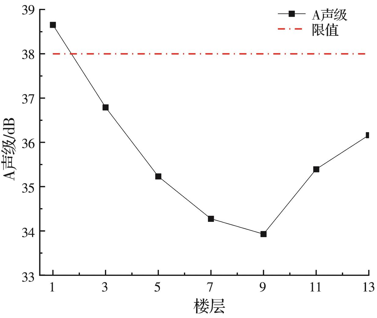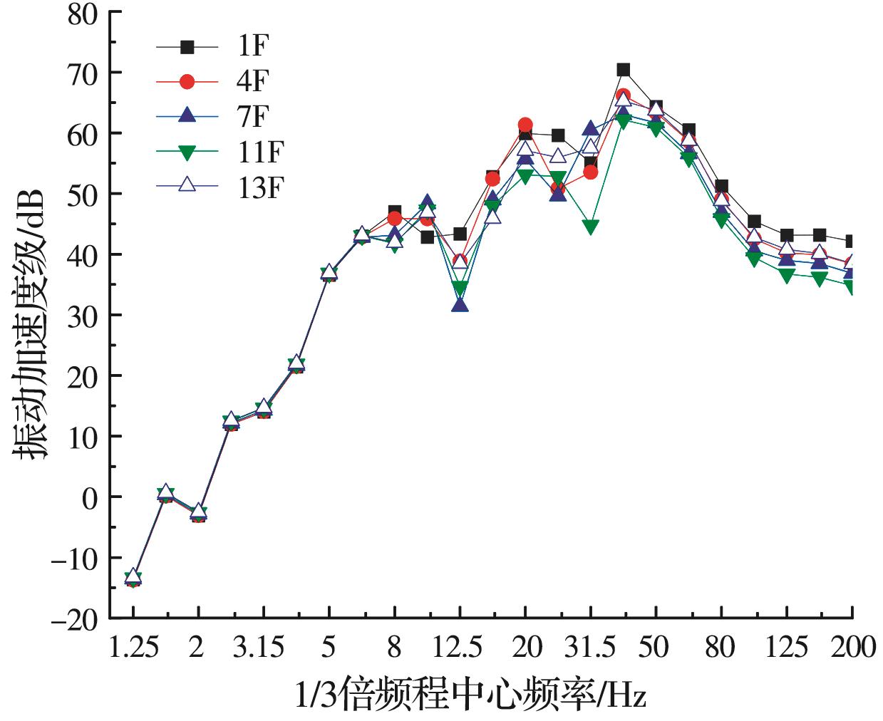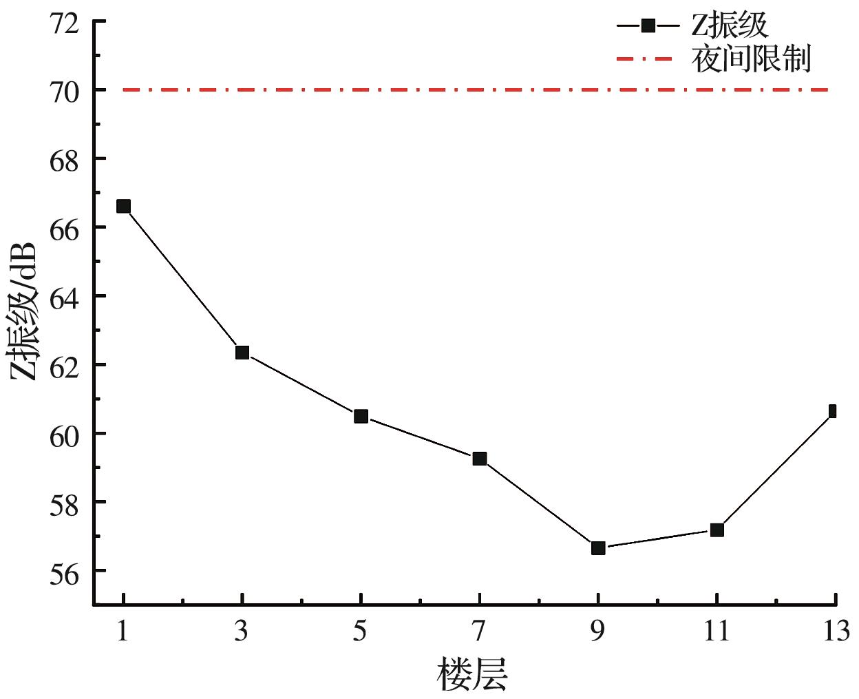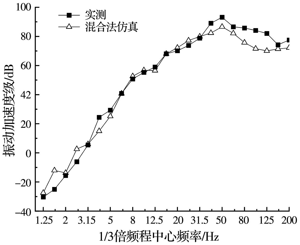 摘要:为分析地铁车辆段运行对上盖建筑振动与室内二次结构噪声的影响,基于FE-SEA混合法,以某地铁车辆段上盖建筑为依托,建立轨道-盖板-上盖建筑耦合模型,开展地铁振动作用下不同频域范围内上盖建筑振动与室内二次结构噪声分析,揭示上盖建筑振动产生机理,探究上盖建筑振动与噪声传播规律。结果表明:采用FE-SEA混合法分析预测上盖建筑振动及室内结构噪声准确性较高;受固有频率影响,上盖建筑各楼板主频振动位于31.5~50 Hz的低频段内;车致上盖建筑振动Z振级在第9层衰减至最低水平,随着楼层的增加,振动出现放大现象;各典型房间二次结构噪声声压主要集中于20~80 Hz范围内,随着楼层的增加,不同典型房间的A声级均出现先减小后增大的现象;施加隔振支座可以起到较好的减振效果,能有效降低结构的自振频率,并降低上盖结构对高于这一频率的振动响应。