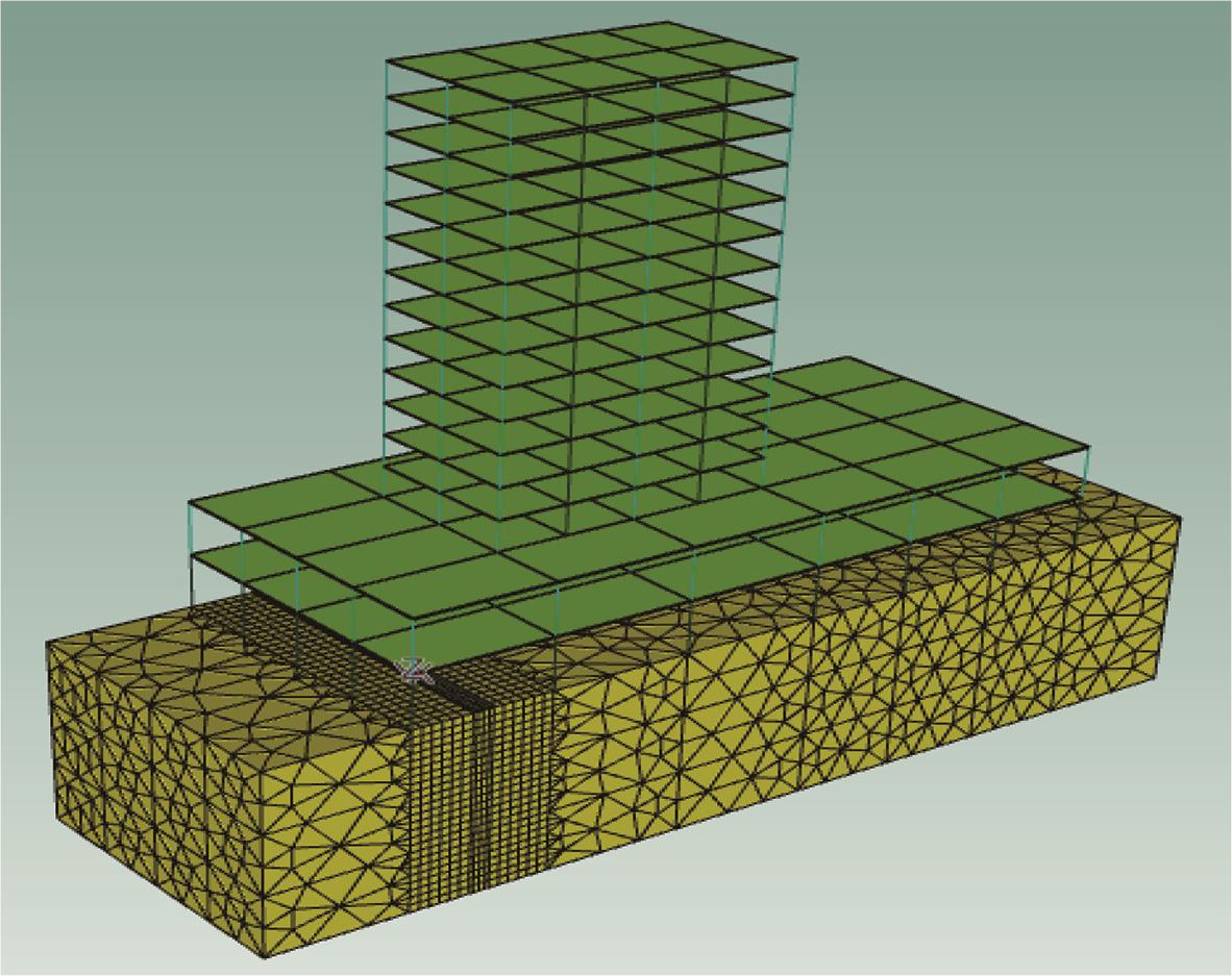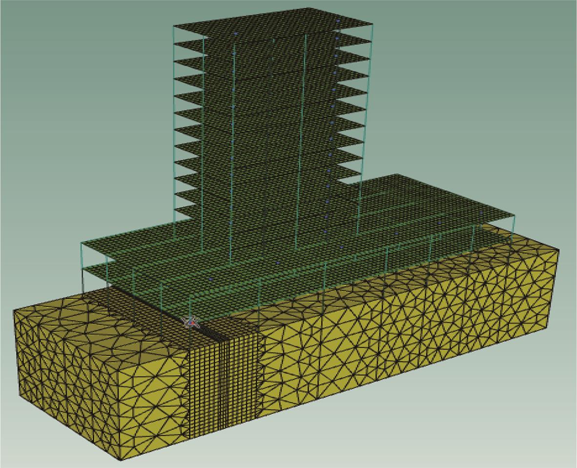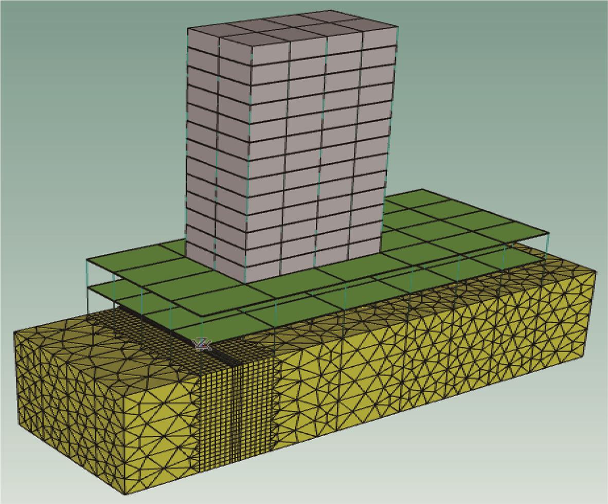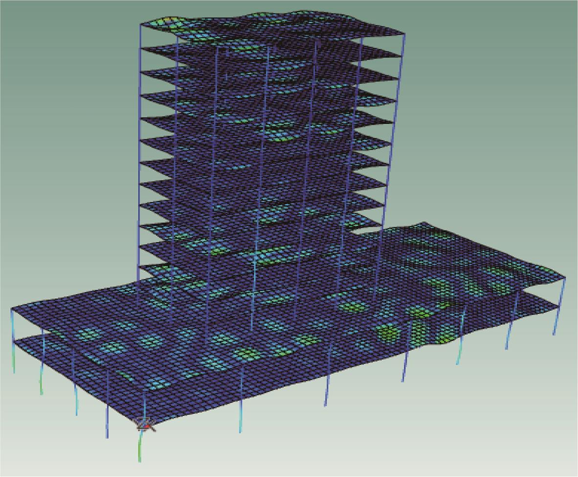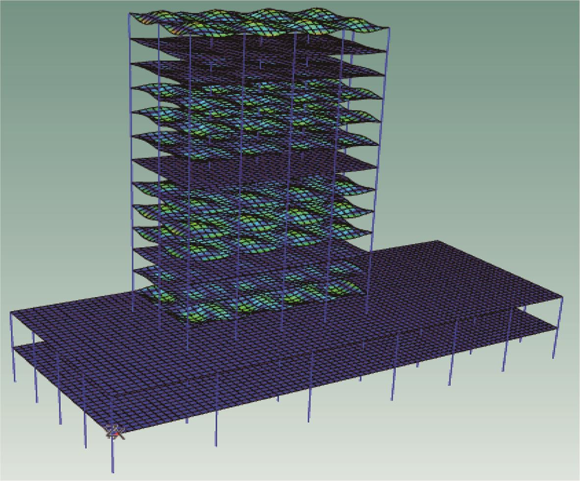 摘要:为分析地铁车辆段运行对上盖建筑振动与室内二次结构噪声的影响,基于FE-SEA混合法,以某地铁车辆段上盖建筑为依托,建立轨道-盖板-上盖建筑耦合模型,开展地铁振动作用下不同频域范围内上盖建筑振动与室内二次结构噪声分析,揭示上盖建筑振动产生机理,探究上盖建筑振动与噪声传播规律。结果表明:采用FE-SEA混合法分析预测上盖建筑振动及室内结构噪声准确性较高;受固有频率影响,上盖建筑各楼板主频振动位于31.5~50 Hz的低频段内;车致上盖建筑振动Z振级在第9层衰减至最低水平,随着楼层的增加,振动出现放大现象;各典型房间二次结构噪声声压主要集中于20~80 Hz范围内,随着楼层的增加,不同典型房间的A声级均出现先减小后增大的现象;施加隔振支座可以起到较好的减振效果,能有效降低结构的自振频率,并降低上盖结构对高于这一频率的振动响应。