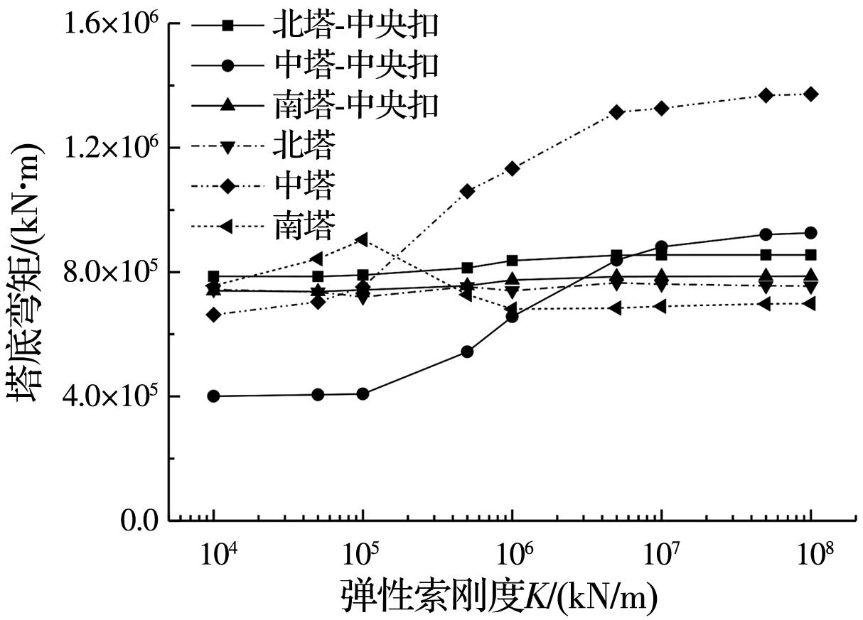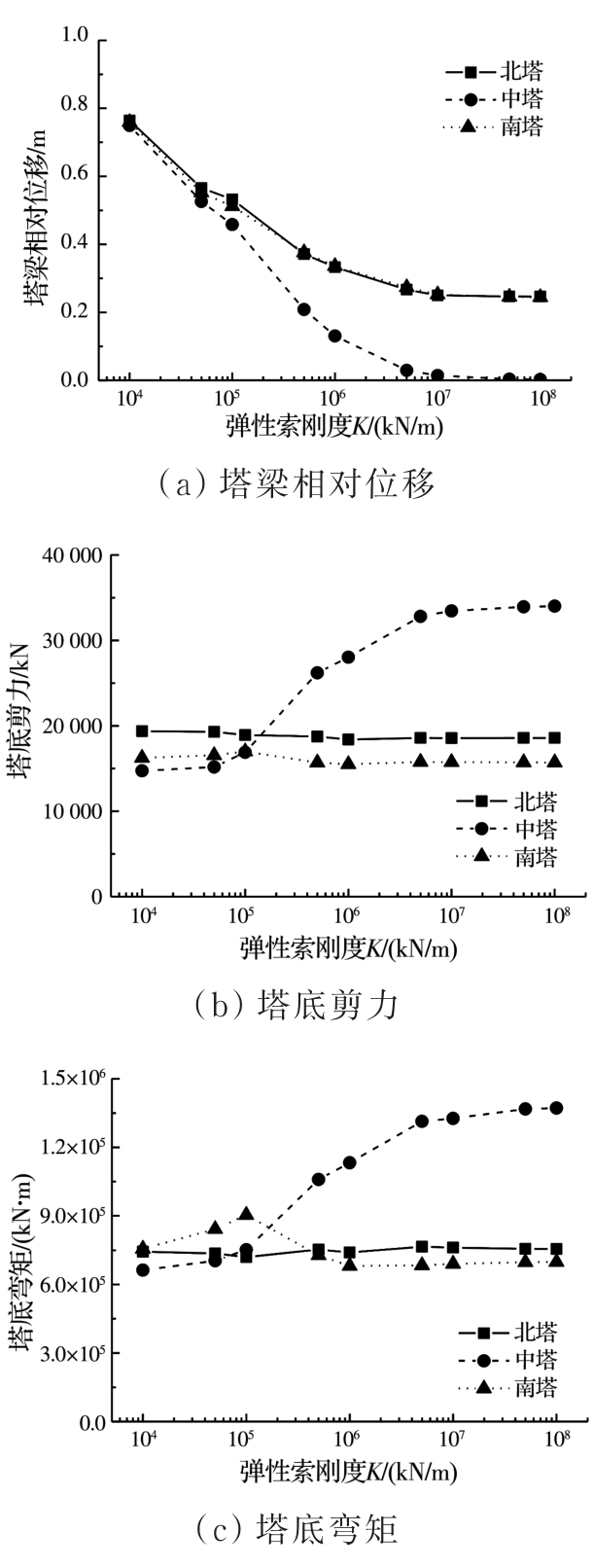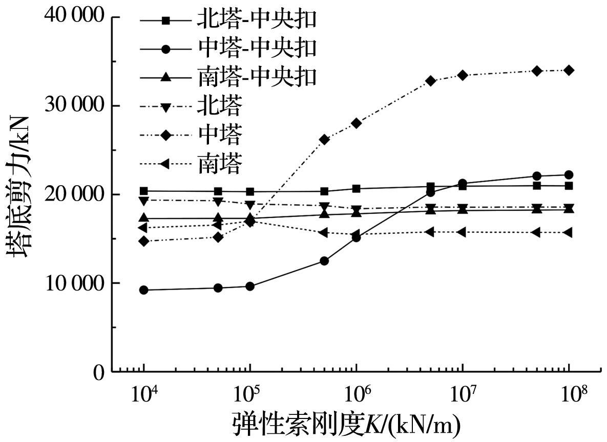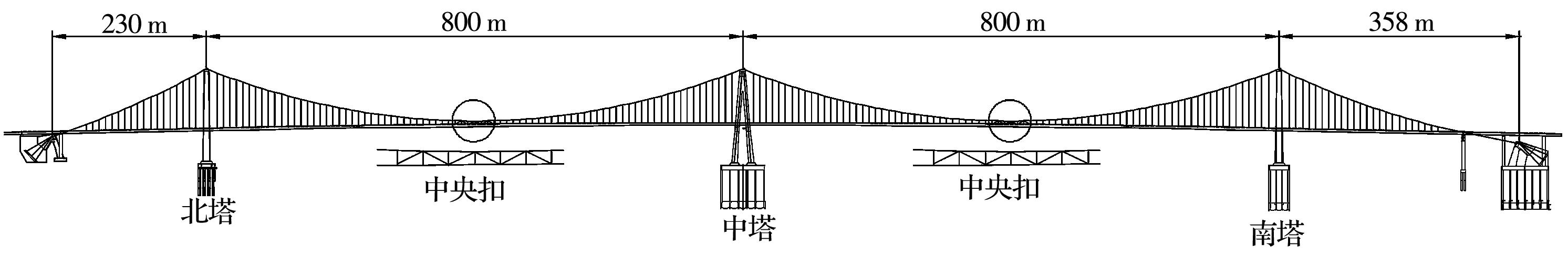 摘要:以某三塔悬索桥为背景,建立桥梁有限元计算模型,采用非线性时程分析方法计算悬索桥中塔塔梁间不同弹性索刚度下桥梁的地震响应,研究中塔塔梁间设置弹性索对三塔悬索桥地震响应的影响;分析设置柔性中央扣后悬索桥的地震响应,并与无中央扣的情况进行对比;根据地震作用下三塔悬索桥柔性中央扣的受力特点,提出采用弹塑性减震装置作为三塔悬索桥中央扣,并分析不同弹塑性中央扣参数下桥梁的地震响应,研究弹塑性中央扣对三塔悬索桥地震响应的影响;探讨不同纵向减震体系下三塔悬索桥的减震效果。结果表明:中塔处塔梁间设置弹性索对中塔地震受力不利;柔性中央扣是地震作用下悬索桥的易损构件,可采用弹塑性减震装置作为悬索桥中央扣;弹塑性中央扣能有效控制三塔悬索桥的纵向地震位移,并改善中塔地震内力;采用弹性索和弹塑性中央扣组合减震体系后,悬索桥位移减小更明显,且中央扣减弱了弹性索对中塔内力的不利影响,弹塑性中央扣应用于三塔悬索桥中能有效提升桥梁的抗震性能。