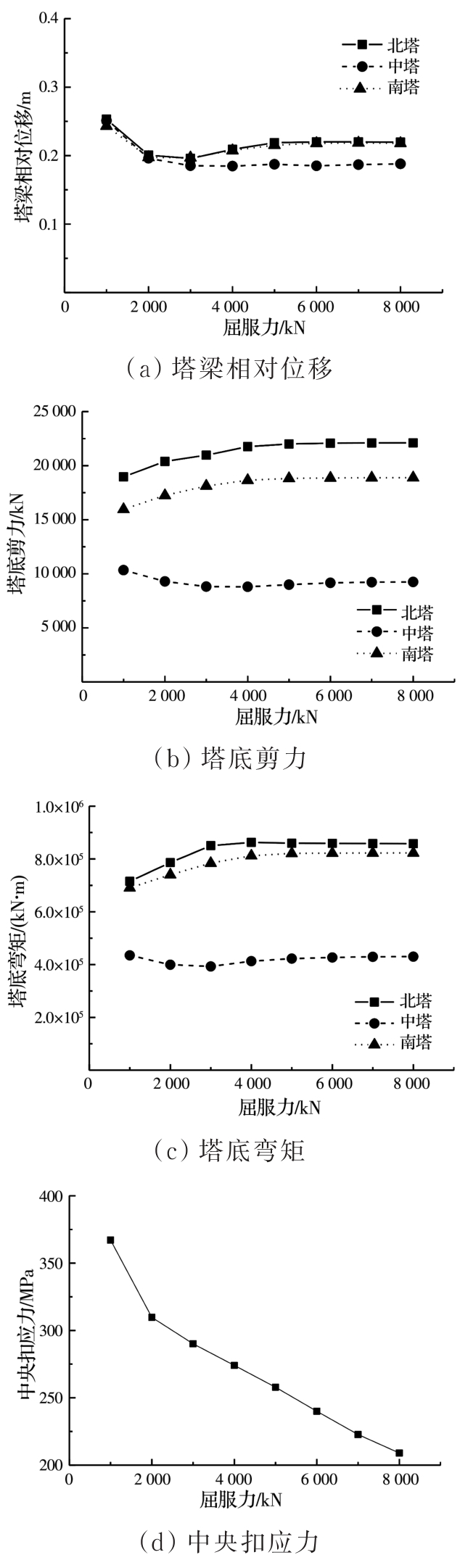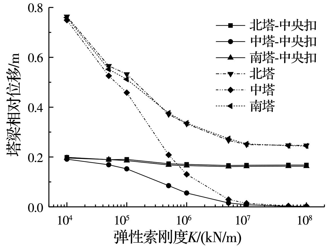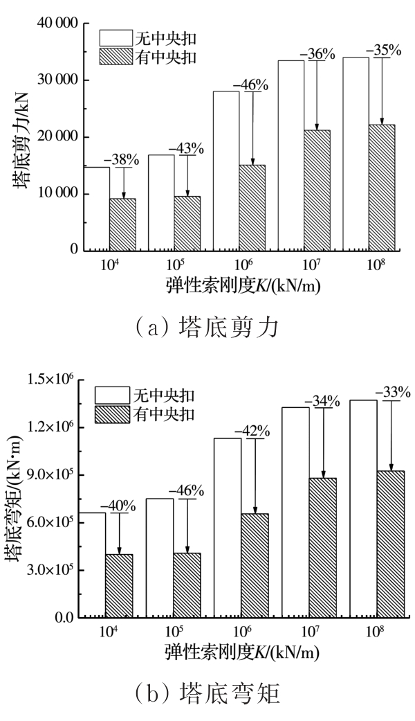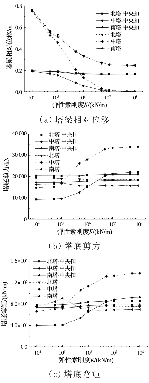 摘要:以某三塔悬索桥为背景,建立桥梁有限元计算模型,采用非线性时程分析方法计算悬索桥中塔塔梁间不同弹性索刚度下桥梁的地震响应,研究中塔塔梁间设置弹性索对三塔悬索桥地震响应的影响;分析设置柔性中央扣后悬索桥的地震响应,并与无中央扣的情况进行对比;根据地震作用下三塔悬索桥柔性中央扣的受力特点,提出采用弹塑性减震装置作为三塔悬索桥中央扣,并分析不同弹塑性中央扣参数下桥梁的地震响应,研究弹塑性中央扣对三塔悬索桥地震响应的影响;探讨不同纵向减震体系下三塔悬索桥的减震效果。结果表明:中塔处塔梁间设置弹性索对中塔地震受力不利;柔性中央扣是地震作用下悬索桥的易损构件,可采用弹塑性减震装置作为悬索桥中央扣;弹塑性中央扣能有效控制三塔悬索桥的纵向地震位移,并改善中塔地震内力;采用弹性索和弹塑性中央扣组合减震体系后,悬索桥位移减小更明显,且中央扣减弱了弹性索对中塔内力的不利影响,弹塑性中央扣应用于三塔悬索桥中能有效提升桥梁的抗震性能。