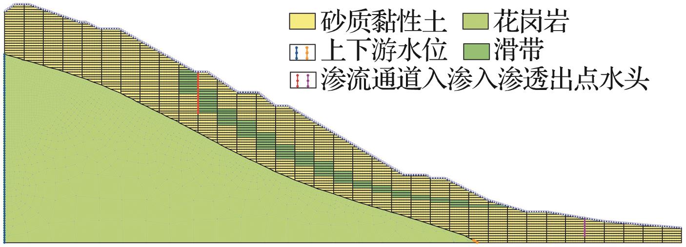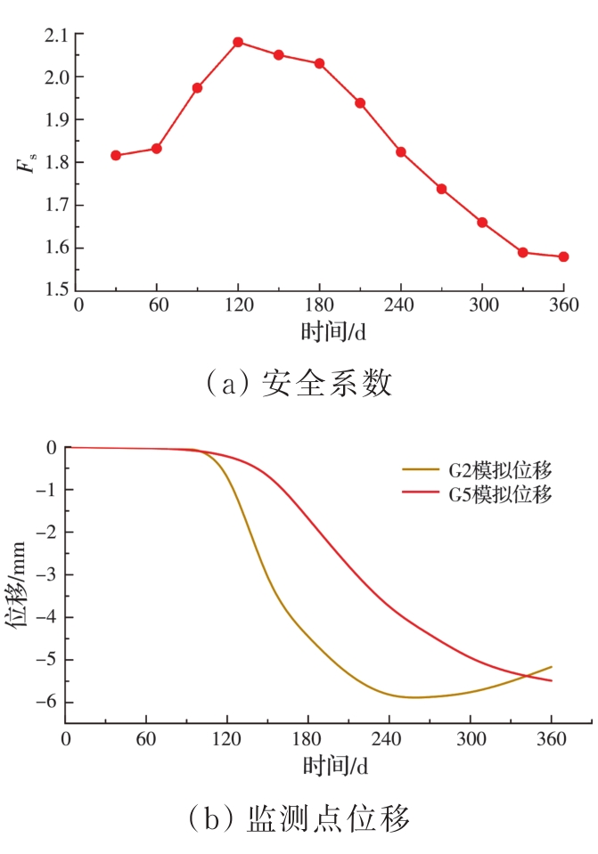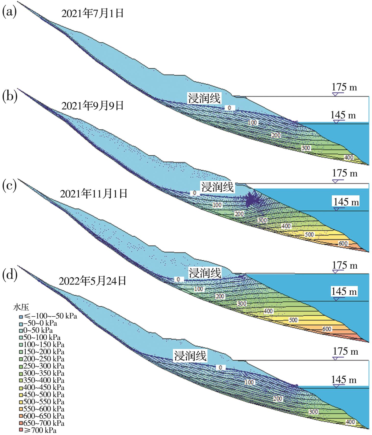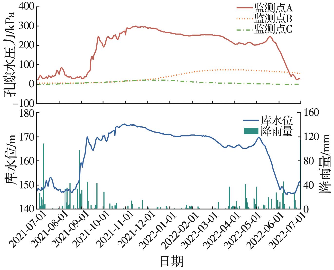 摘要:库水位变化和降雨是影响三峡库区滑坡失稳破坏的主要因素,凉水井滑坡受库区试验性蓄水影响变形后发布预警,目前滑坡活动趋于稳定但变形机制仍不明确。结合凉水井滑坡近年来的监测数据,在考虑滑坡位移阶跃演进变化的基础上,利用多年库水位变化和降雨数据,建立滑坡的水力计算模型,研究库水位变动和降雨共同作用下滑坡的渗流场、稳定性和位移变化规律,探讨凉水井滑坡的内在变形机制。结果表明:滑坡前部和后部的渗流场分别主要受库水位和降雨影响,中部则受到两者的联合作用;滑坡稳定性系数随库水位涨落而呈周期性变化,降雨进一步降低了滑坡的整体稳定性;滑坡地表位移呈阶跃式上升趋势,库水位下降引起位移跃迁增长,库水位上升使位移变化趋于稳定。总体上,在库水位变动和降雨共同作用下,地下渗流场发生变化,引起水力条件改变,导致滑坡产生变形,目前滑坡变形主要集中在坡脚处,变形范围逐渐向后延伸,滑坡中后部变形稳定;库水位变化对滑坡变形影响较明显,在库水位变化速率较大的年份,应当注意加强对滑坡变形的预警监测。