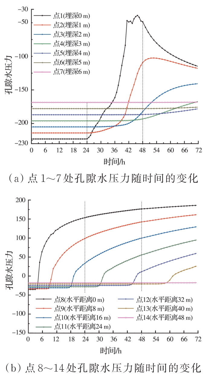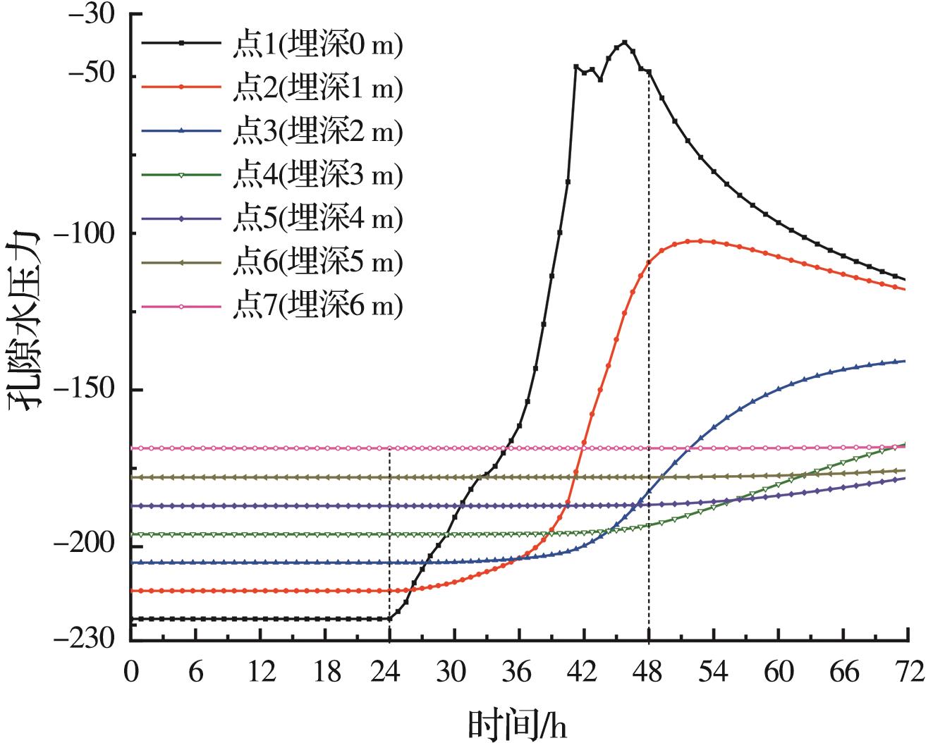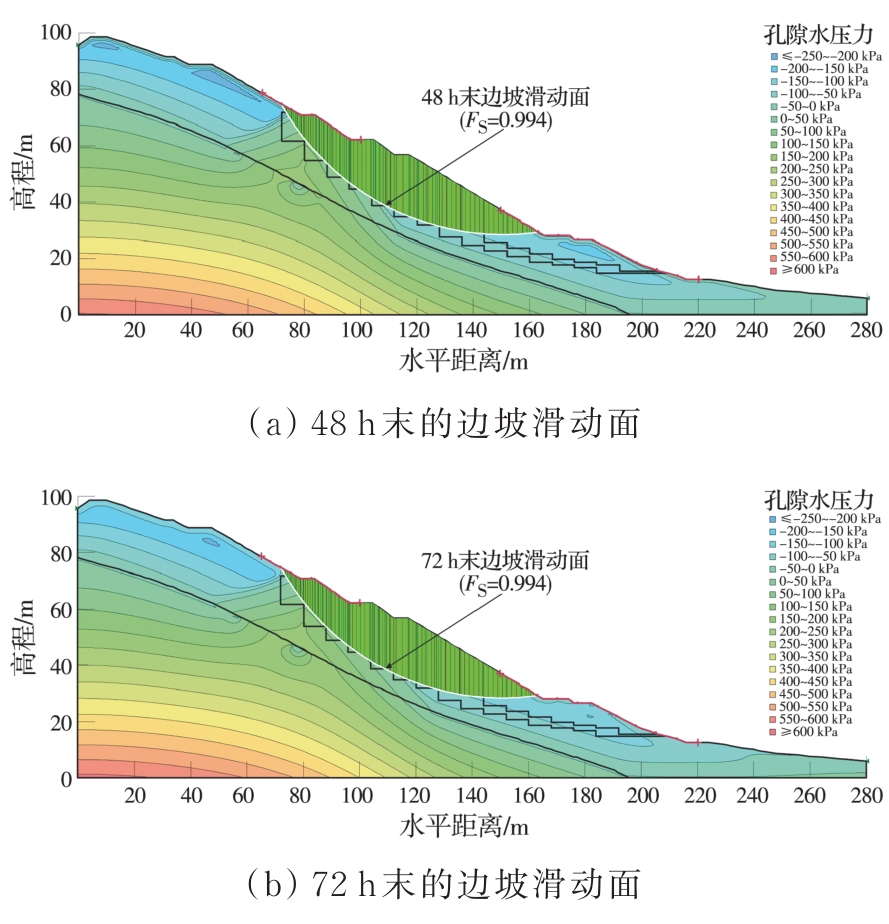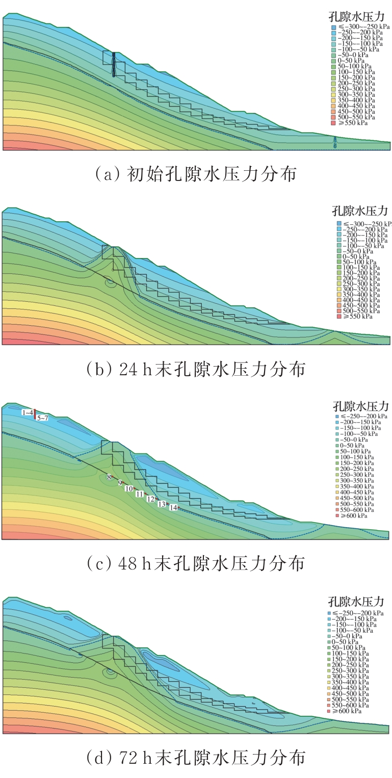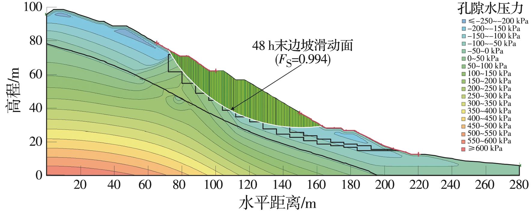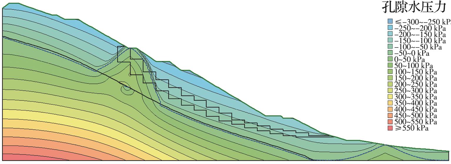 摘要:准确地进行降雨作用下边坡稳定概率的分析需综合考虑降雨的随机性和土体参数的空间变异性,但现有研究通常仅考虑其中一种因素对边坡稳定性的影响。提出同时考虑两种因素作用的边坡稳定概率分析方法,采用Karhunen-Loève展开法模拟土体参数的空间变异性,利用有界随机级联模型模拟降雨随机性,将生成的降雨时间序列作为边坡的上边界条件,进行渗流和稳定性分析,进而采用拉丁超立方抽样(LHS)方法计算边坡失效概率。以江西省吉安市遂川县卷旋村滑坡为例进行分析研究,结果表明:同时考虑随机降雨和土体参数空间变异性所得边坡稳定概率分析结果与工程实际相符;边坡顶部梯田储水的持续下渗对边坡孔隙水压力的影响范围逐渐增大,而孔隙水压力的上升幅度逐渐减小,最终趋近于零;对比降雨入渗,降雨重分布对边坡稳定性的影响较小。