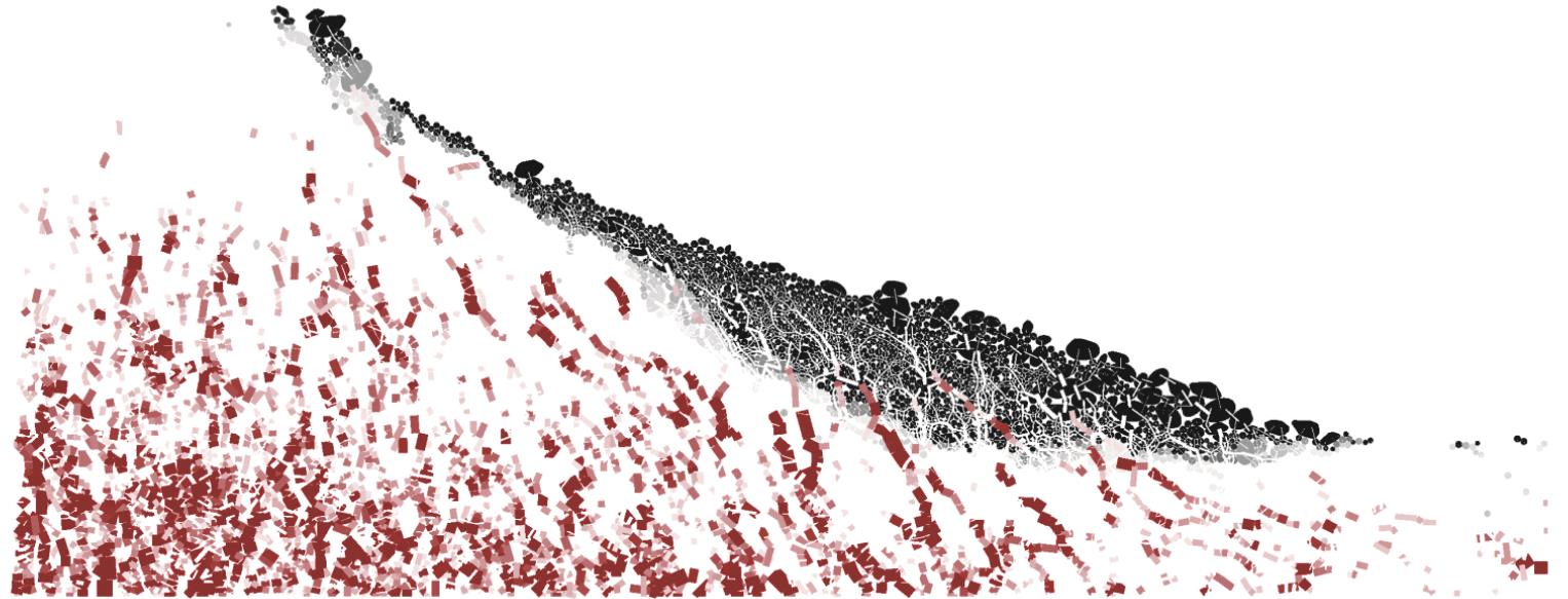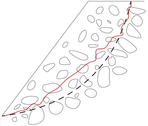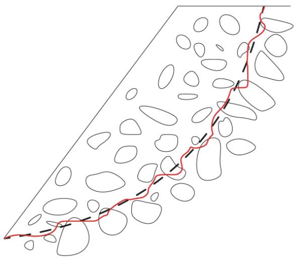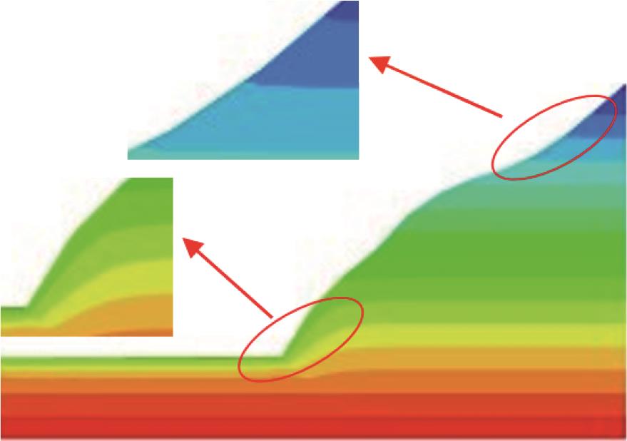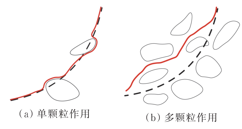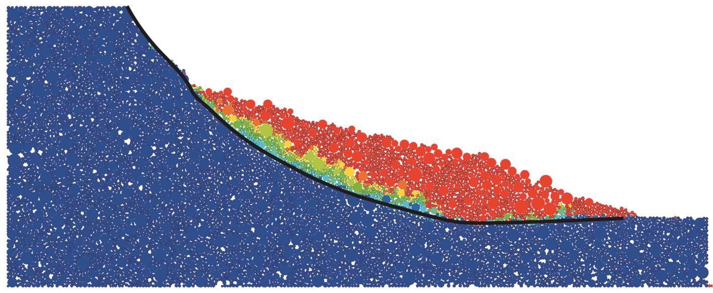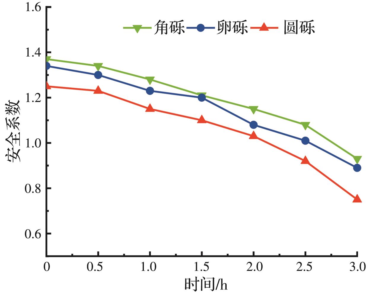 摘要:为了研究降雨条件下砾石形状对含砾花岗岩残积土边坡稳定性及变形破坏特征的影响,通过室内降雨边坡模型试验并结合CFD-DEM数值模拟,对比分析边坡的宏观竖向位移和变形破坏及湿润锋变化,考虑圆砾、卵砾、角砾3种砾石形状,分析位移场与滑动面的发展规律以及细观接触力链、配位数、组构各向异性。结果表明:含圆砾边坡安全系数最小,含角砾边坡安全系数最大;随着降雨时间从0 h增加到3 h,含圆砾、卵砾、角砾3种不同砾石形状的边坡安全系数分别下降40%、33%、32%,受降雨影响的程度从大到小依次为含圆砾、卵砾、角砾边坡;随着砾石长宽比和棱角度的增大,砾石的嵌固咬合作用逐渐增强,对应坡体依次出现圆弧形破坏、齿状弧形破坏、偏移形破坏3种破坏模式;边坡失稳破坏后,含圆砾、卵砾、角砾边坡的强接触力链在分布特征上表现为交织性、弱连续性、不均匀性;随着砾石长宽比和棱角度的增大,含圆砾、卵砾、角砾边坡内部的接触各向异性程度逐渐提高。