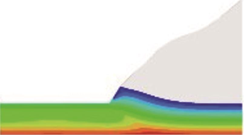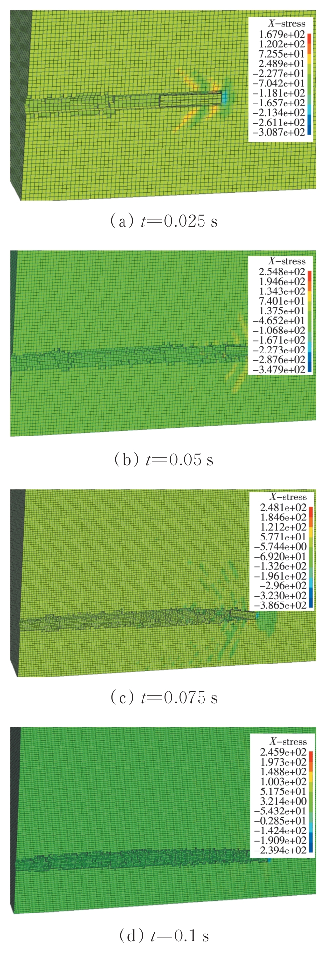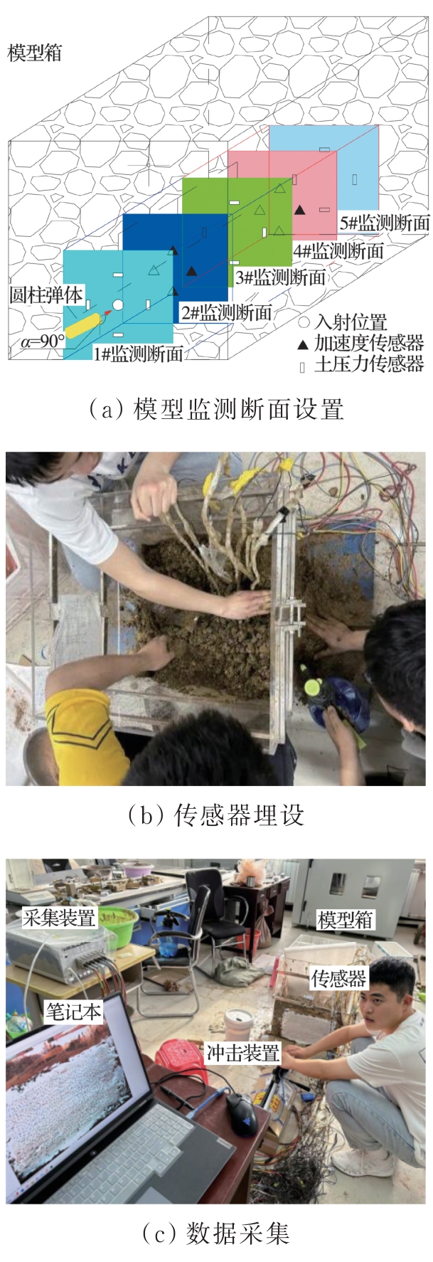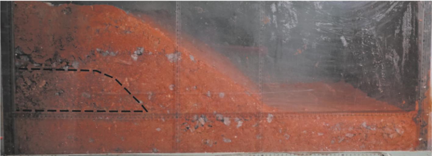 摘要:为研究冲击荷载作用下泥石流堆积体力学响应特征,采用堆积体土工试验、冲击荷载作用相似模型试验和数值模拟相结合的方法,研究圆柱弹体侵彻泥石流堆积体的加速度、速度、位移、应力等时程曲线以及弹体侵彻过程中的运动姿态、阻力和空腔特征演化规律。结果表明:弹体侵彻泥石流堆积体时,位移增加较快,随着弹体在泥石流堆积体中运动姿态的失稳,其减加速度逐渐增加,在弹体轴向与其运动方向垂直时,接触面最大,阻力达到最大值,负加速度也达到最大值。在弹体的侵彻过程中,弹体将泥石流堆积体向四周排开,形成大的空腔,弹体速度随之降低,位移增加趋于缓慢;随着时间的增加,弹体翻转,最后尾部向前,与泥石流堆积体接触面减小,阻力降低,加速度减小,速度相对减缓,位移曲线的曲率随着速度的减小而减小。
