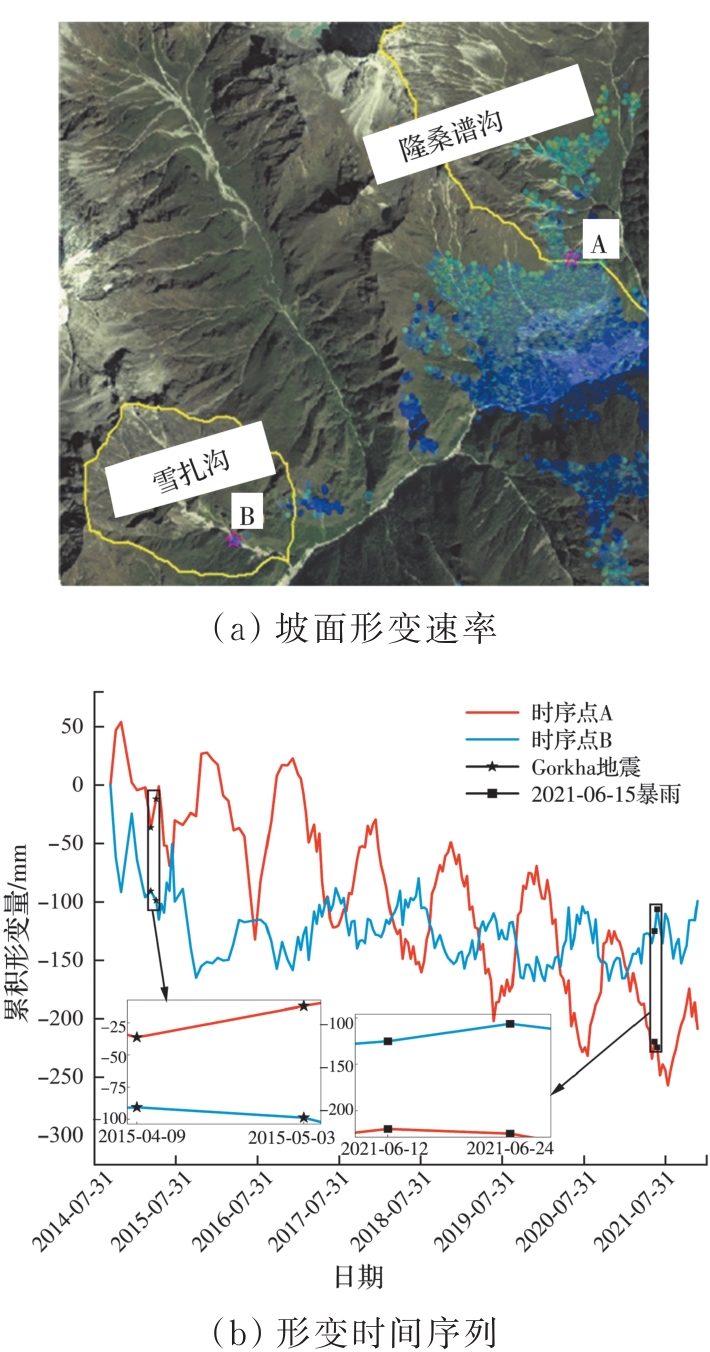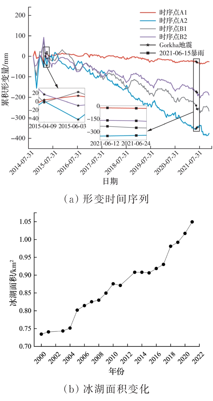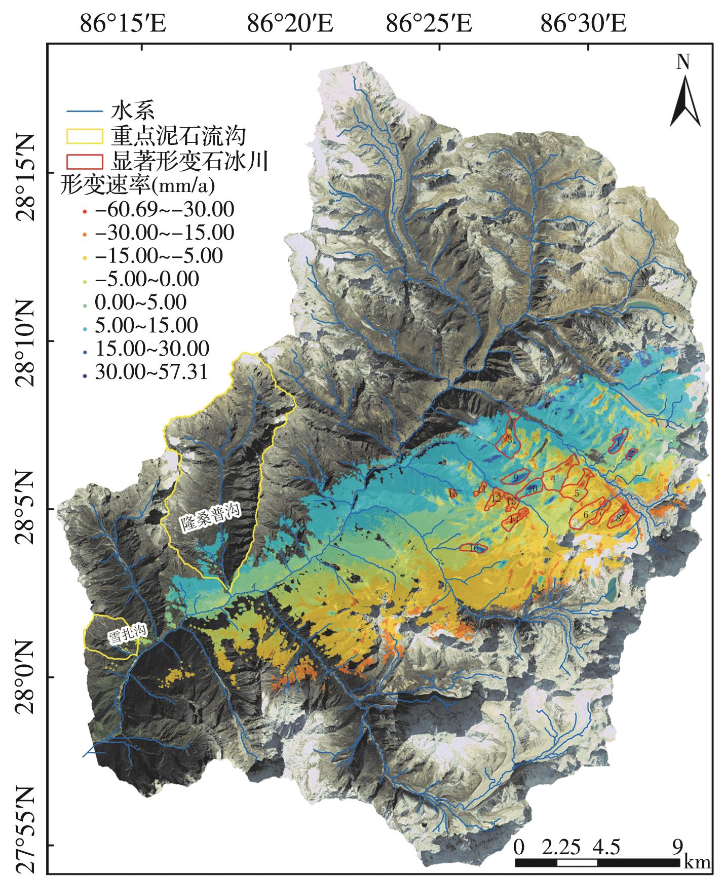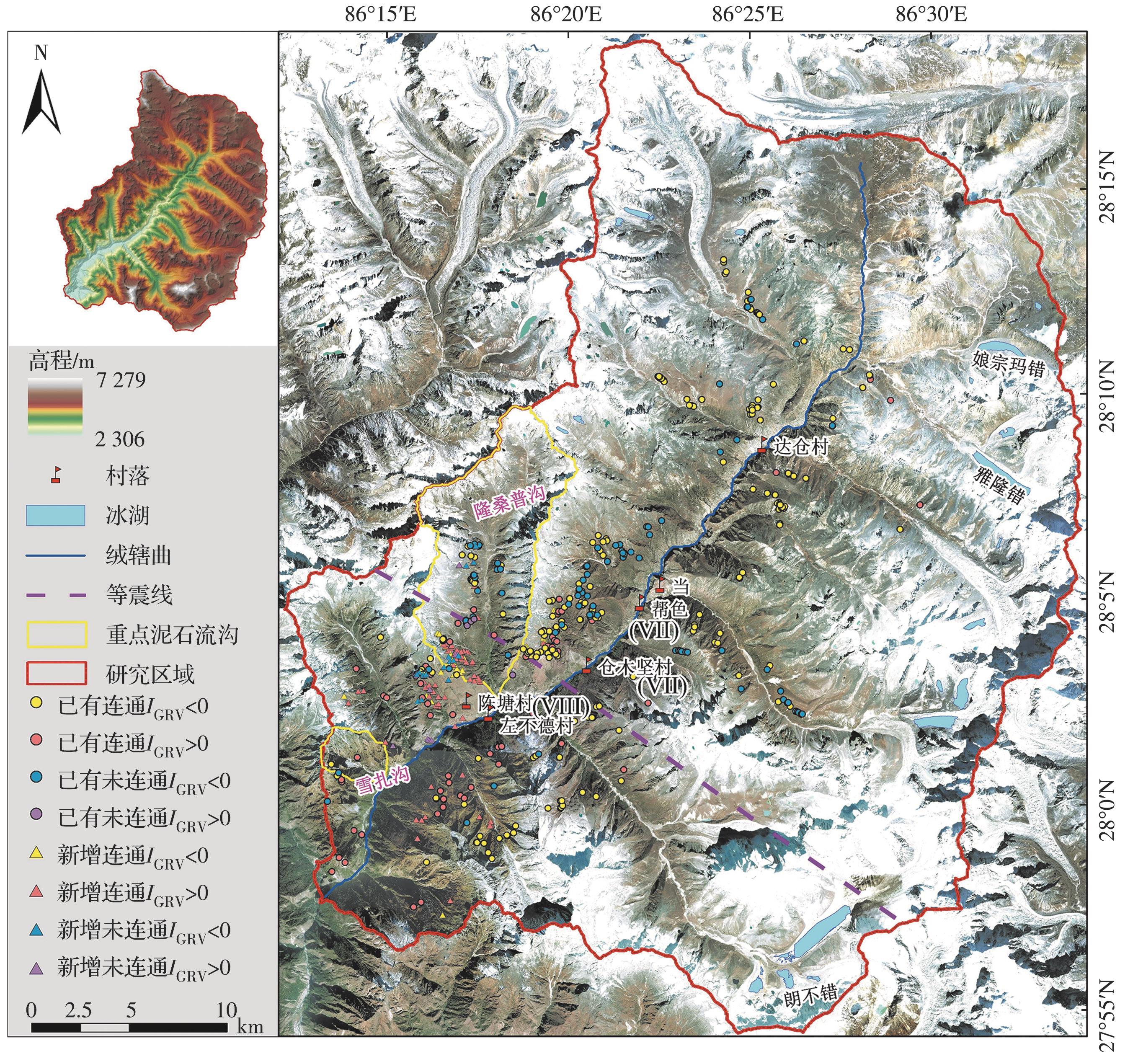 摘要:绒辖曲位于喜马拉雅山脉南坡,区域地质构造活跃,冰湖、冰碛物丰富。叠加2015年尼泊尔Gorkha Ms 8.1强震影响,稳定性进一步降低。2021年6月15日该区域发生群发性泥石流后,尚未有针对此次泥石流物源活动规律的深入分析。利用灾前和灾后GF-1B、BJ-2、Planet遥感数据对泥石流物源进行解译,基于Landsat 5、Landsat 8、Sentinel-2遥感数据,通过计算归一化水体指数(INDW)提取典型冰湖边界,利用SBAS-InSAR技术处理184幅升轨Sentinel-1A数据,获取该地区2014—2021年地表形变。结果表明:研究区在2014—2021年间整体呈缓慢沉降趋势;滑坡体中上部沉降最显著,其次是滑坡前缘,滑坡后缘的形变相对较小,这种空间分异特征是在前缘牵引和中后部物源推挤共同作用下滑坡体形变向后缘扩展并发生整体滑移所致。冰碛型石冰川季节性形变显著,其中心区域形变最剧烈,向冰缘带和末端递减,这种形变格局主要受控于冻土活跃层冻融循环过程及冰雪融水在中心区域的汇集、释放效应。此外,雅隆错冰湖2000—2021年间面积增长近43%,且终碛体处两侧形变较大。区域防灾减灾需要加强雨季对冰湖、石冰川及与沟道系统连通的物源变化监测。