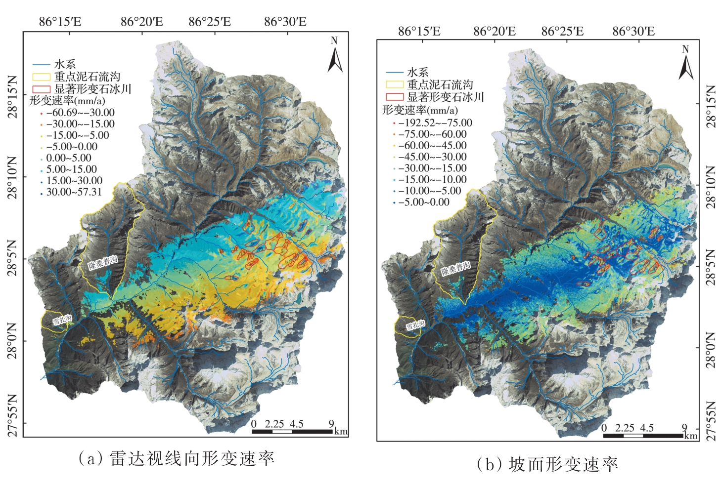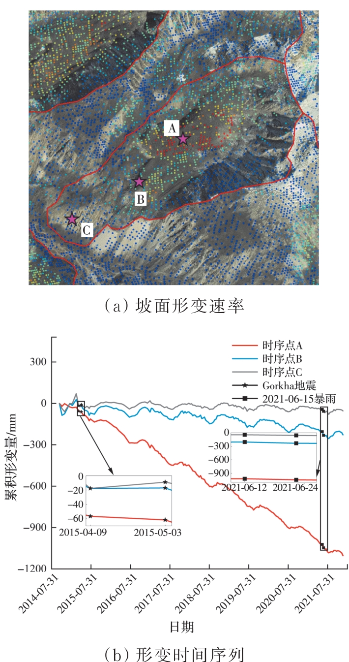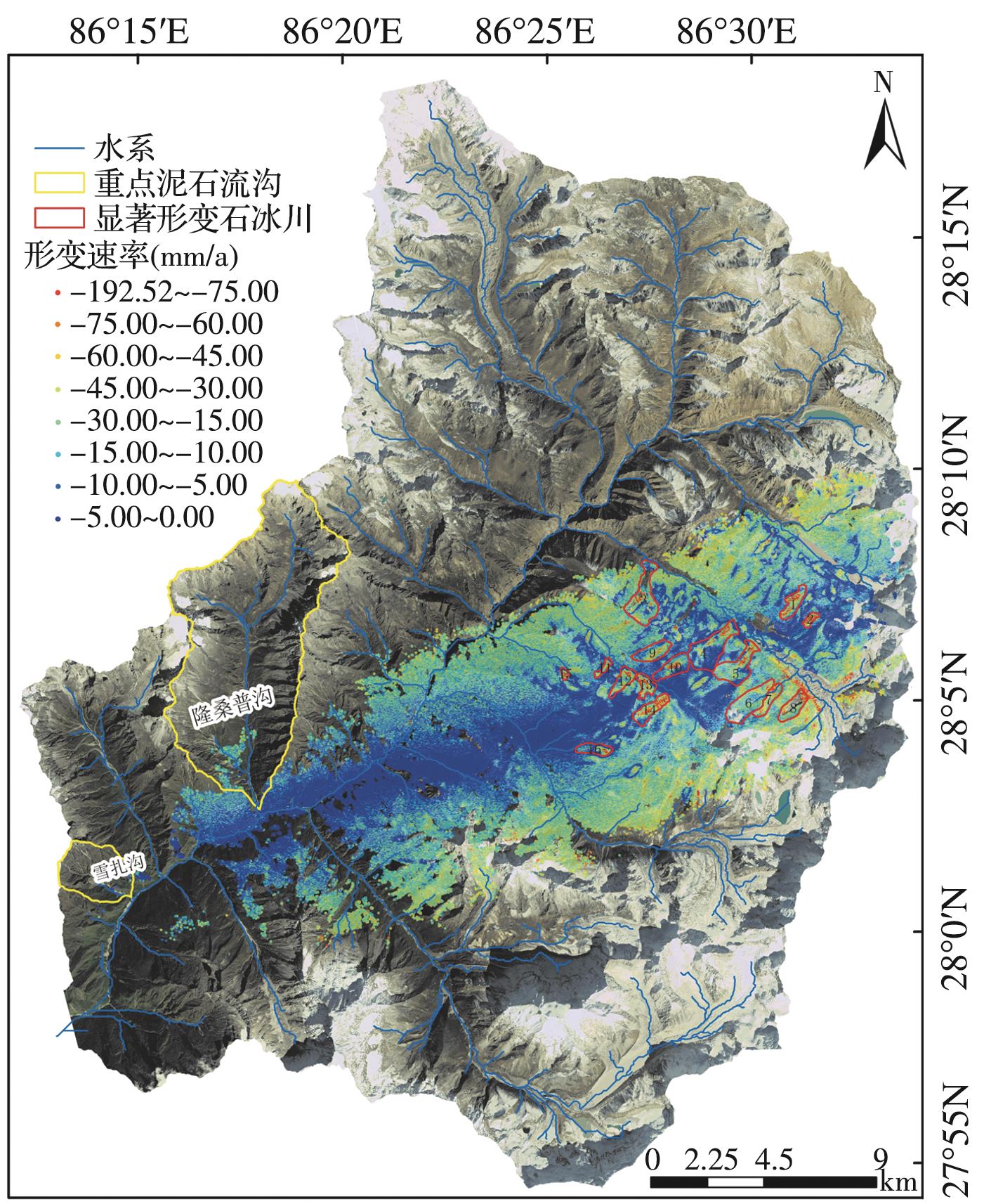 摘要:绒辖曲位于喜马拉雅山脉南坡,区域地质构造活跃,冰湖、冰碛物丰富。叠加2015年尼泊尔Gorkha Ms 8.1强震影响,稳定性进一步降低。2021年6月15日该区域发生群发性泥石流后,尚未有针对此次泥石流物源活动规律的深入分析。利用灾前和灾后GF-1B、BJ-2、Planet遥感数据对泥石流物源进行解译,基于Landsat 5、Landsat 8、Sentinel-2遥感数据,通过计算归一化水体指数(INDW)提取典型冰湖边界,利用SBAS-InSAR技术处理184幅升轨Sentinel-1A数据,获取该地区2014—2021年地表形变。结果表明:研究区在2014—2021年间整体呈缓慢沉降趋势;滑坡体中上部沉降最显著,其次是滑坡前缘,滑坡后缘的形变相对较小,这种空间分异特征是在前缘牵引和中后部物源推挤共同作用下滑坡体形变向后缘扩展并发生整体滑移所致。冰碛型石冰川季节性形变显著,其中心区域形变最剧烈,向冰缘带和末端递减,这种形变格局主要受控于冻土活跃层冻融循环过程及冰雪融水在中心区域的汇集、释放效应。此外,雅隆错冰湖2000—2021年间面积增长近43%,且终碛体处两侧形变较大。区域防灾减灾需要加强雨季对冰湖、石冰川及与沟道系统连通的物源变化监测。