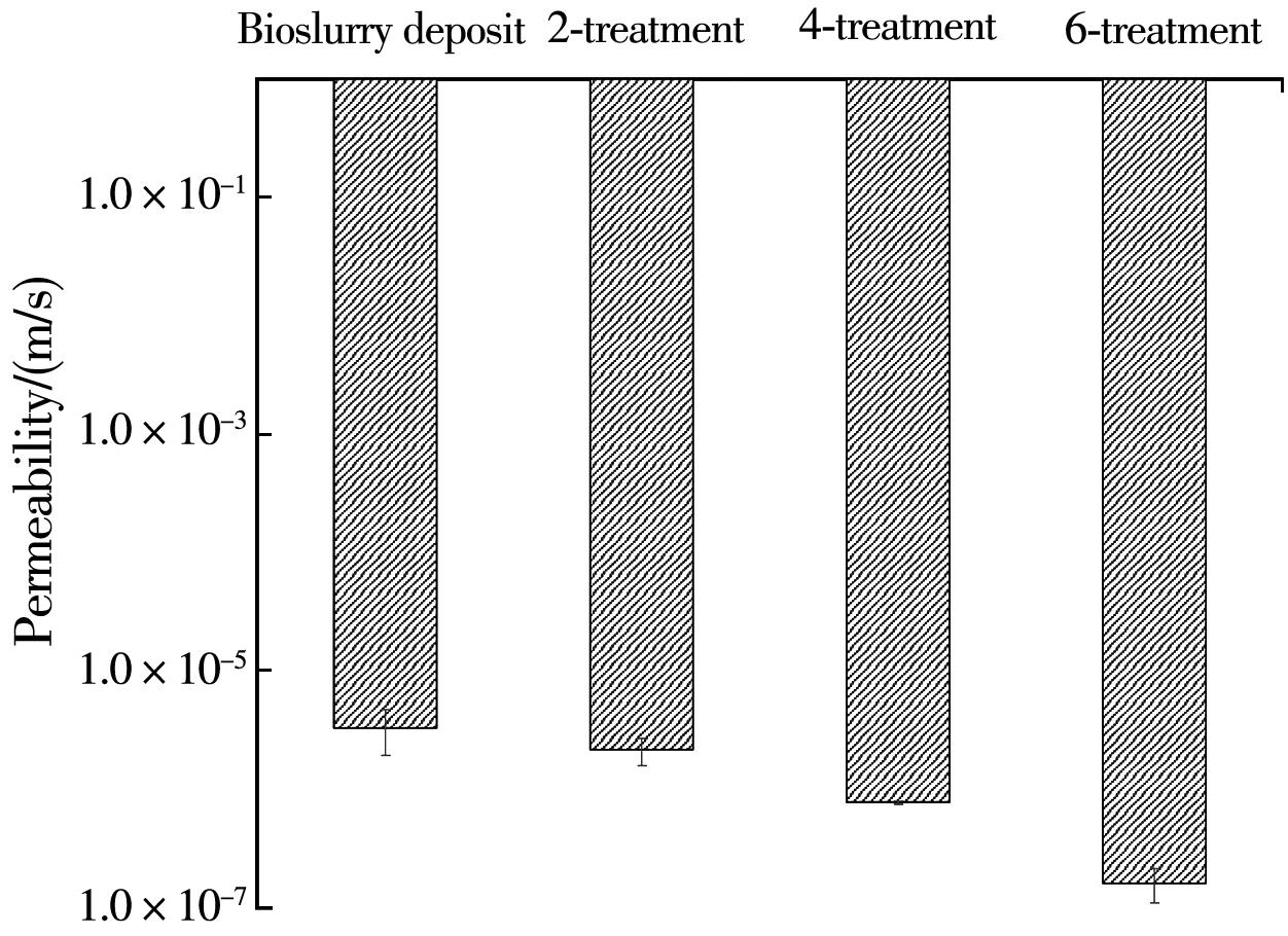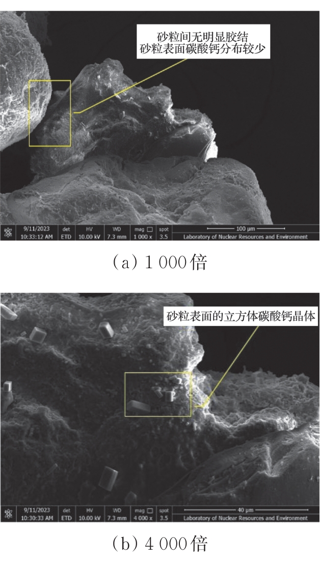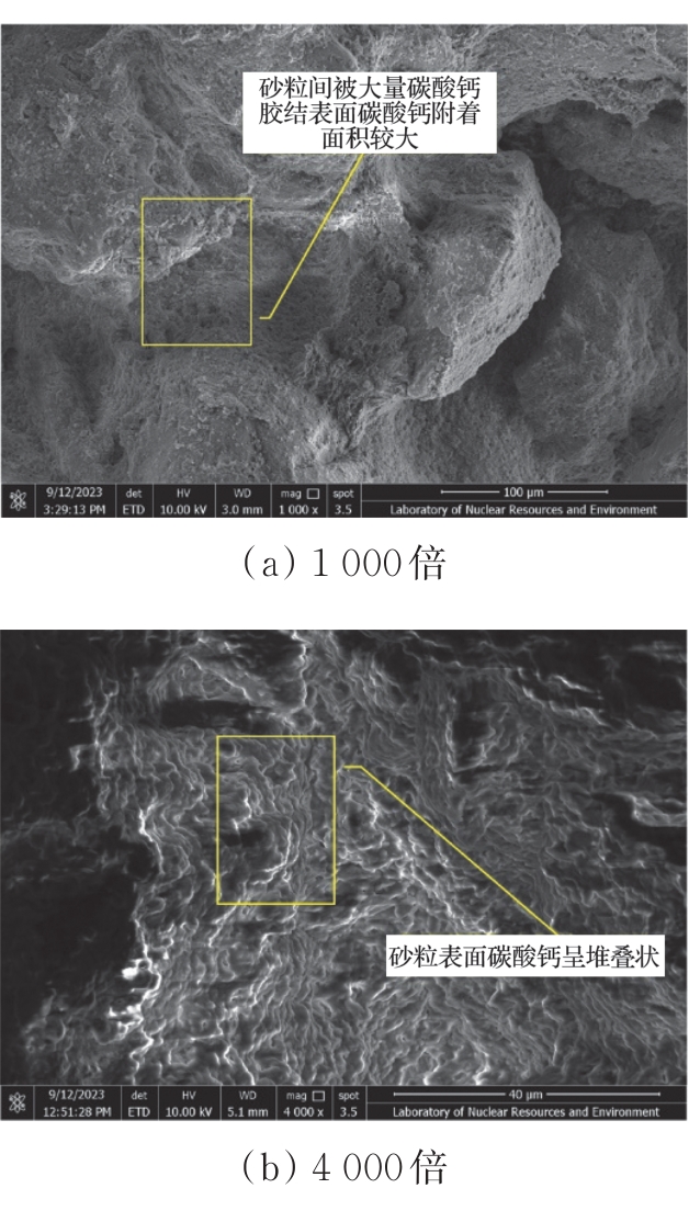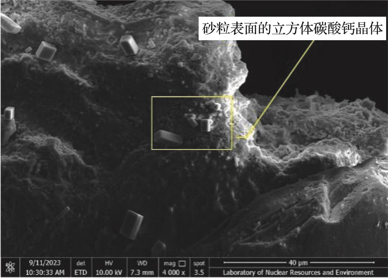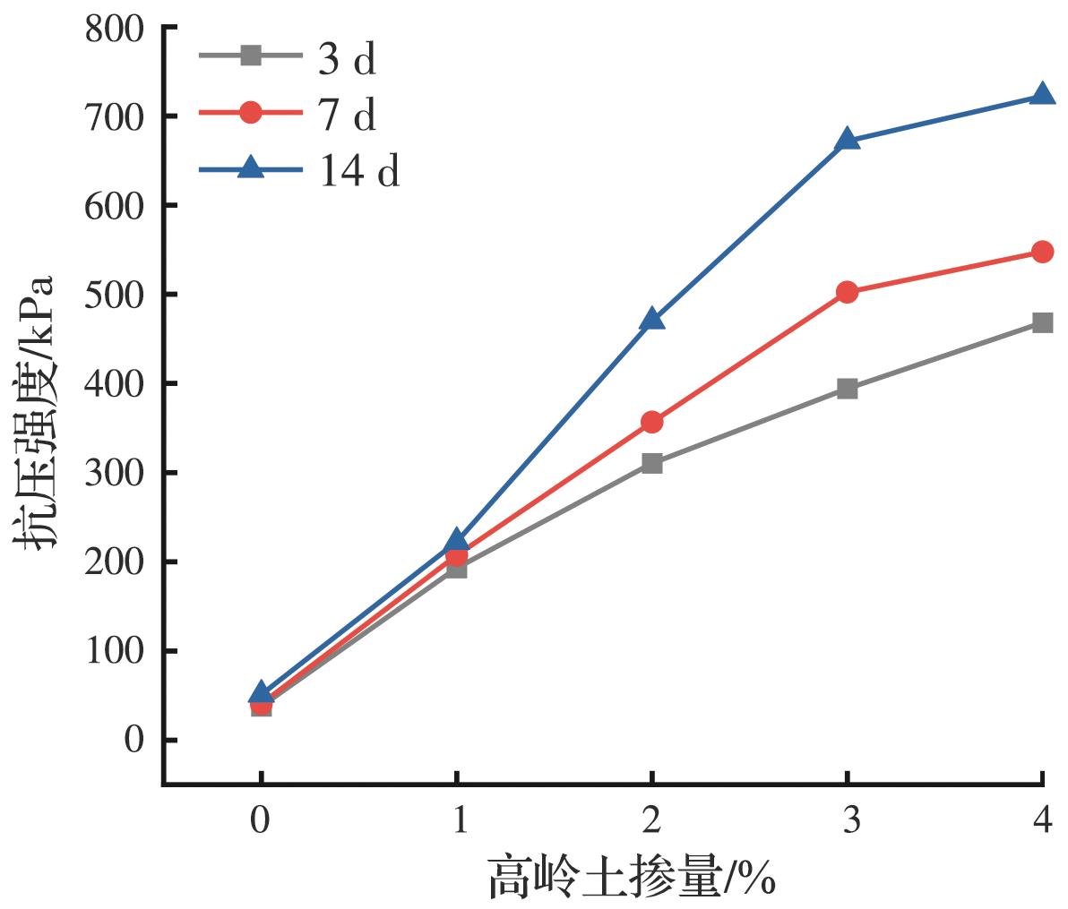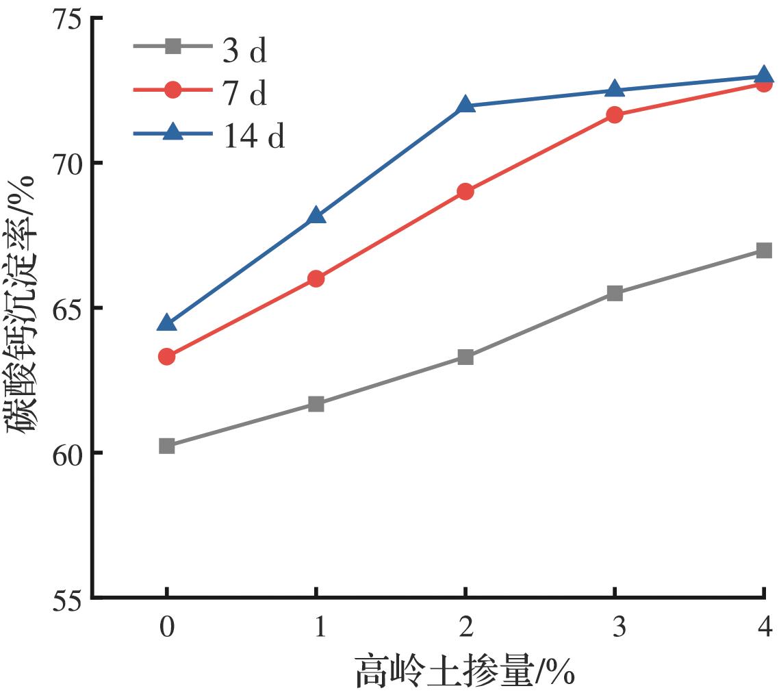 摘要:为进一步提升酶诱导碳酸钙沉淀(EICP)技术的固化效果,采用EICP联合高岭土对标准砂进行固化处理,设置高岭土掺量与养护时间两个试验变量,开展不同变量组合条件下固化砂的宏微观试验研究。结果表明:EICP联合高岭土固化砂的无侧限抗压强度随高岭土掺量与养护时间的增加持续提高,4%高岭土掺量、养护14 d的抗压强度为722.19 kPa,是纯EICP固化砂的13.15倍;碳酸钙沉淀率不会随着养护时间和高岭土掺量的增加持续提升,3%高岭土掺量、养护7 d的碳酸钙沉淀效率最高;随着高岭土掺量的增加,孔隙度先减小后增加,高岭土掺量为2%时,孔隙度最小;掺加高岭土前后固化砂的孔隙由以中孔为主(占比超过90%)转变为以小孔为主(占比80%左右),孔隙结构得到明显改善;EICP联合高岭土固化砂颗粒间沉积的碳酸钙晶体以球霰石为主,呈堆叠状填充于砂粒间隙并覆盖在砂粒表面,能显著提升砂粒间的胶结作用。