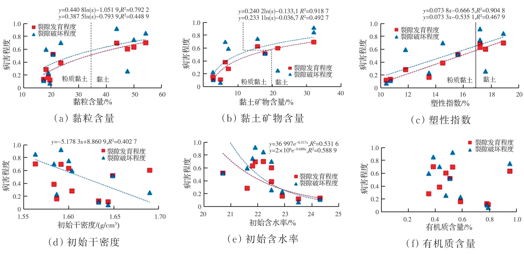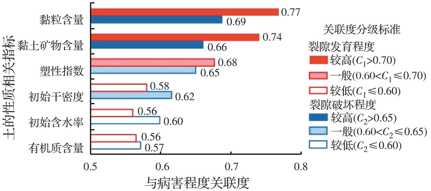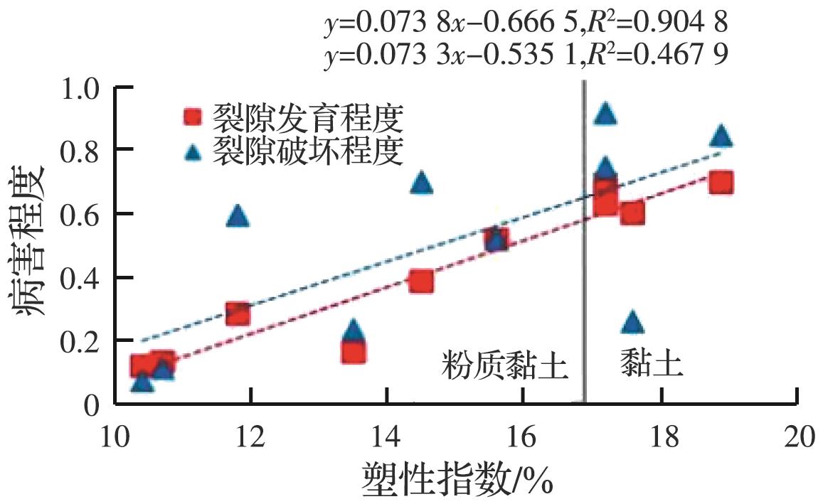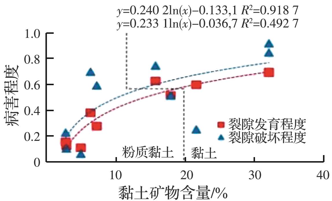 摘要:干缩开裂是潮湿环境考古遗址的典型病害,为探究三星堆祭祀区地表干缩开裂病害程度与土的性质的关联性,通过土的性质分析和病害量化表征评估,采用灰色关联度法分析土的性质相关的6项指标与裂隙发育程度、裂隙破坏程度两方面的关联度,探讨各项指标对病害程度的影响及机制,并分析通过干预土的性质实现病害防控的可行性。结果表明,土的性质相关指标与病害程度的关联度大小排序依次为:黏粒含量>黏土矿物含量>塑性指数>初始干密度>初始含水率、有机质含量。其中,黏粒含量、黏土矿物含量和塑性指数为影响病害发育的控制性指标,此类指标越大,病害程度越严重;初始干密度、初始含水率、有机质含量为影响病害发育的参考性指标,初始干密度越小,裂隙破坏程度相对越严重。通过土的性质干预仅能在一定程度上控制病害发育,例如通过提高初始干密度改变裂隙形态。
