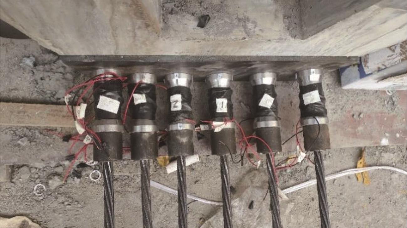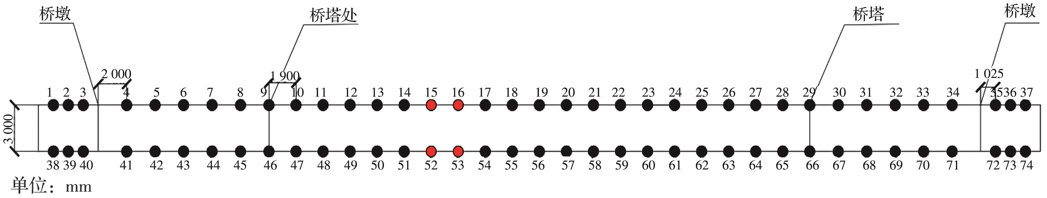 摘要:为探究虚拟静载试验方法评定大跨径斜拉桥主梁刚度的可行性,以某大跨斜拉桥为研究对象,对其进行静载试验及环境激励桥梁模态测试试验,测量静载试验主梁跨中截面测点的静力挠度,基于Kriging插值方法对斜拉桥的实测振型进行模态扩展,预测斜拉桥主梁跨中截面在静载试验荷载作用下的模态挠度;设计满足加载效率的虚拟静载试验方案,计算虚拟静载下的挠度校验系数,评估斜拉桥主梁刚度。结果表明:环境激励桥梁模态测试试验可以准确获取桥梁振动信息;仅采用前4阶竖向模态参数即可准确预测斜拉桥的模态挠度,与实测静载挠度的相对误差小于10%,满足工程精度的要求;虚拟静载试验方法与实际静载试验所得挠度校验系数相近,评定结果均小于1.0,表明该斜拉桥主梁承载状况良好,验证了虚拟静载试验方法在正常交通下评定大跨斜拉桥主梁刚度的可行性。